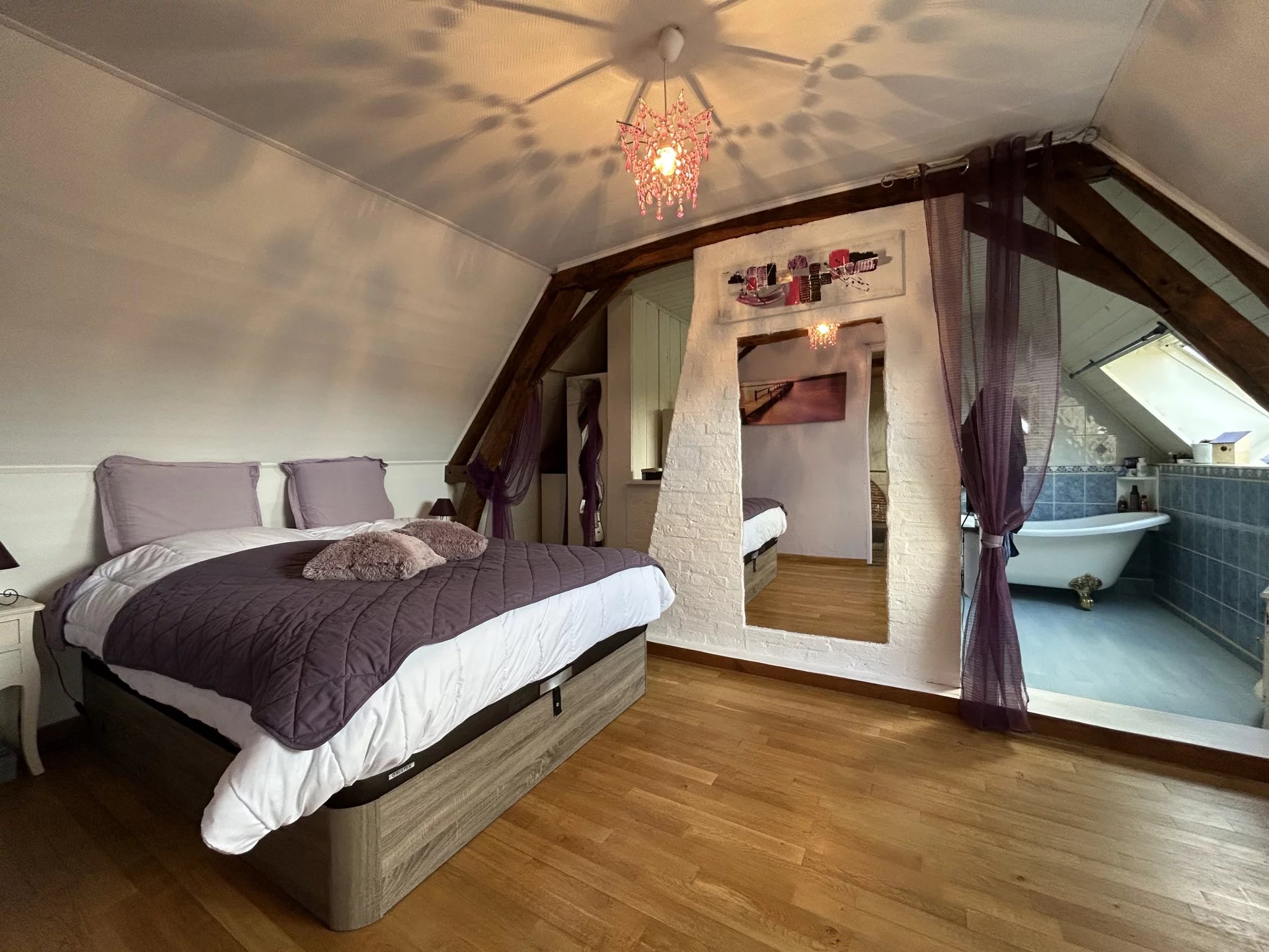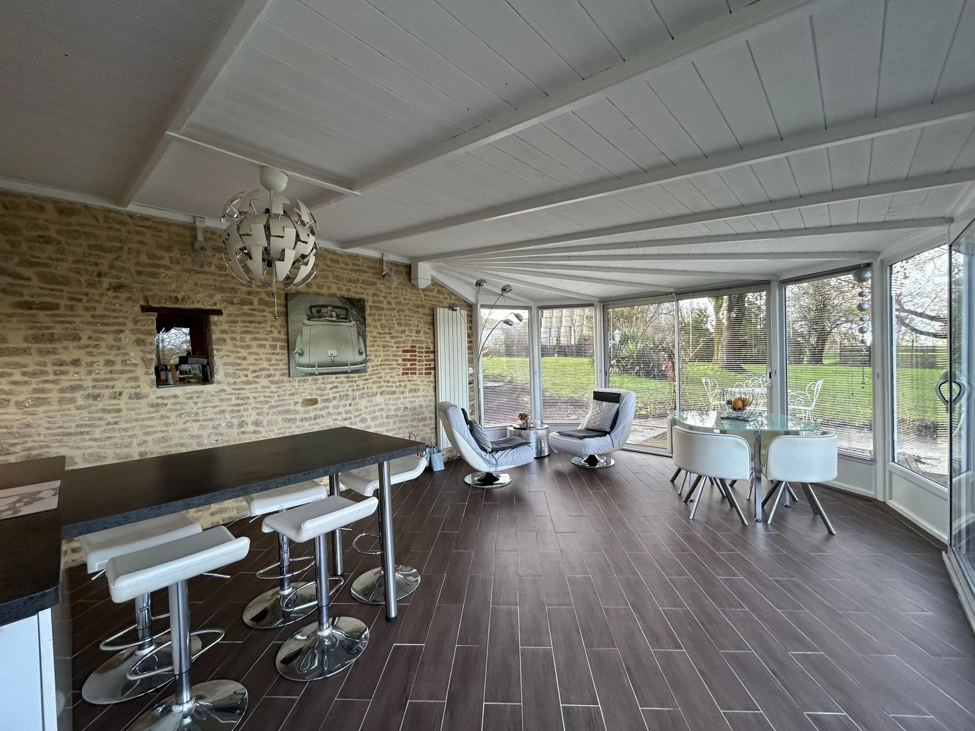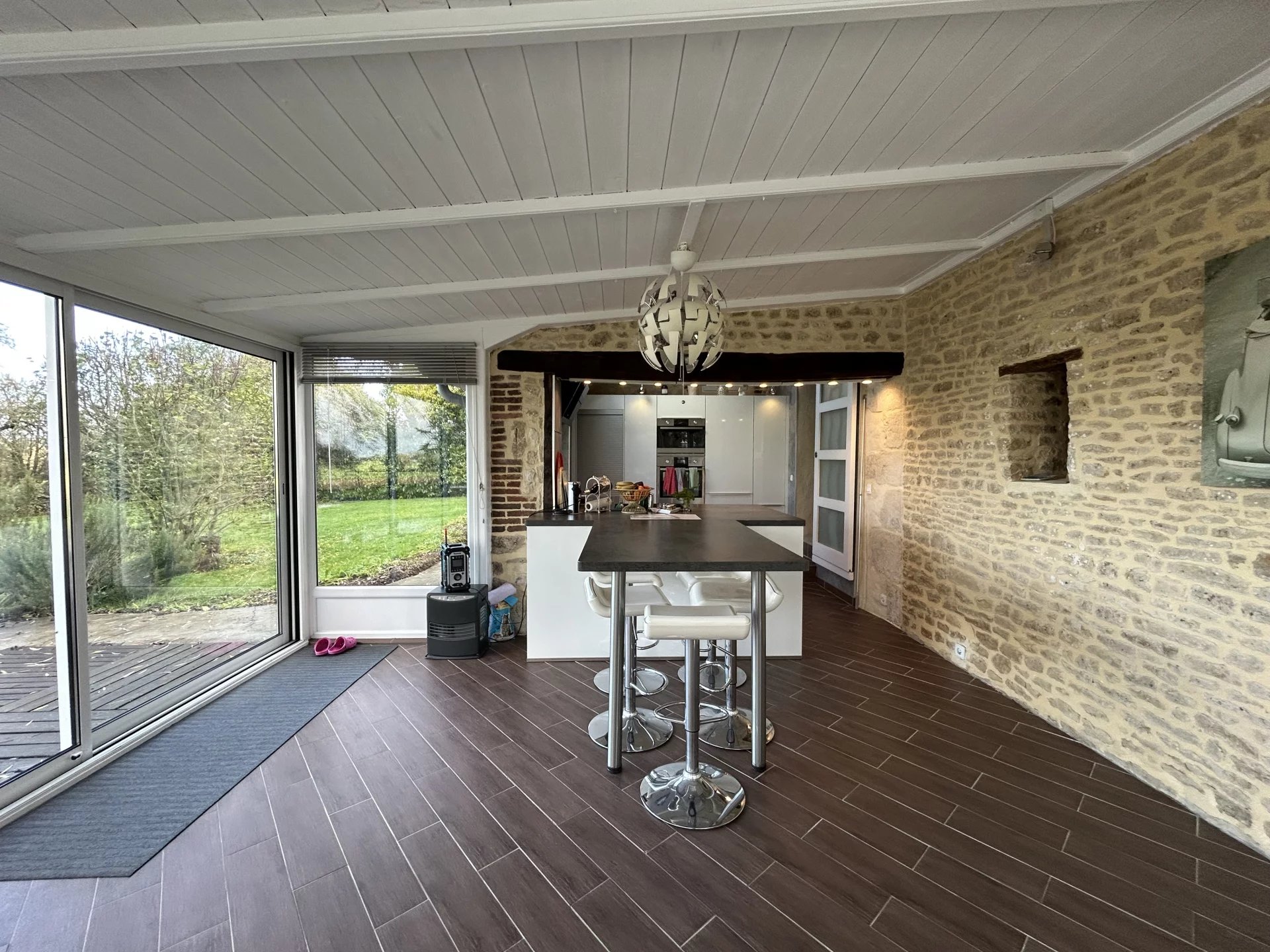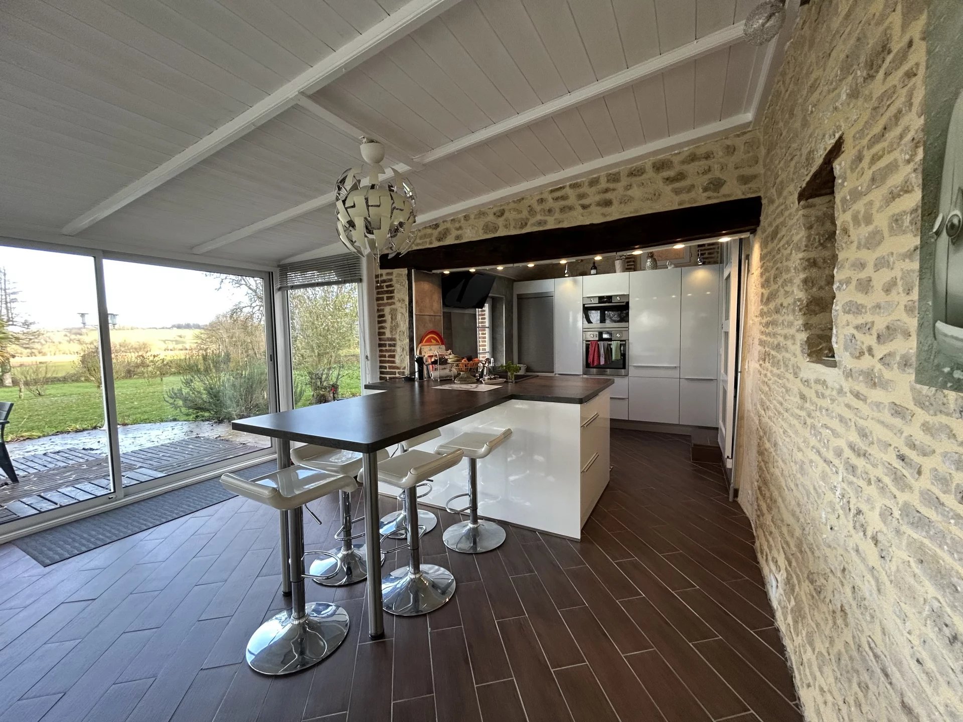 A seulement 25 minutes d'Argentan, de l'Aigle et d'Alençon, à proximité du Haras du Pin, charmante maison ancienne totalement et récemment restaurée avec goût et matériaux de qualité offrant sur deux niveaux et 157 m²: au rez-de-chaussée, une entrée, un grand salon-salle à manger (61 m²) avec cheminée, une cuisine moderne et équipée ouverte sur une belle véranda avec vue sur le parc, une chambre, une salle d'eau, un wc, une lingerie; à l'étage, un palier desservant une suite parentale avec salle de bains, dressing et wc, une chambre.