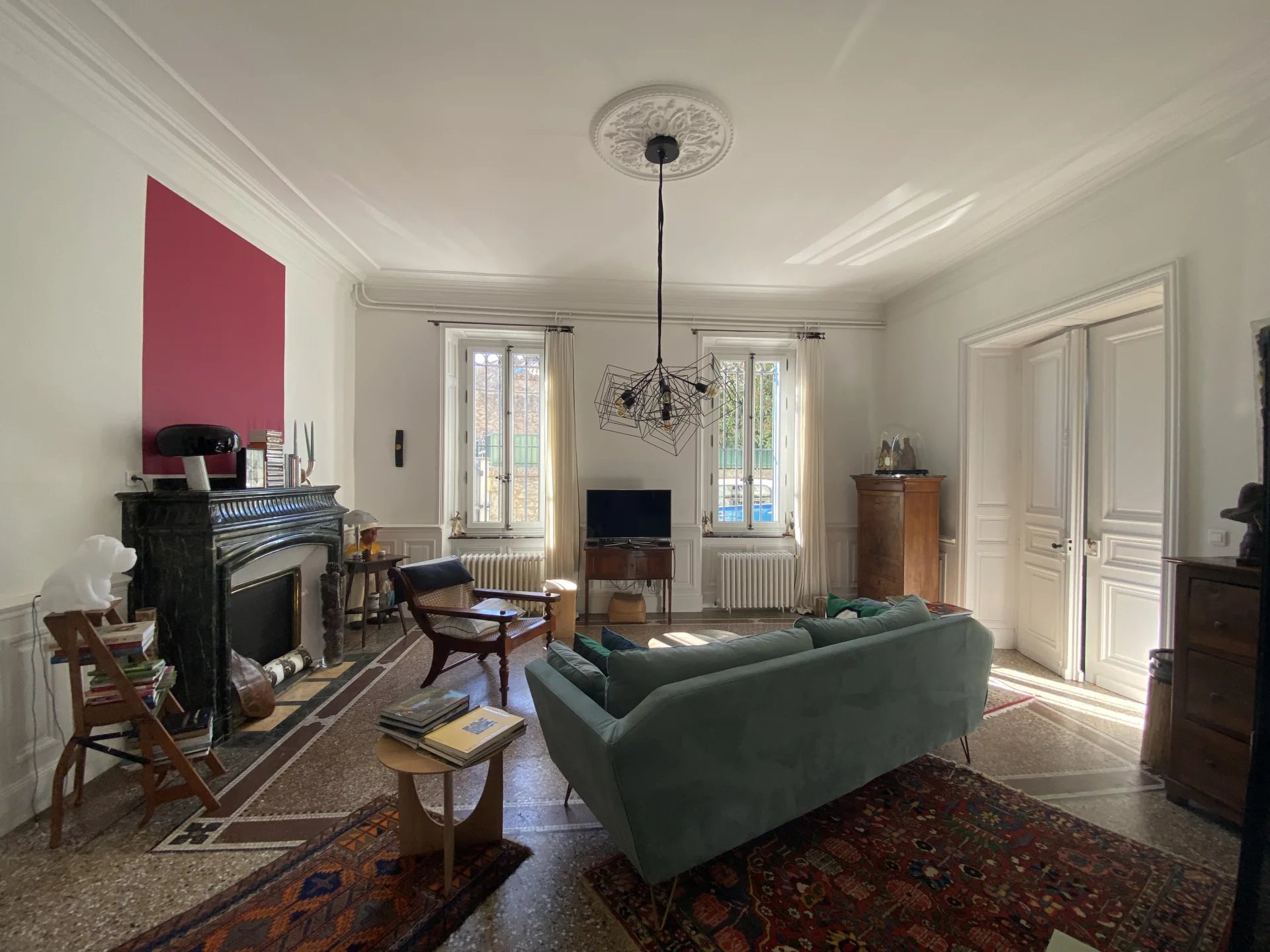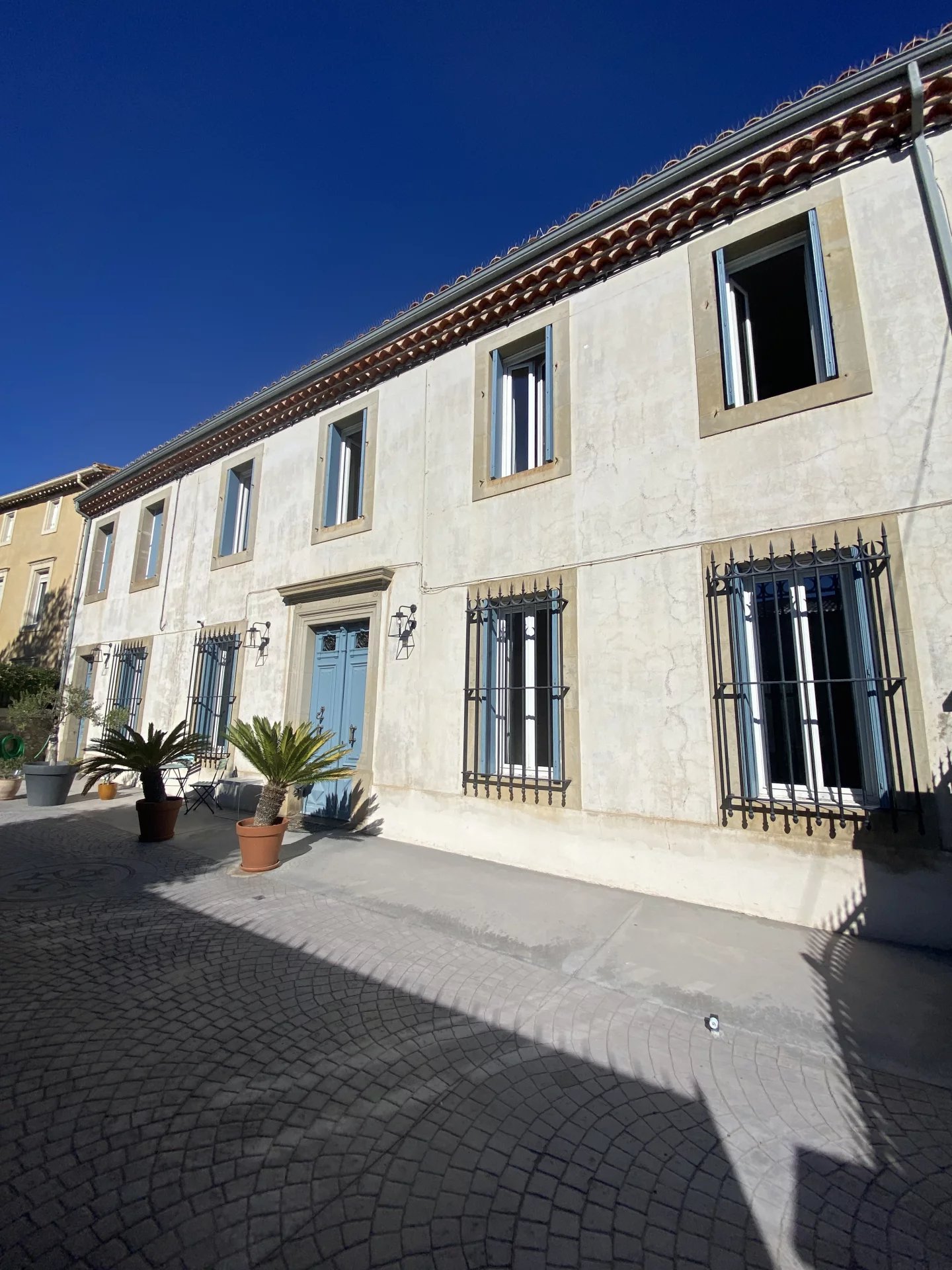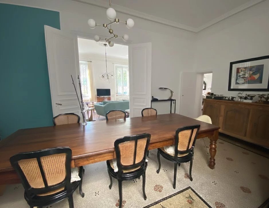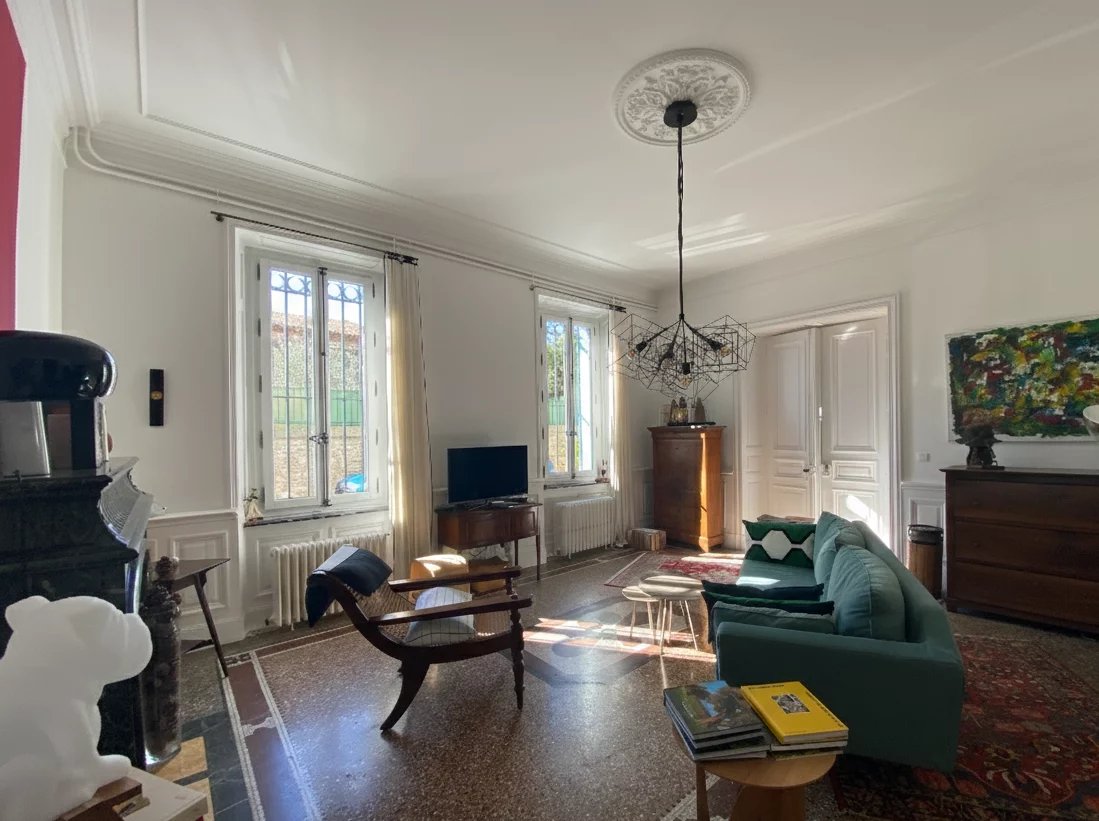 Dans le centre historique de Lézignan-Corbières, charmante maison de maître totalement et récemment restaurée avec goût et matériaux de qualité offrant sur 350 m² et deux niveaux: au rez-de-chaussée, une belle entrée, un grand salon lumineux avec parquet et moulures, une salle à manger avec accès patio, une cuisine indépendante et équipée, une suite avec salle d'eau, un salon-bureau, un wc, un bureau; à l'étage, trois grandes suites avec chacune salle d'eau ou salle de bains et wc dont une avec petit salon ou chambre, deux pièces facilement aménageables en chambre supplémentaire avec salle d'eau. Cour intérieure de 110 m² avec terrasse et grand patio de 90 m² avec dépendance et une lingerie-chaufferie. Nombreuses potentialités (chambres d'hôtes...).