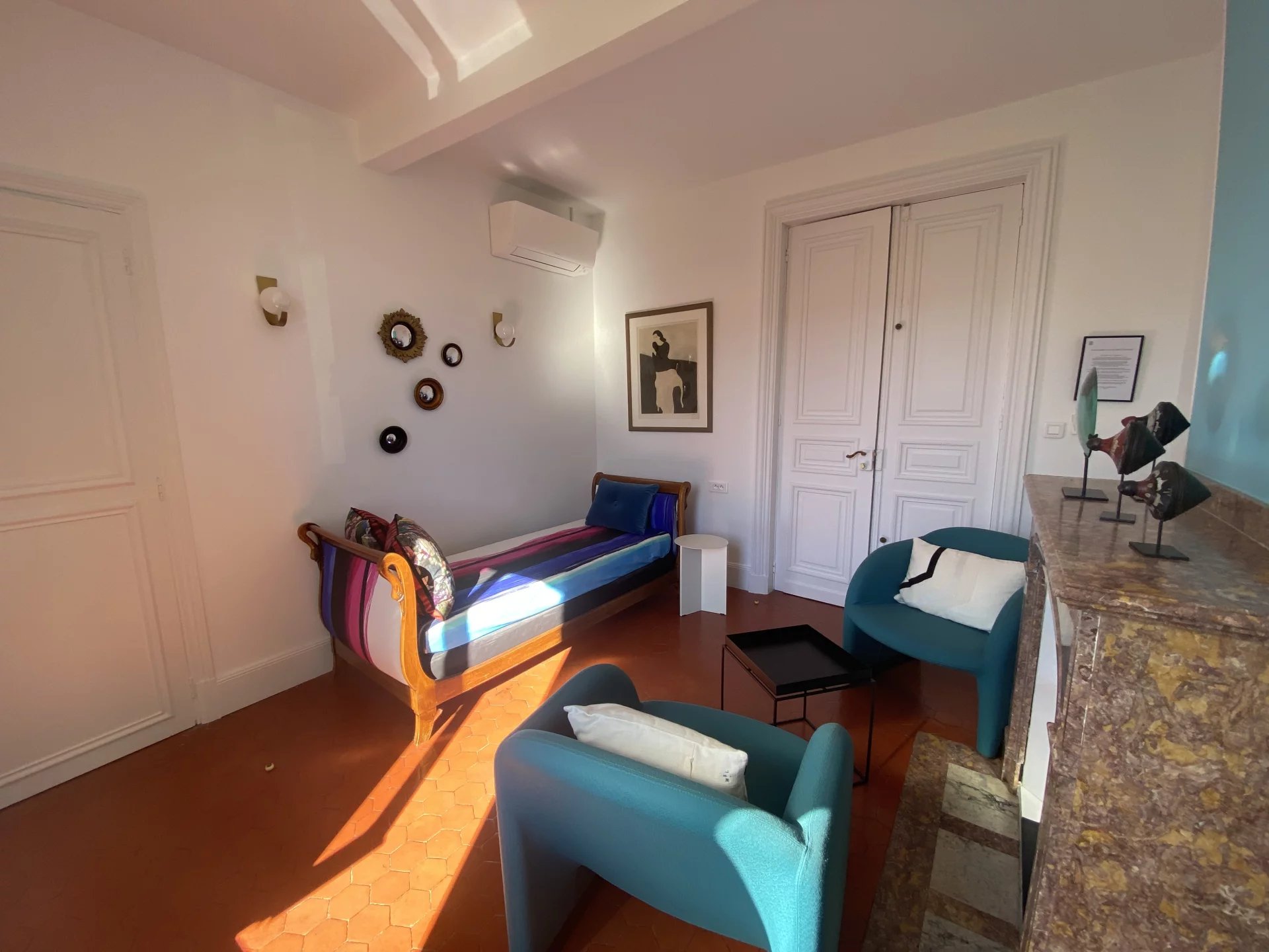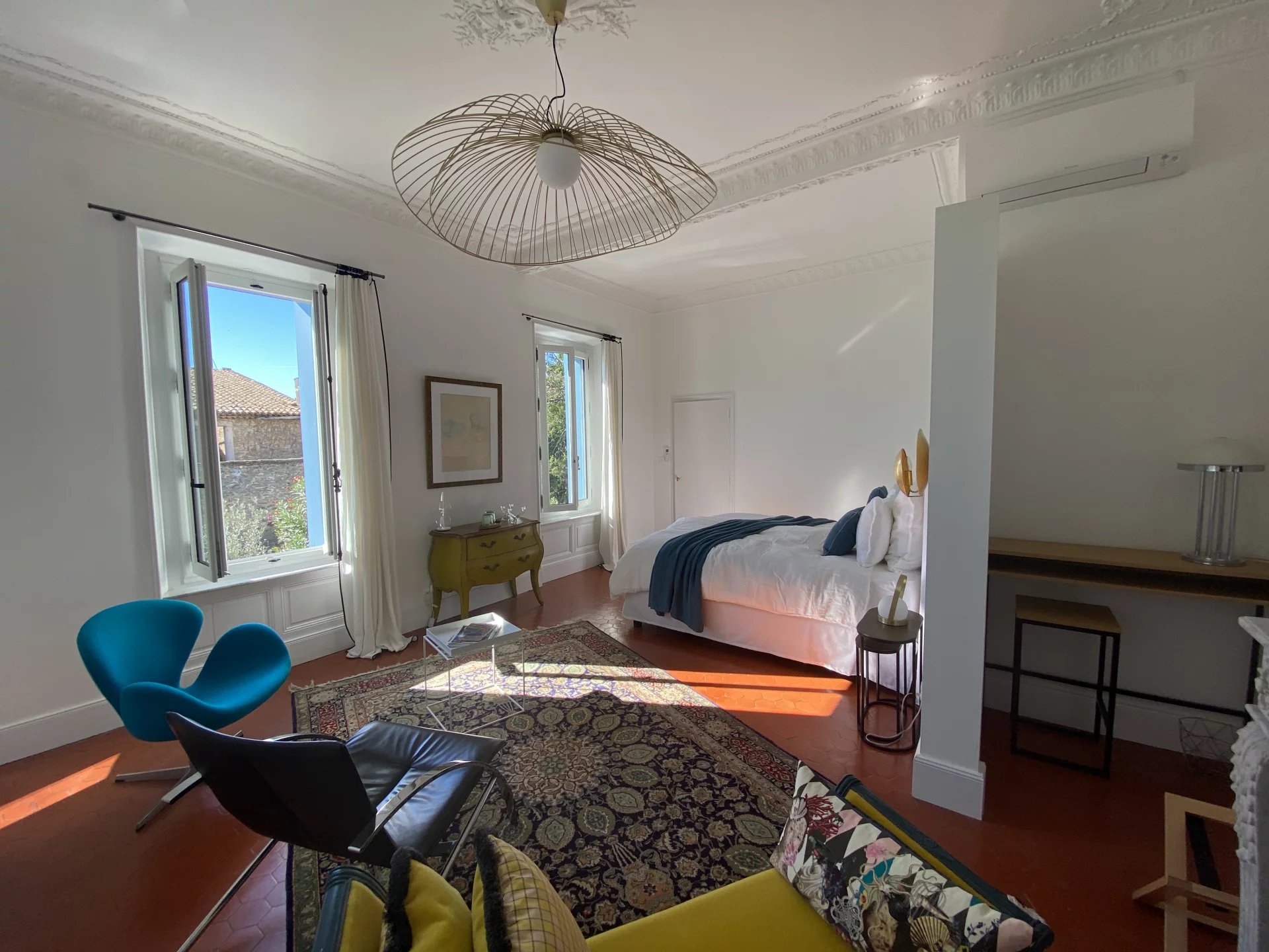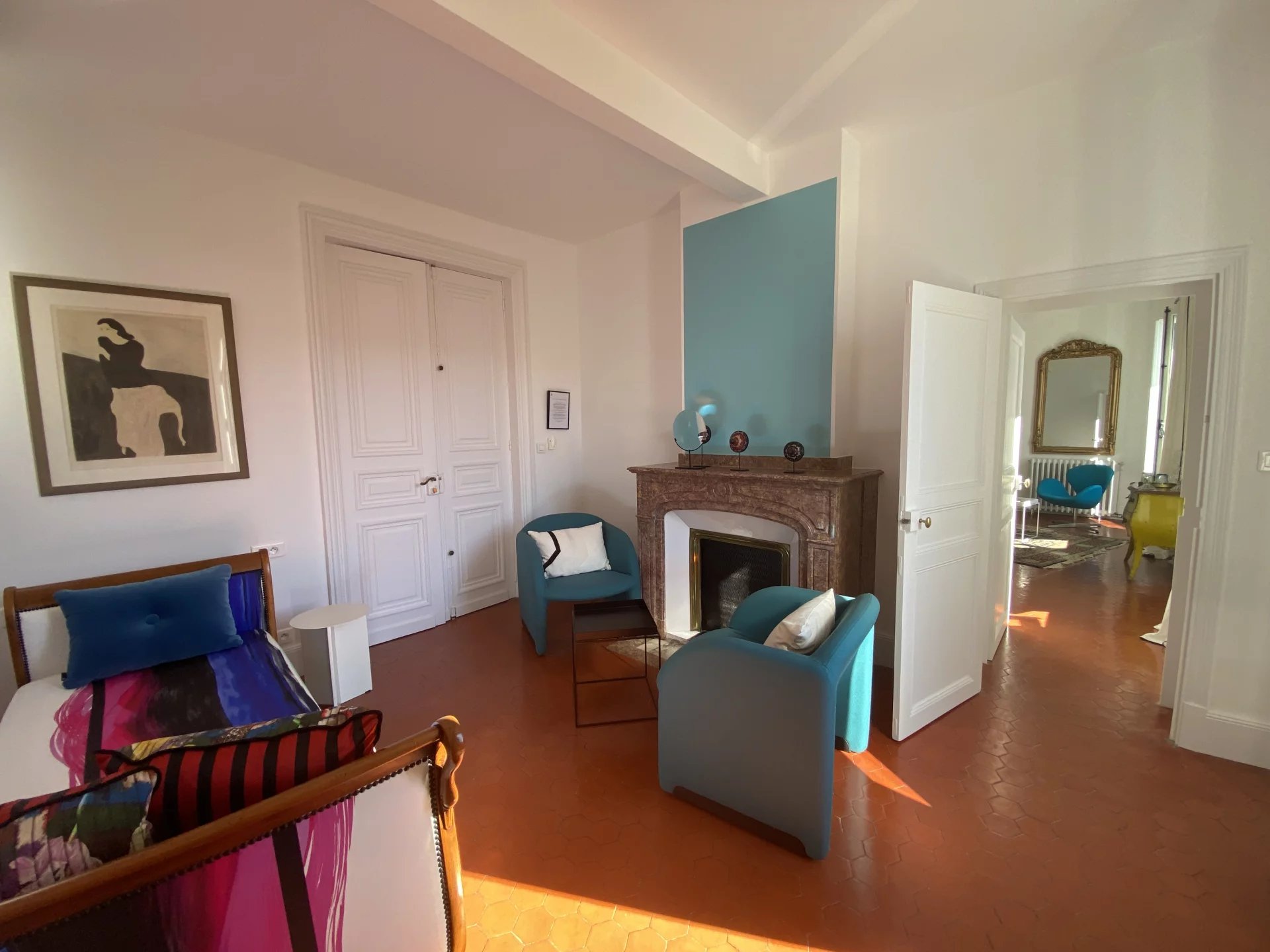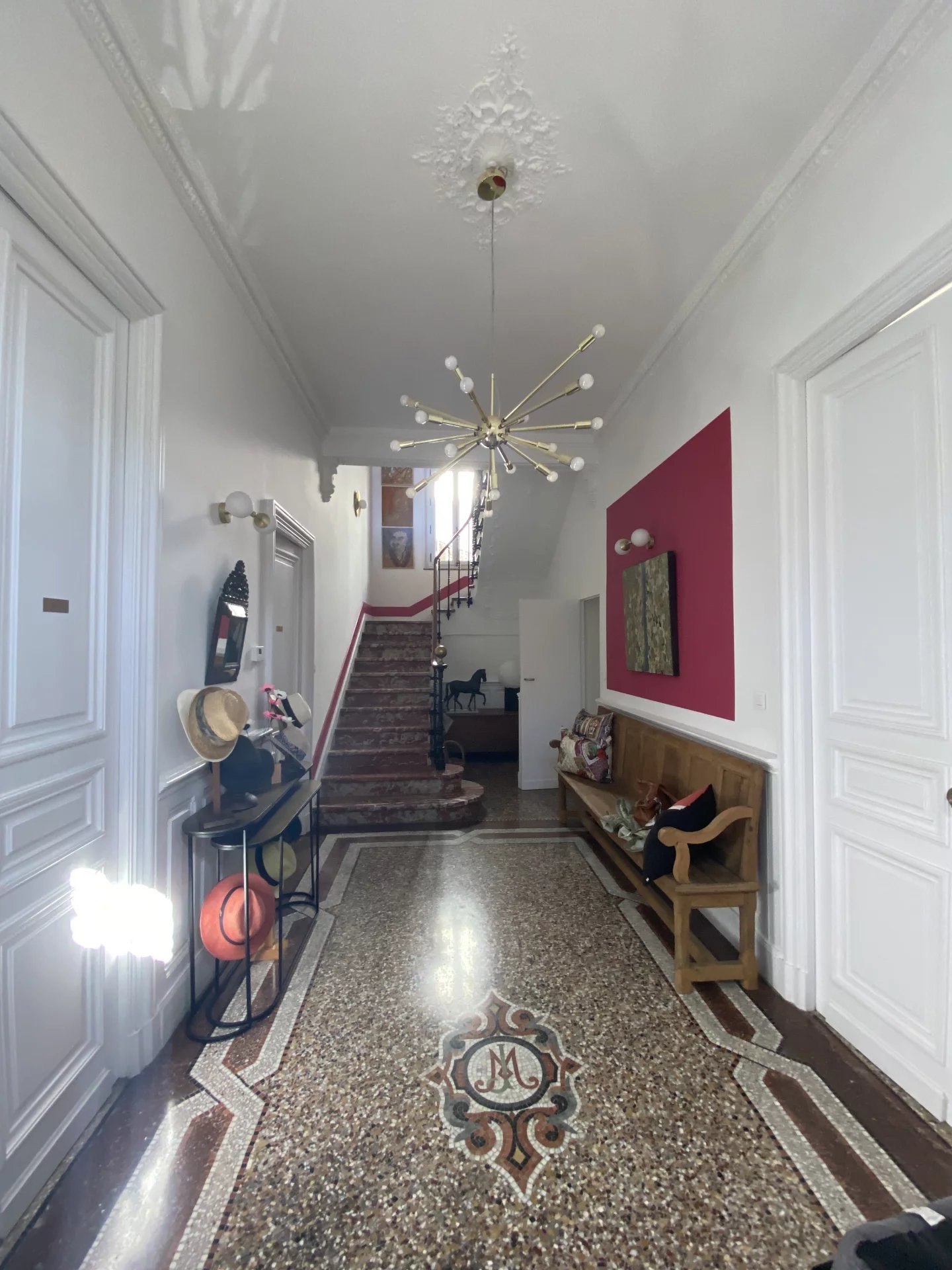 Dans le centre historique de Lézignan-Corbières, charmante maison de maître totalement et récemment restaurée avec goût et matériaux de qualité offrant sur 350 m² et deux niveaux: au rez-de-chaussée, une belle entrée, un grand salon lumineux avec parquet et moulures, une salle à manger avec accès patio, une cuisine indépendante et équipée, une suite avec salle d'eau, un salon-bureau, un wc, un bureau; à l'étage, trois grandes suites avec chacune salle d'eau ou salle de bains et wc dont une avec petit salon ou chambre, deux pièces facilement aménageables en chambre supplémentaire avec salle d'eau. Cour intérieure de 110 m² avec terrasse et grand patio de 90 m² avec dépendance et une lingerie-chaufferie. Nombreuses potentialités (chambres d'hôtes...).