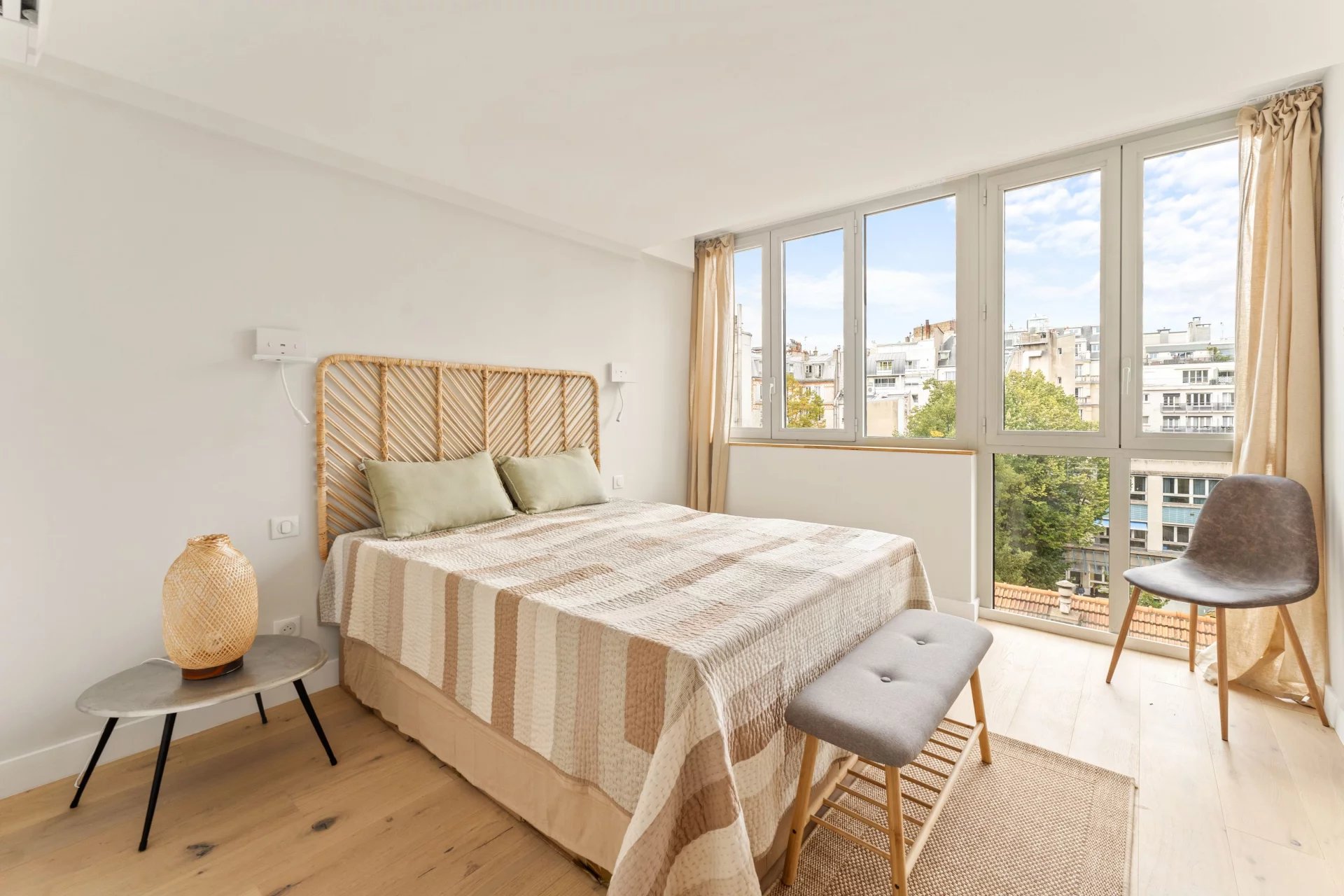 À deux pas du Trocadéro, au calme d’une allée privée, superbe duplex lumineux de 95m² (86,63 m² Carrez), situé au dernier étage avec ascenseur d’un immeuble historique entièrement rénové. Ce bien rare et élégant se compose : Au 1er niveau : 2 chambres en suite avec salle d’eau et dressing, WC séparé, nombreux rangements. À l’étage : un séjour baigné de lumière sous une magnifique verrière, une cuisine ouverte équipée, un espace repas/bureau, WC invités. Rénovation haut de gamme : climatisation réversible, isolation acoustique et thermique renforcée, volets motorisés, faibles charges. Un bien au cachet unique, mêlant volume, modernité et confort, dans un environnement privilégié proche des commerces, transports et jardins du Trocadéro. À visiter sans tarder !