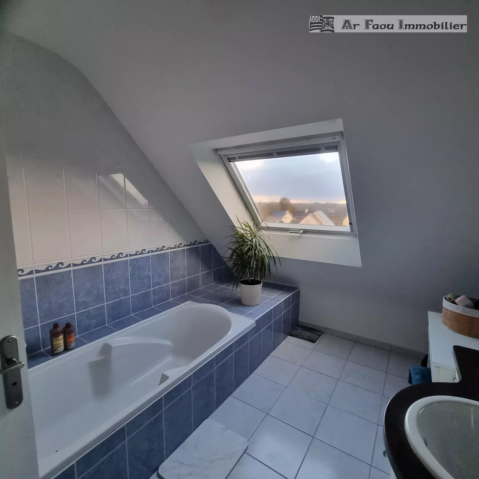 Edern, proche commerces et écoles, à deux pas de Briec. Venez découvrir cette superbe contemporaine de 2008 édifiée sur une beau parc de 2200 m². La maison construite sur sous sol complet propose au RDC : Entrée, beau séjour salon baigné de lumière, une chambre avec sa salle d'eau privative, une cuisine aménagée et équipée, un WC. A l'étage : espace mezzanine qui distribue 3 belles chambres avec placards, une salle de bains, des WC. Un sous-sol complet comprenant atelier, garage et buanderie complètent cette maison. Maison économique et de qualité construite par des artisans et qui propose de superbes prestations : ventilation double flux, volet roulant électrique aspiration centralisée, géothermie, forage privé, enrobé...