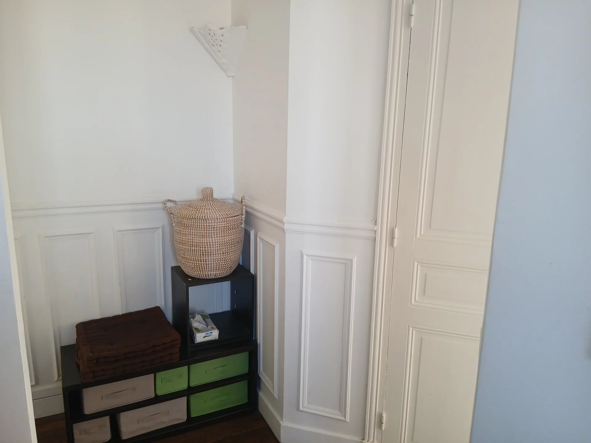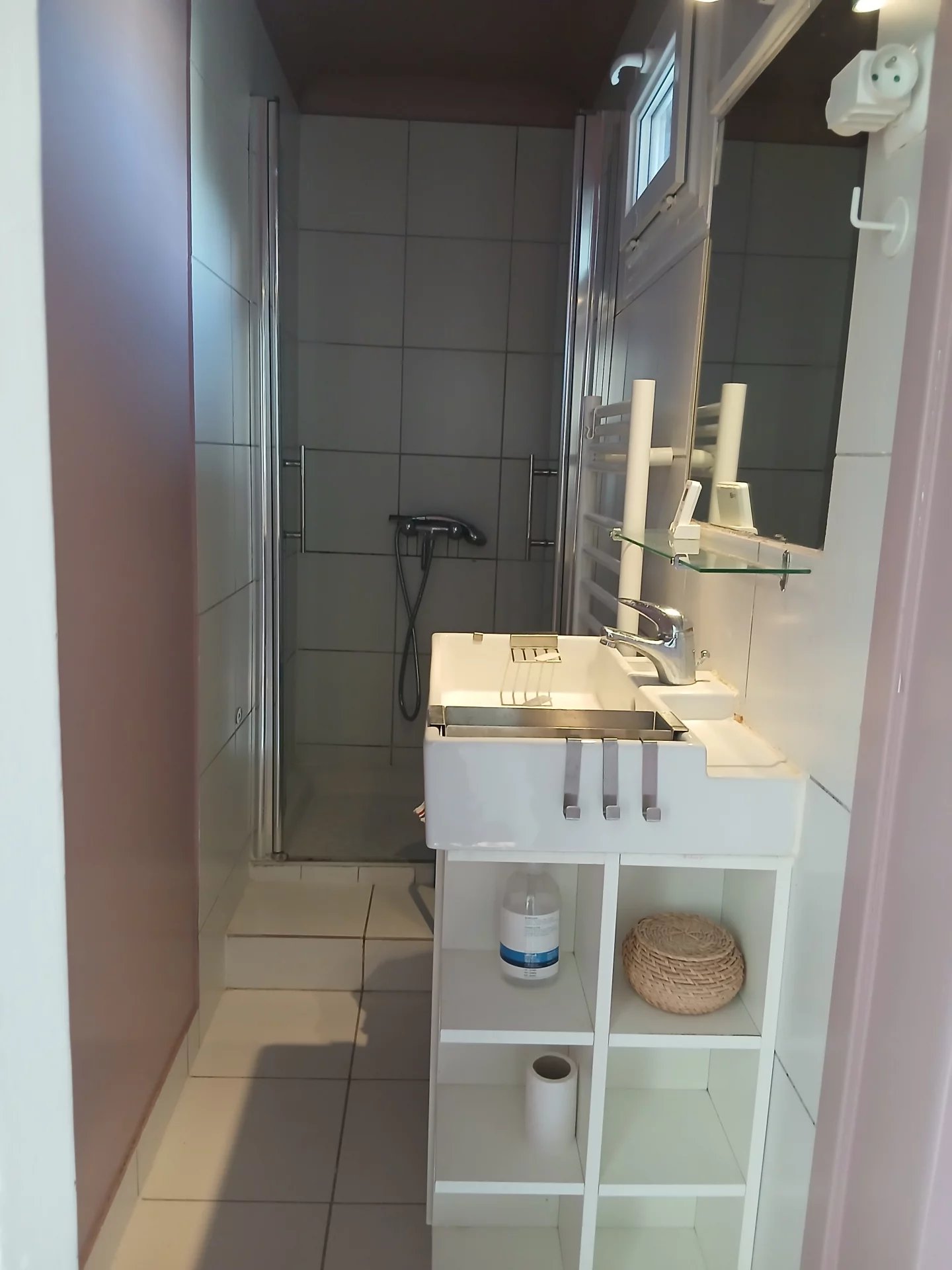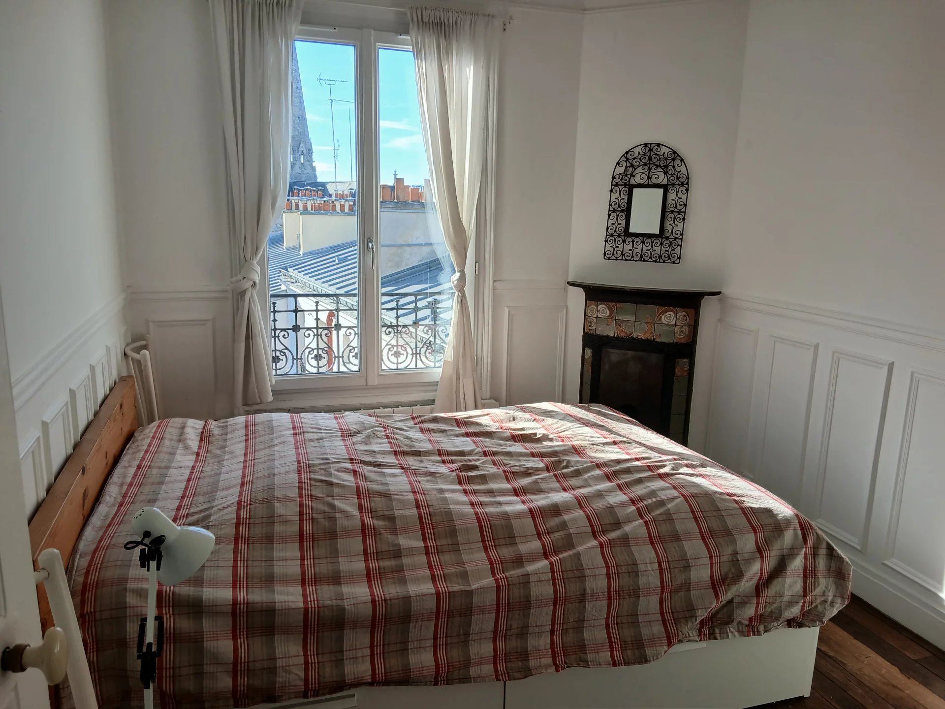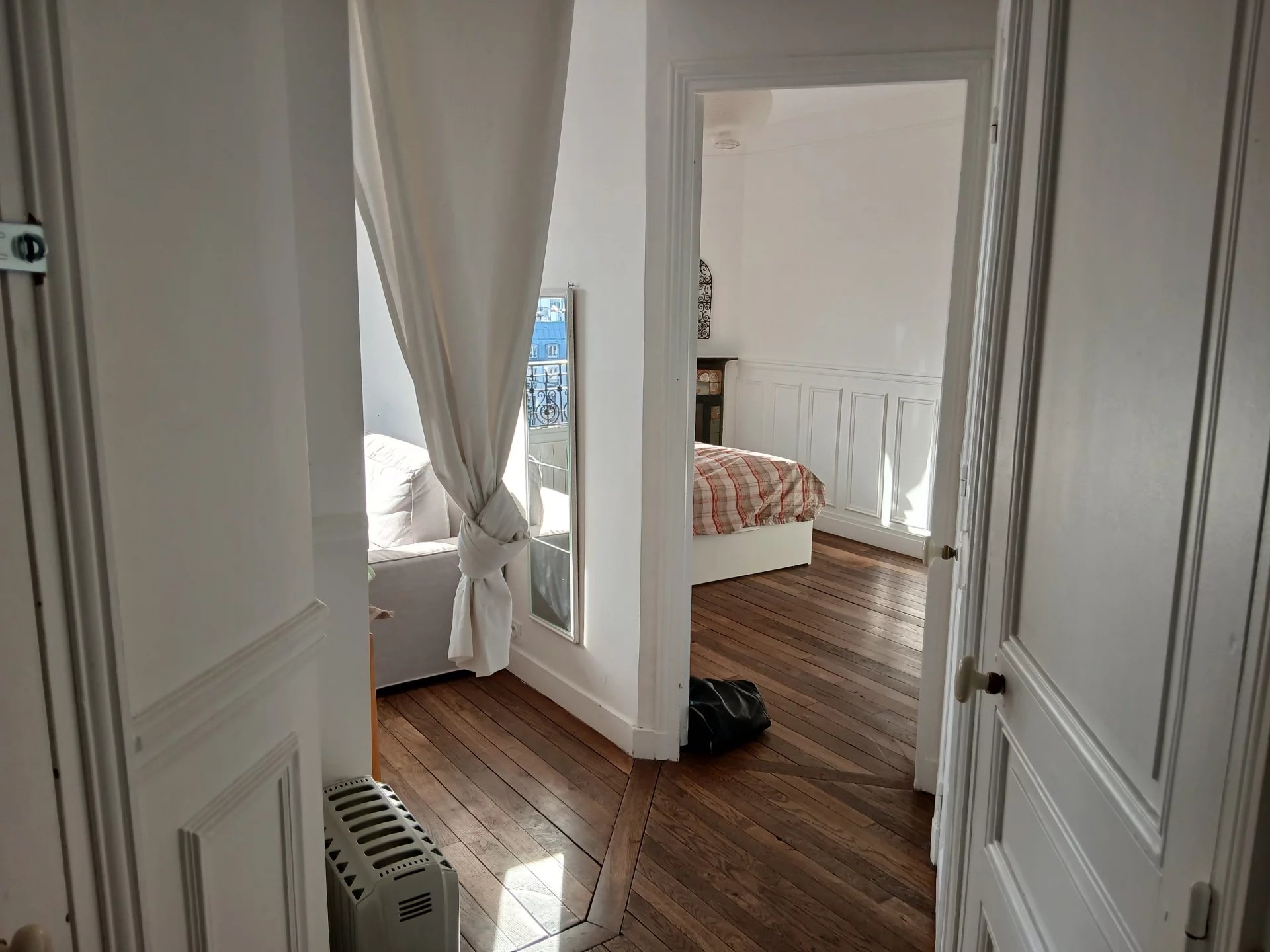 Paris 19ème Métro Jourdain 2 pièces au dernier étage sans ascenseur avec vue dégagée composé d'une entrée, une cuisine, un séjour, une chambre salle d'eau avec wc. Un débarras.
