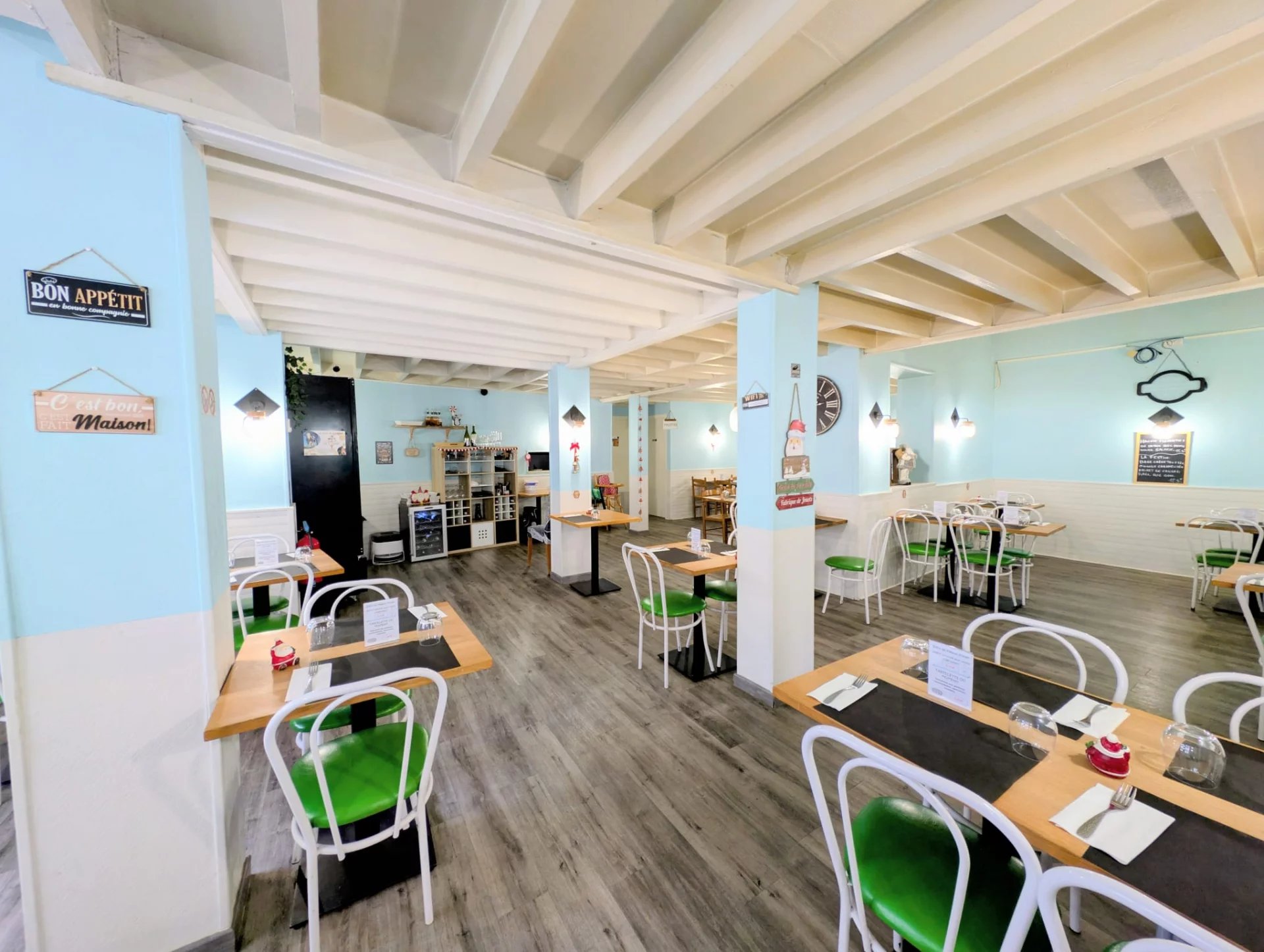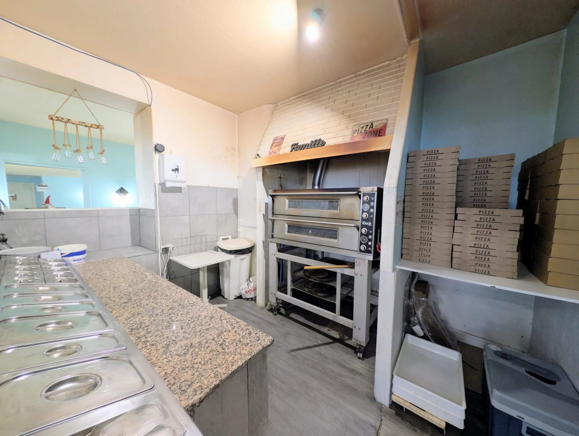 Une excellente opportunité avec une salle de 80 couverts, cuisine entièrement équipée et fonctionnelle avec une chambre froide, son bar et son espace four à pizza.
