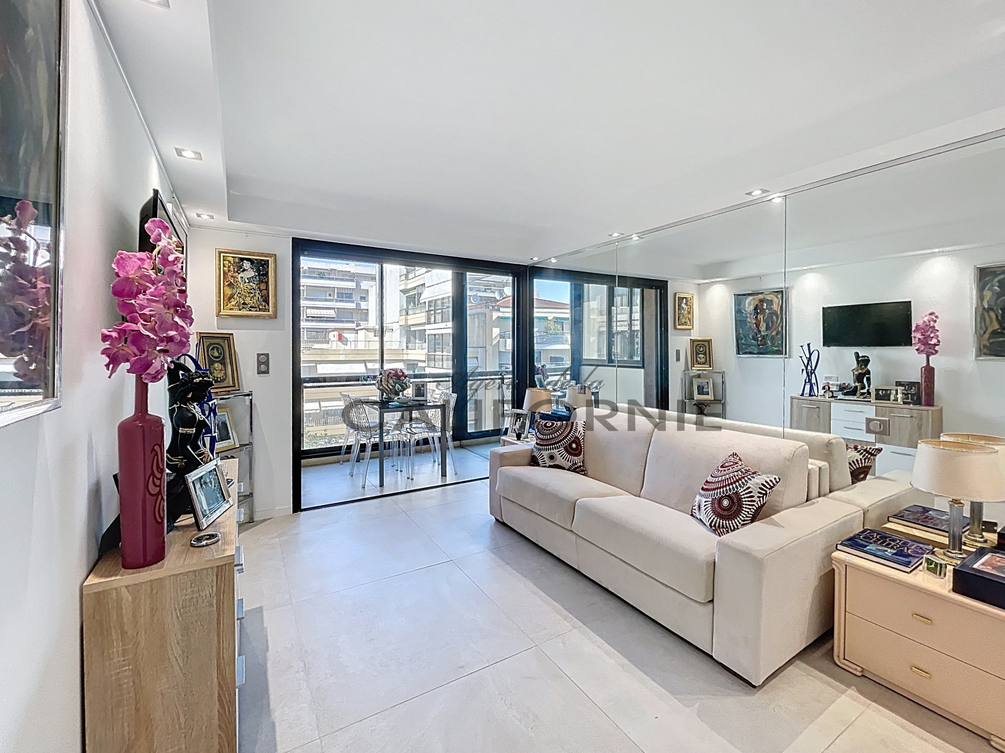 EXCLUSIVITE Magnifique studio dans la résidence 'Les Jardins de la Croisette' à proximité de l'hôtel CARLTON et à 2 pas de la Croisette, en étage élevé, très fonctionnel: entrée avec penderie, kitchenette équipée, living avec loggia fermée, salle d'eau et WC indépendant, au calme. Le studio peut-être vendu meublé. Une cave en sous-sol. Ideal investissement locatif, vacances et pied à terre. Possibilité de location de parking dans la résidence.