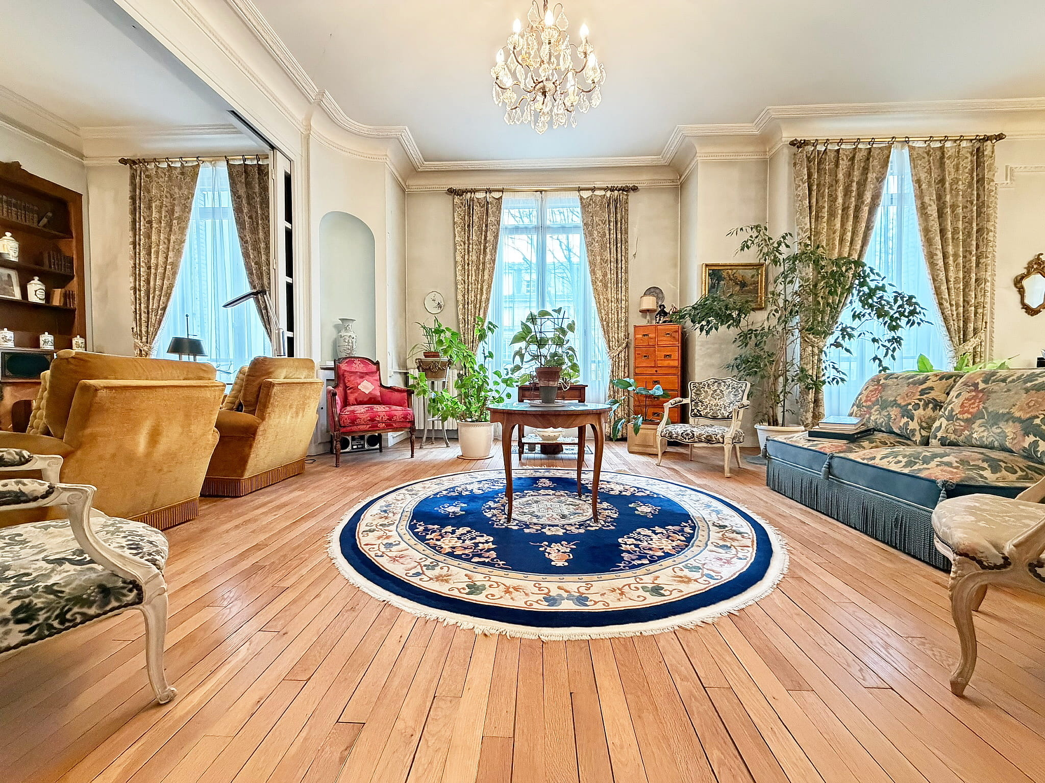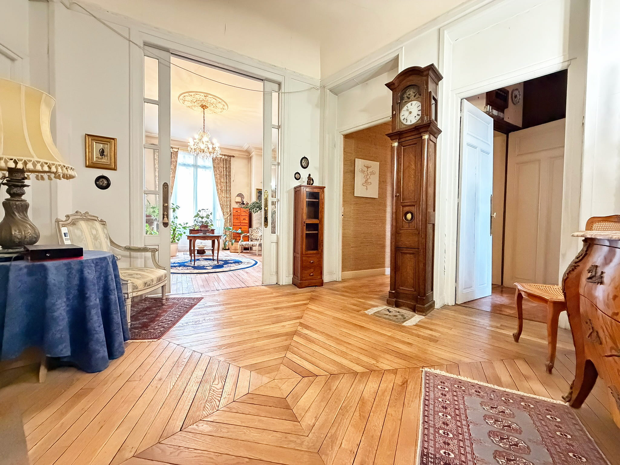 Situé au 2ème étage avec ascenseur, cet appartement développe 173 m2 et séduit immédiatement par le cachet préservé de l'ancien : Parquets d'origine, moulures élégantes, cheminées, belles hauteurs sous plafond et lumière traversante.