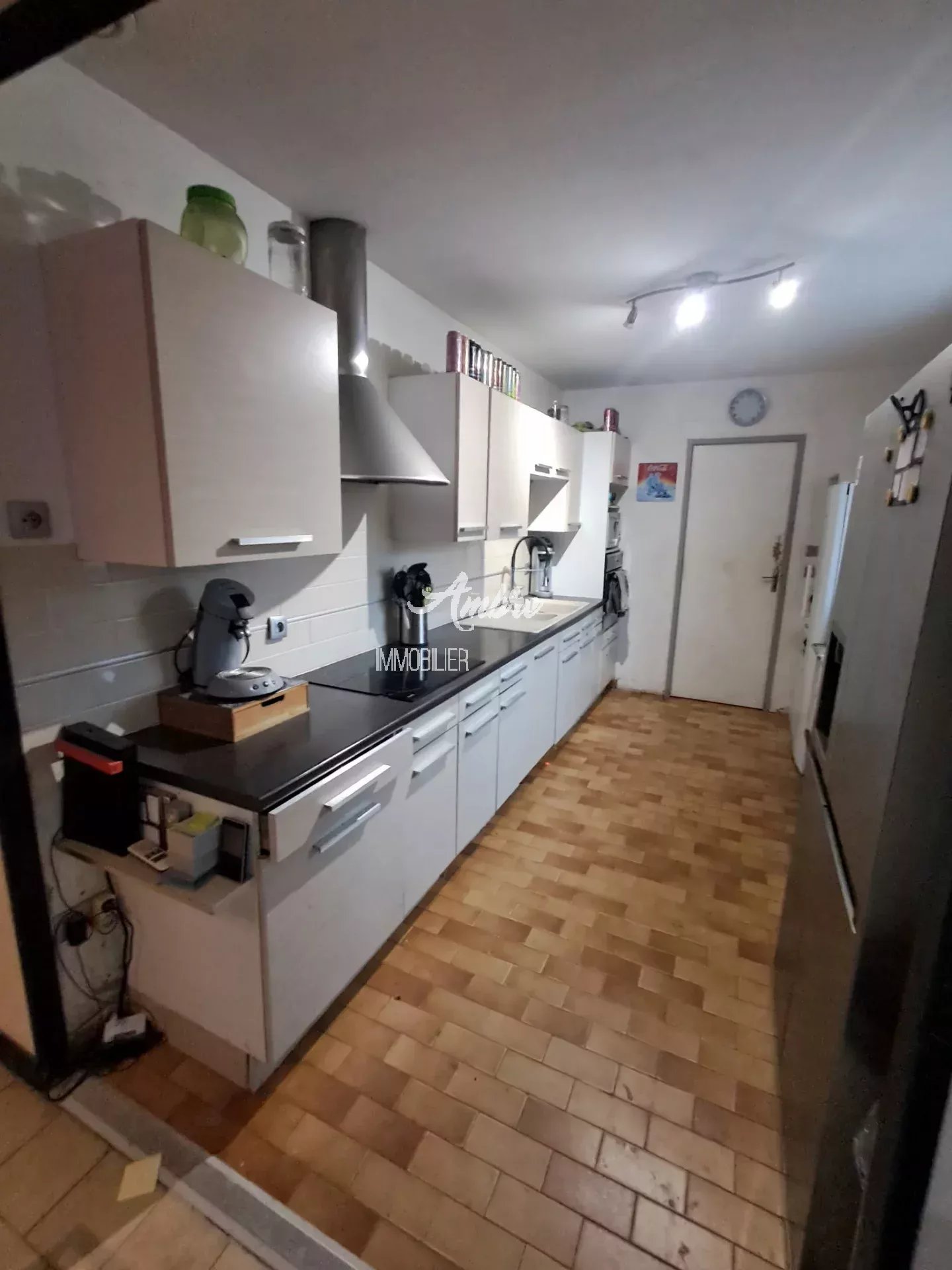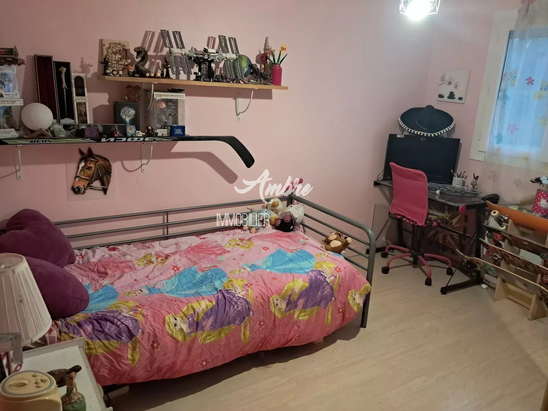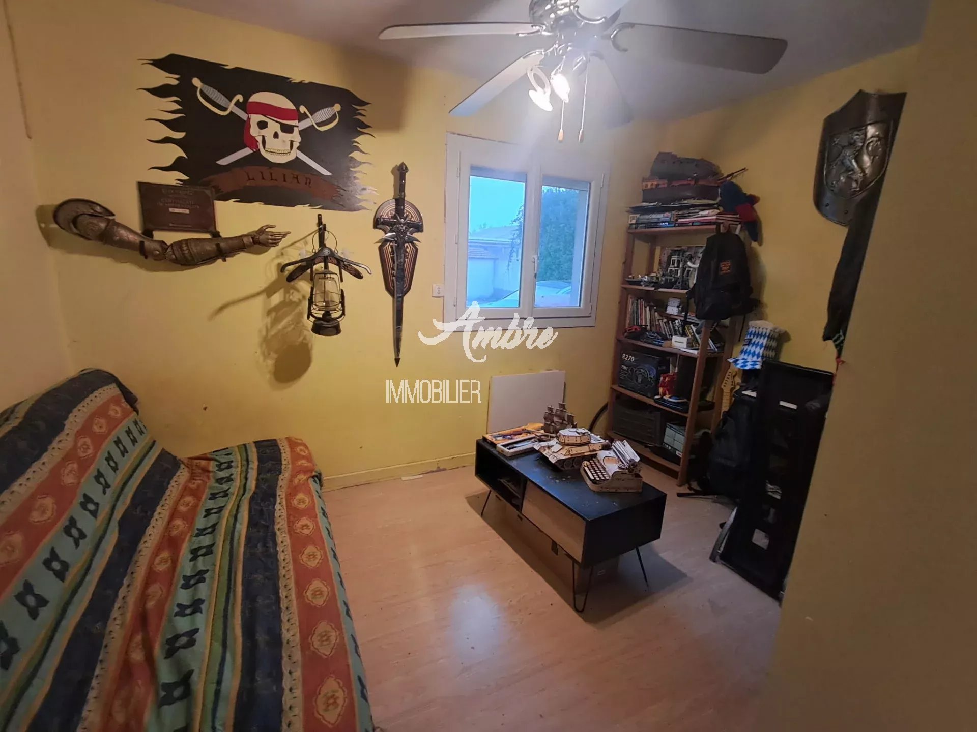 Une maison de 1983, de plain-pied et d'environ 90 m² comprenant : Une pièce de vie avec salon/séjour d'environ 32 m², une cuisine aménagée et équipée, quatre chambres, un dégagement, une salle de douche, un WC indépendant et un garage.