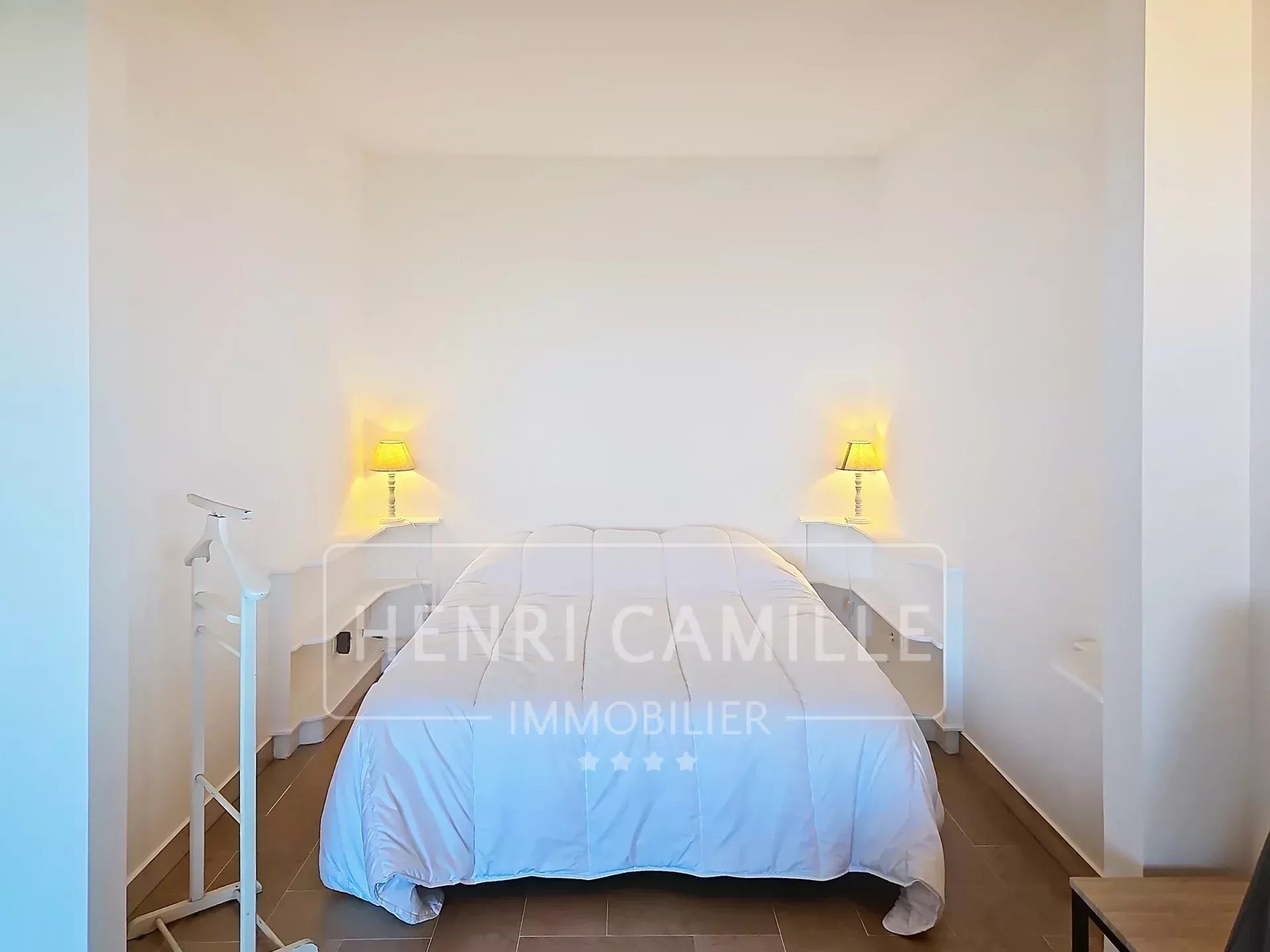 Il se compose d’une entrée avec rangements, d’une pièce de vie lumineuse avec cuisine ouverte équipée, d’une alcôve nuit avec lit double, d’une salle de bain, WC indépendants, ainsi que d’une spacieuse terrasse d’environ 10 m², exposée plein sud, offrant une vue mer.