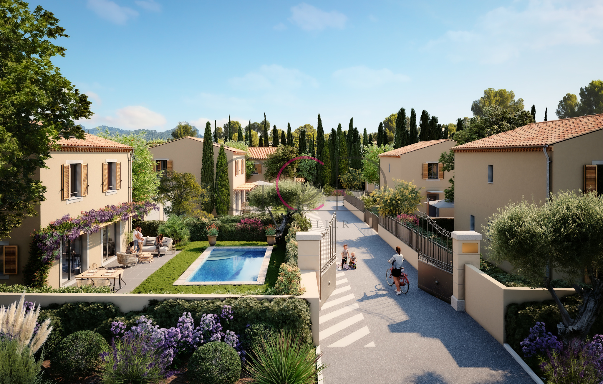 Niché au coeur d'un domaine paysagé clos et sécurisé, avec en son coeur un mas au charme ancien, découvrez cette villa neuve T5 individuelle élégante avec terrasse, piscine et garage privatifs.