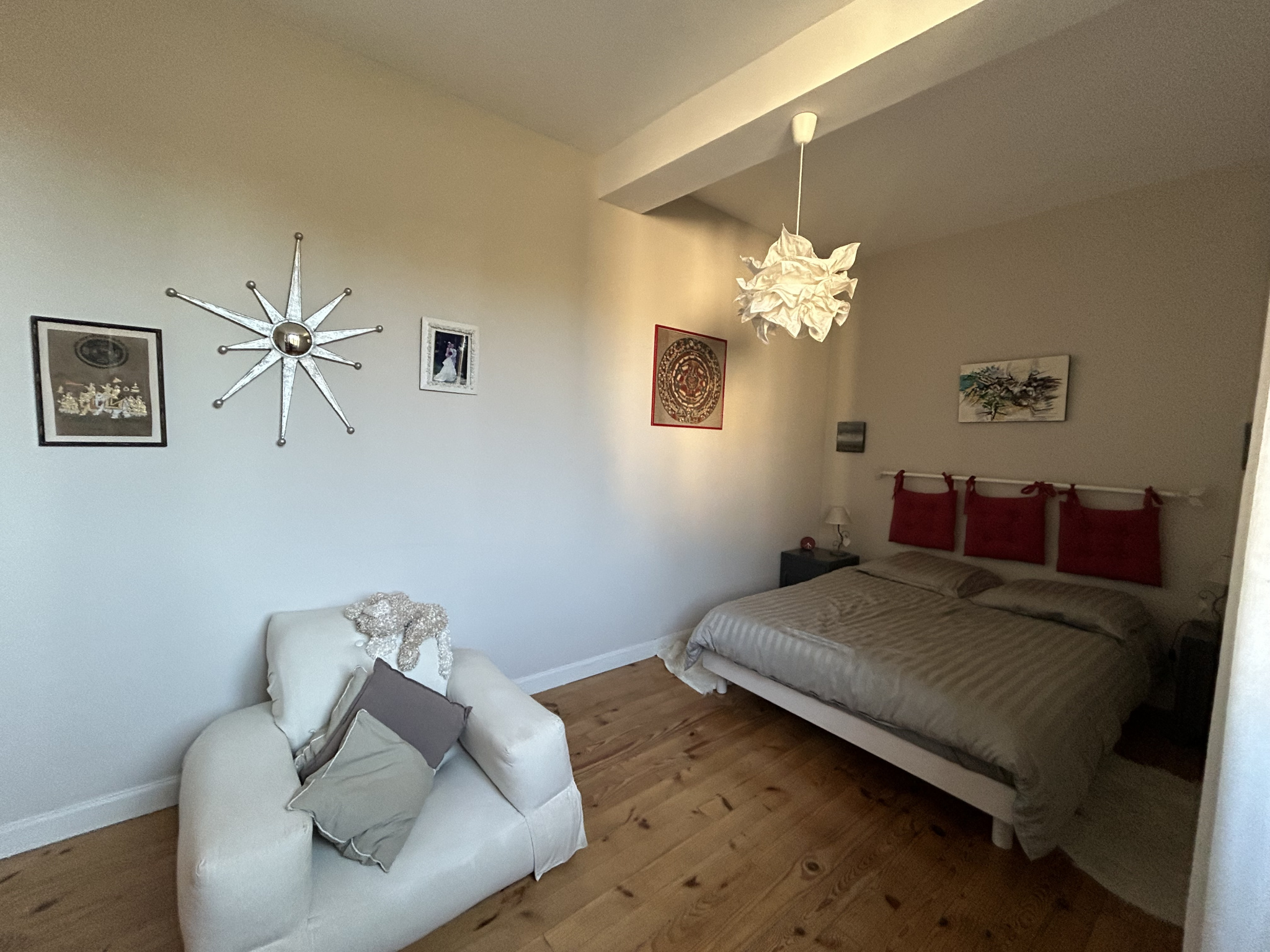 A l'étage, l'espace nuit se compose de deux grandes chambres, d'une salle de bains et d'un wc séparé ,d'un petit bureau et d'un débarras.