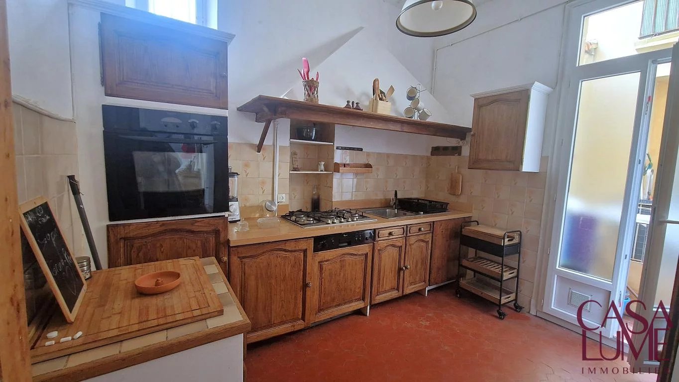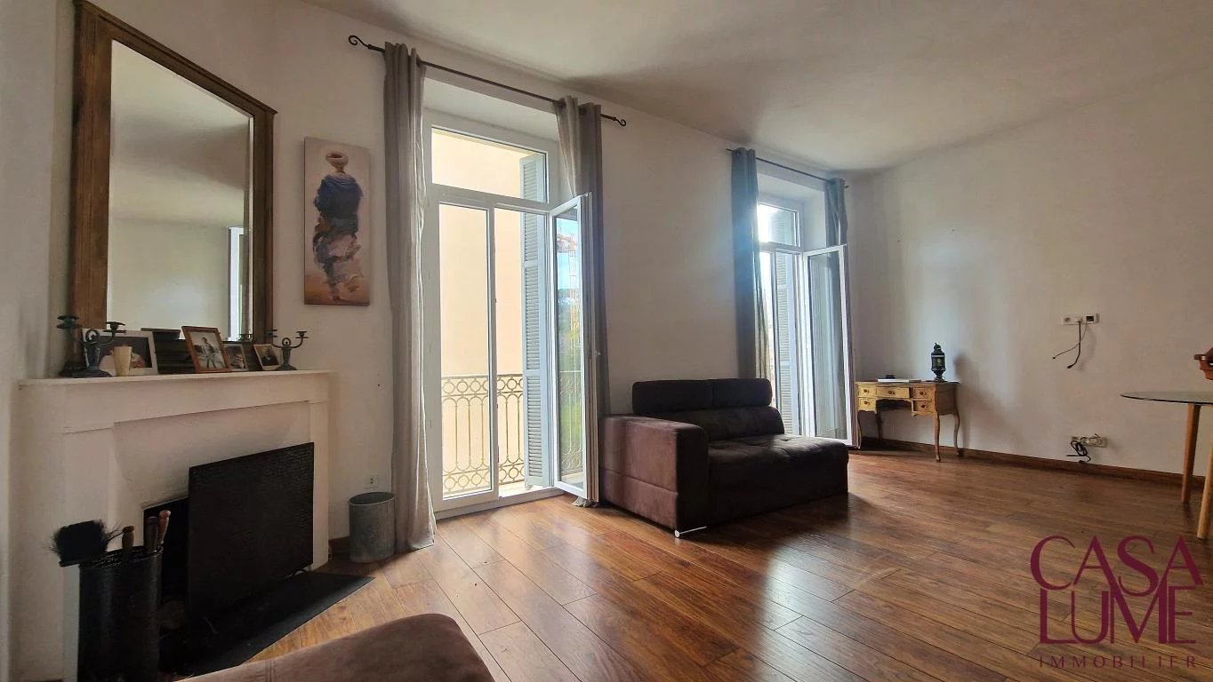 Très grand F2 dans le quartier des étrangers. Le bien est idéalement situé dans une petite rue tranquille à deux pas du cours Grandval, proche à pied du centre ville et de la plage. L’appartement est un ancien F3 qui a été modifié en F2, il offre une superficie habitable d’environ 62 m² et possède une très belle hauteur sous plafond. La grande pièce de vie possède une cheminée, toutes les pièces ont des portes fenêtres donnant sur des petits balcons, les menuiseries ont été changées.