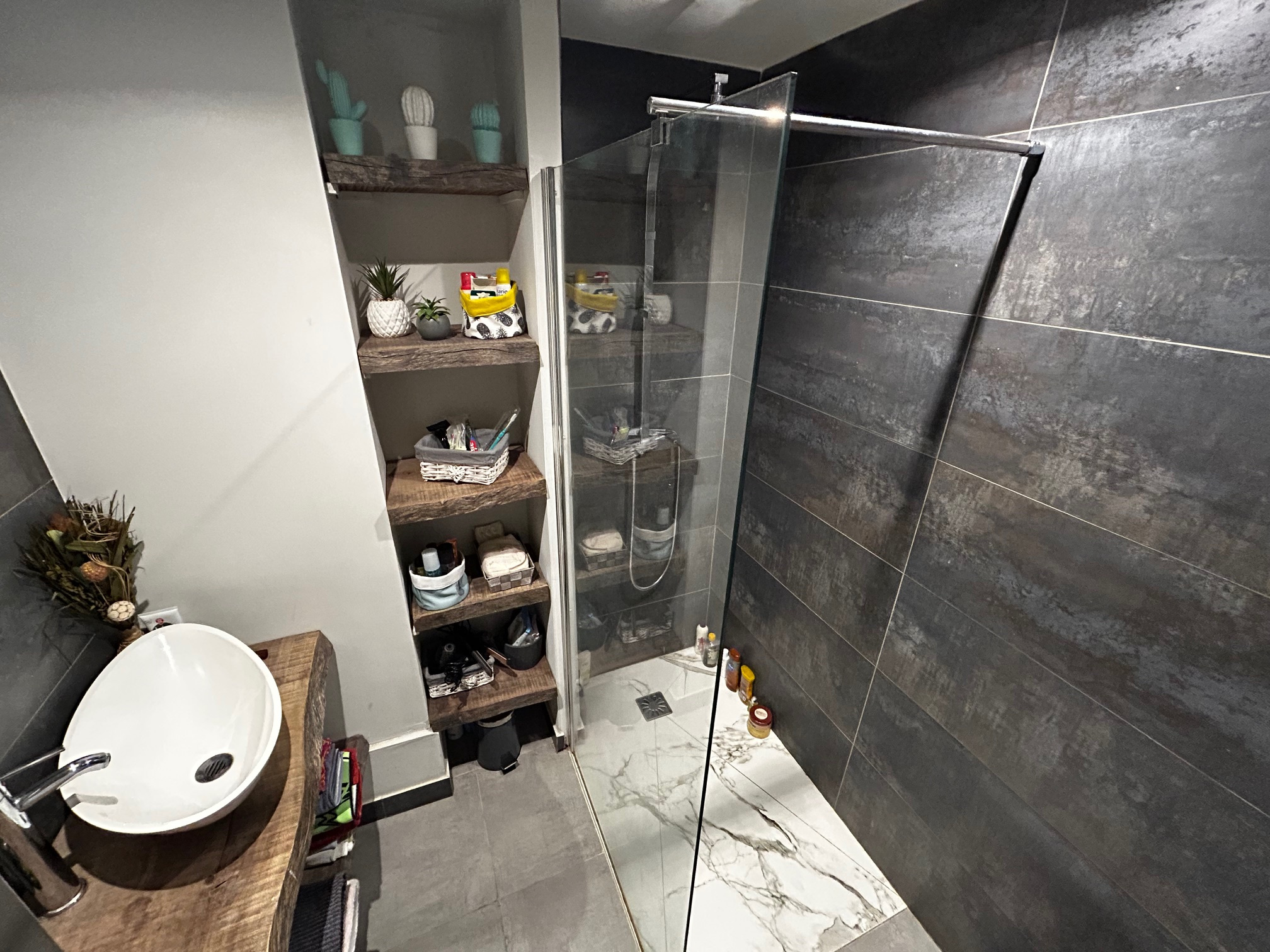 L'espace nuit offre deux belles chambres avec placards intégrés, une salle d'eau contemporaine, ainsi qu'un WC suspendu séparé.