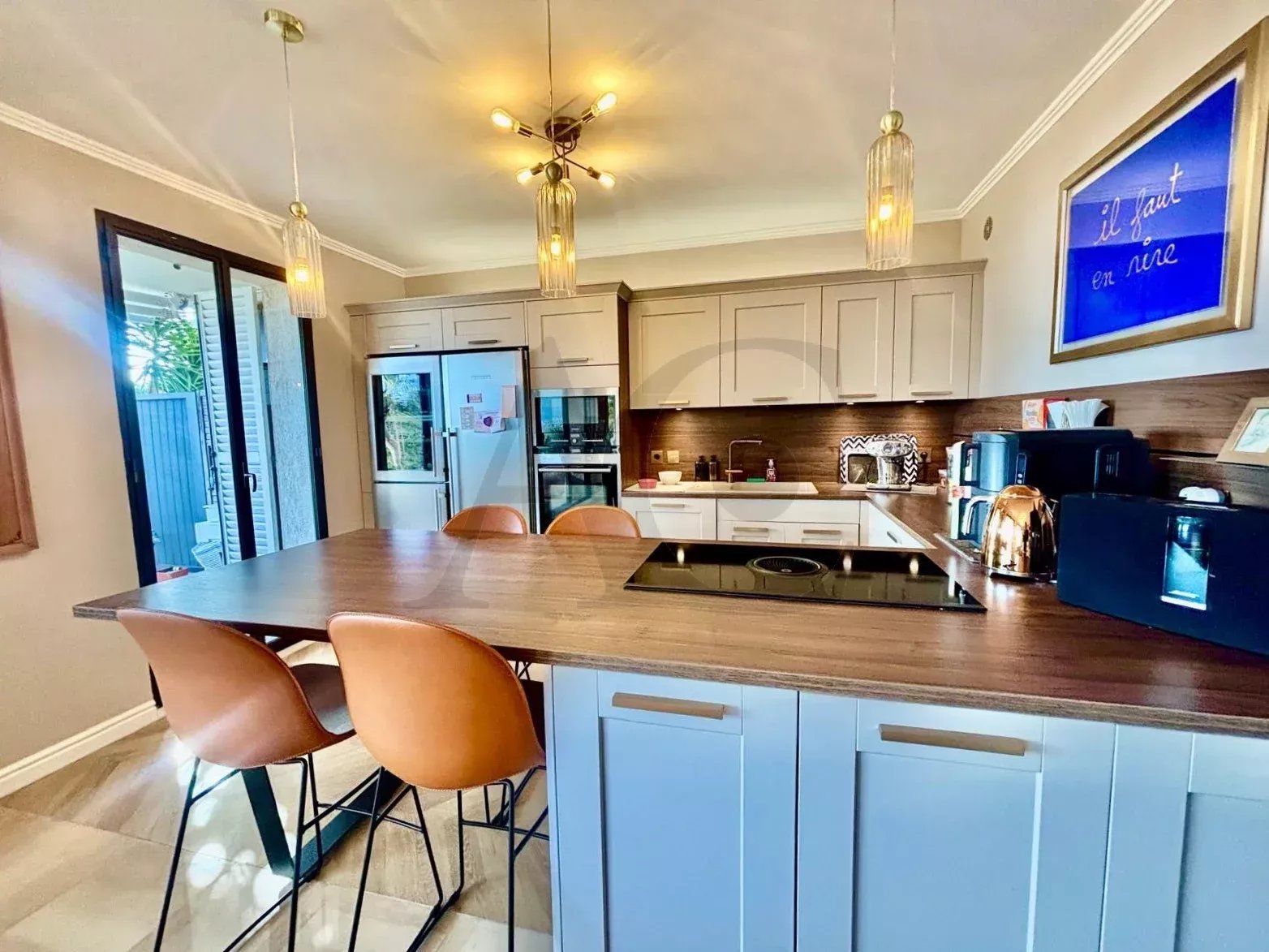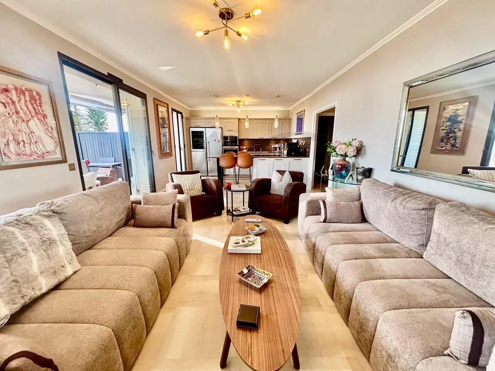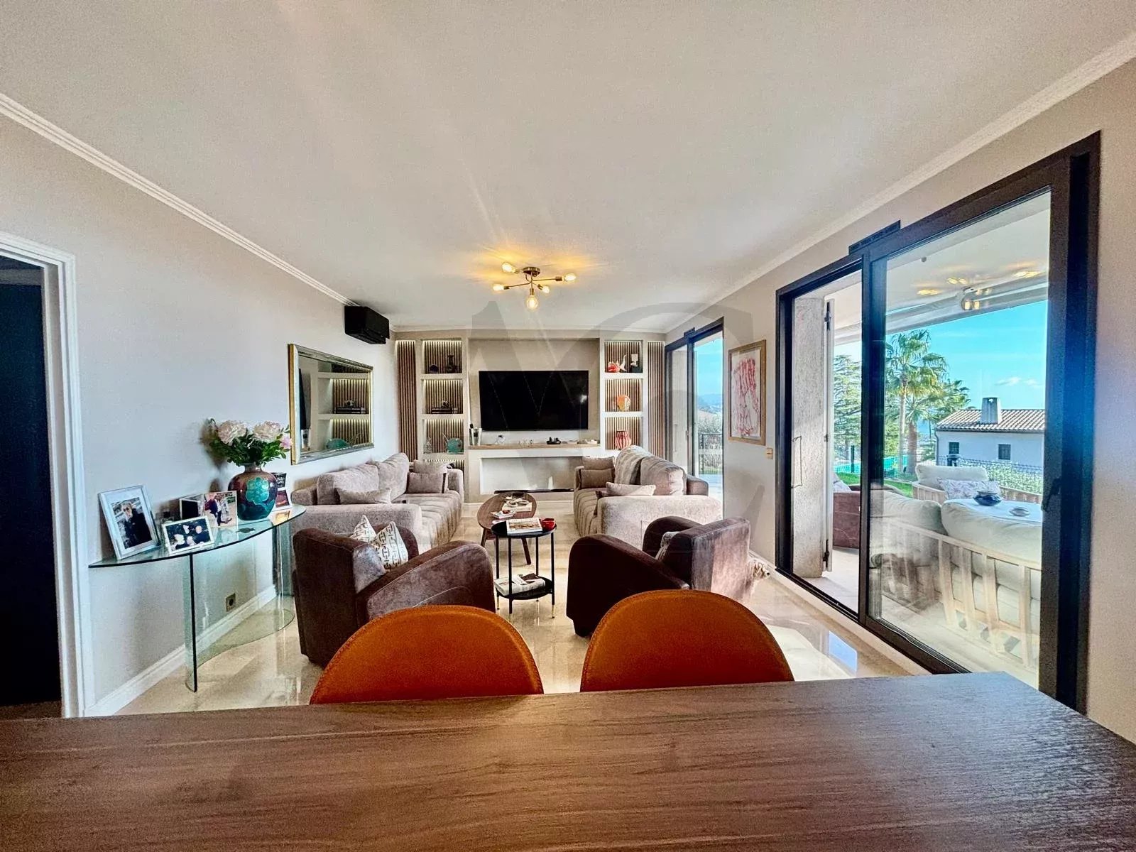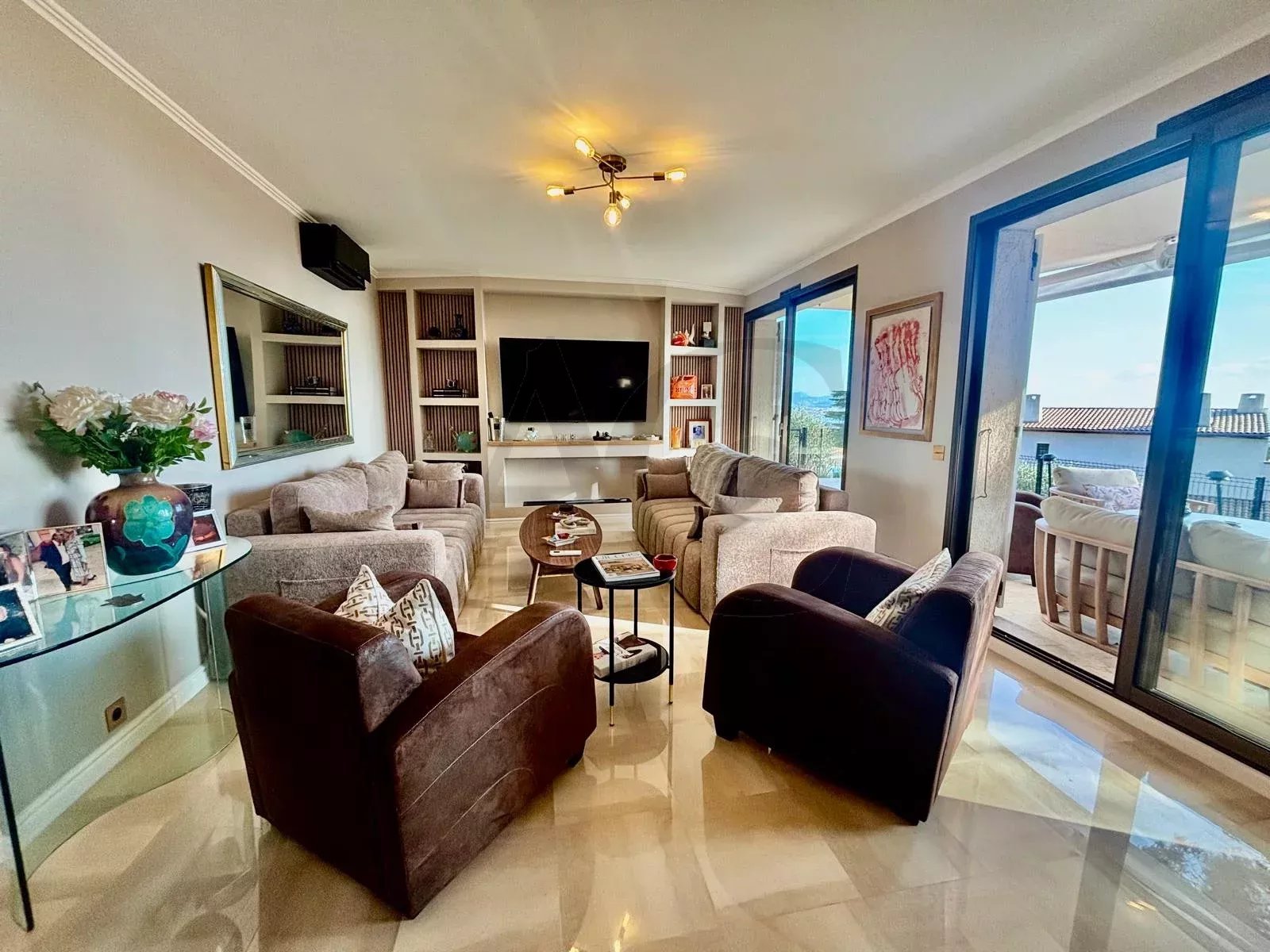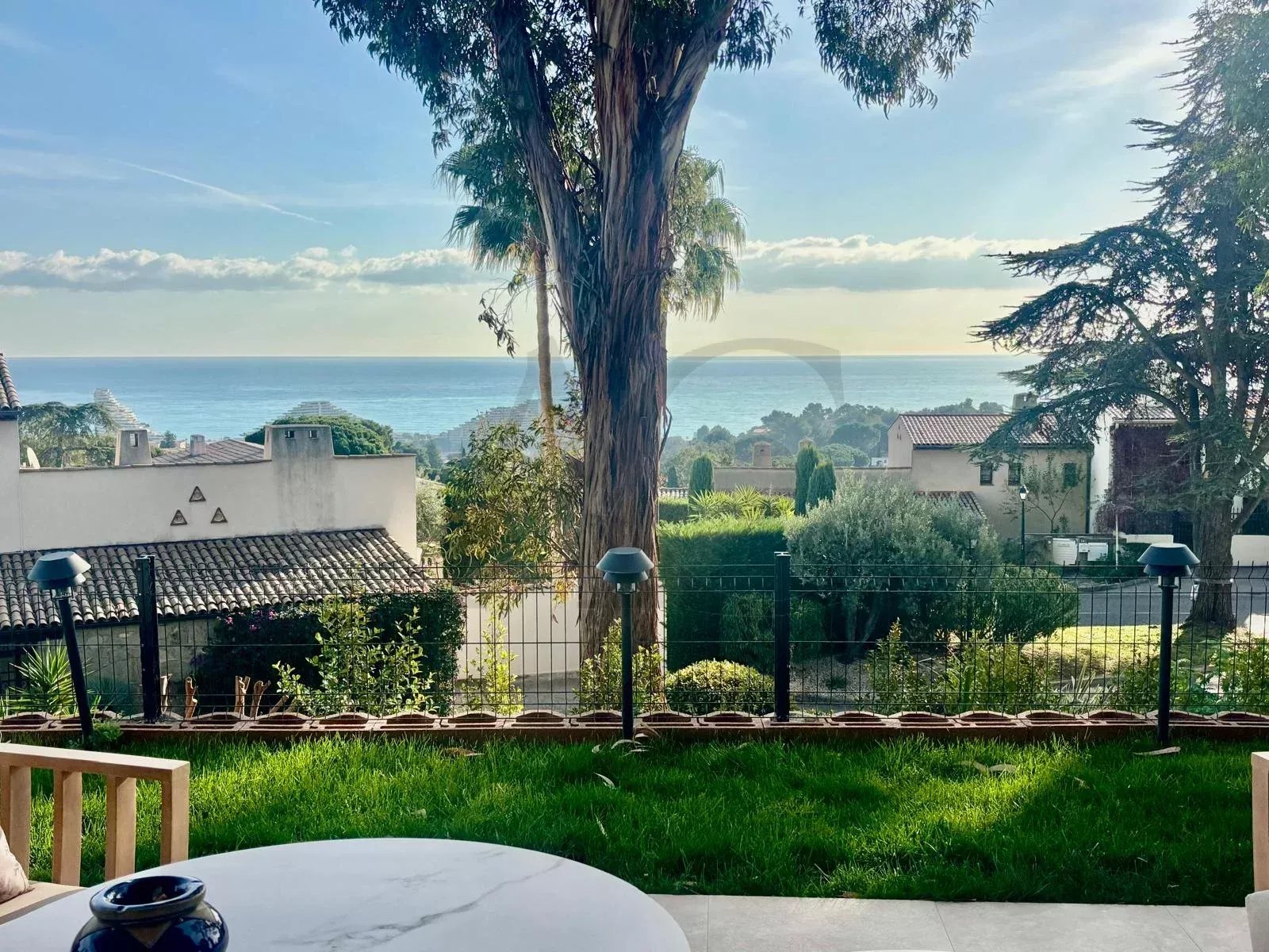 Découvrez un havre de paix unique, alliant le calme absolu d'une résidence sécurisée sans vis-à-vis au panorama sublime sur la mer et la montagne. Cet appartement de 103m² entièrement rénové en 2025 avec goût vous offre une vie où luxe et sérénité se rencontrent. Les atouts irrésistibles : Rez-de-jardin : ouverture sur une immense terrasse/jardin privative de 70m² env. * Vue mer imprenable depuis le séjour, la cuisine et la suite parentale. * Calme absolu et intimité totale, sans vis-à-vis. * Rénovation de qualité et climatisation réversible pour un confort en toute saison. * Parking couvert et cave attenante inclus. une partition parfaite de l'espace : * Hall d'entrée avec un grand placard pratique. * WC invités séparé. * Cuisine ouverte entièrement équipée (marbre, électroménager neuf) avec buanderie équipée attenante * Vaste salon/salle à manger lumineux, donnant directement sur la terrasse et la vue mer. * Dégagement menant à un dressing aménagé. * Une chambre avec placards. * Un bureau/2ème chambre avec placard aménagé. * Une salle de douche élégante. * LA SUITE PARENTALE avec sa salle de bain privative complète (baignoire, WC) ouvrant côté terrasse pour des réveils face à la Méditerranée. Option précieuse : Possibilité meublé, clé en main. Idéal pour une résidence principale au calme ou une résidence secondaire de prestige. Visite exclusive sur rendez-vous
