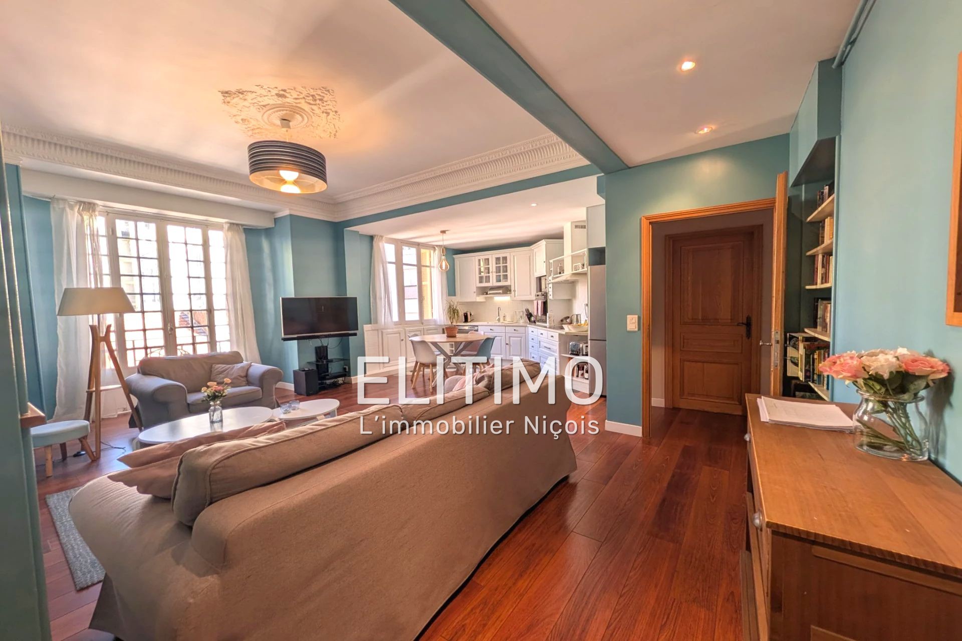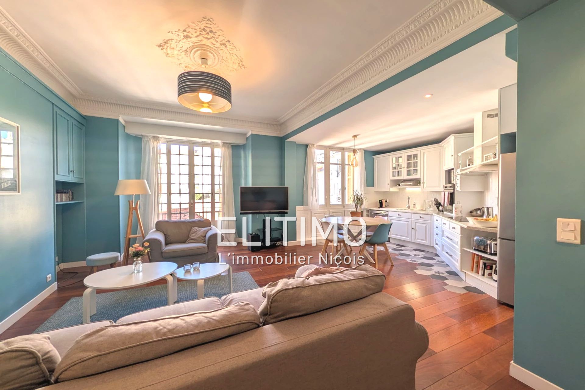 Traversant Sud-Nord, l'appartement offre une luminosité remarquable, de beaux volumes et une atmosphère raffinée, typique des belles adresses niçoises.