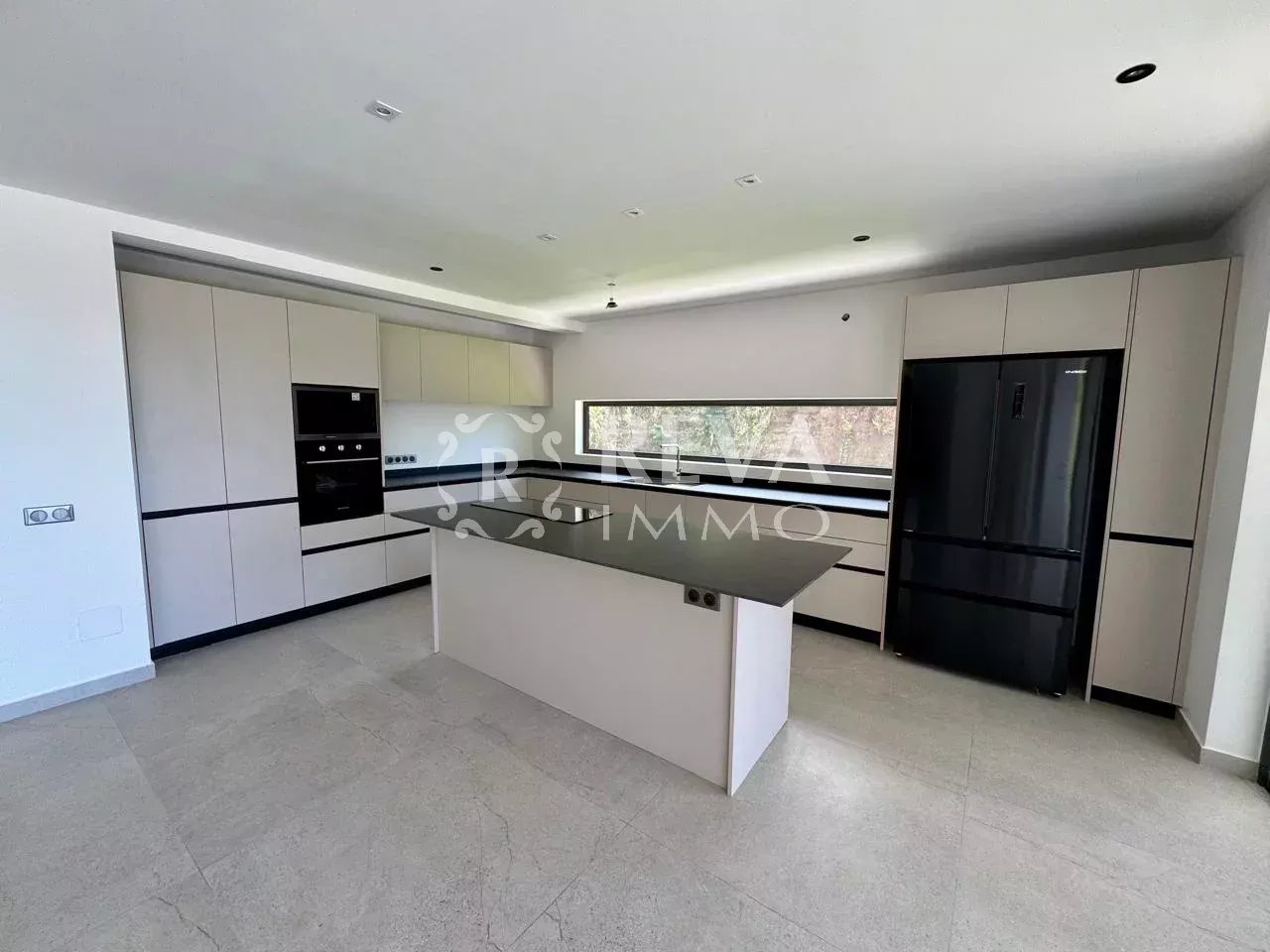 La villa se compose, au rez-de-chaussée, d’un vaste séjour lumineux ouvrant sur une belle terrasse avec piscine.