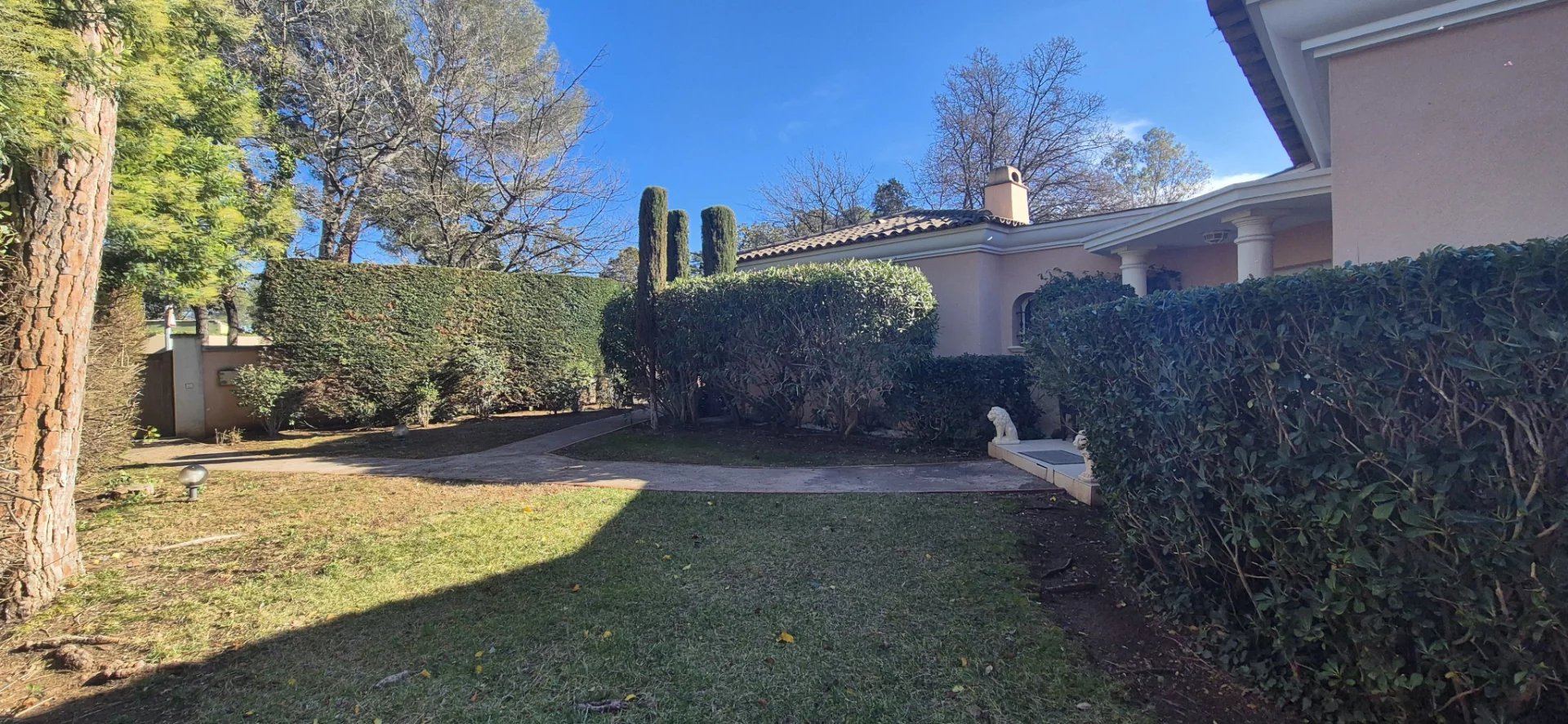 Jardin paysager soigné, parfait pour se détendre ou recevoir.