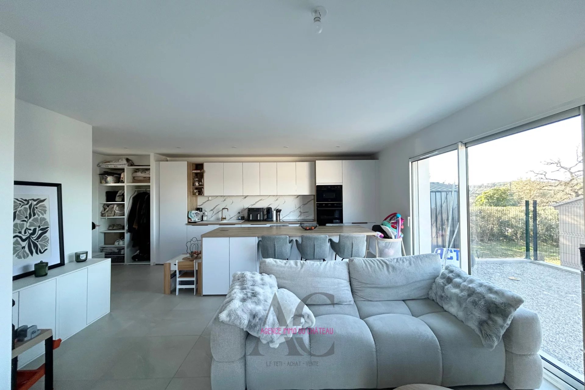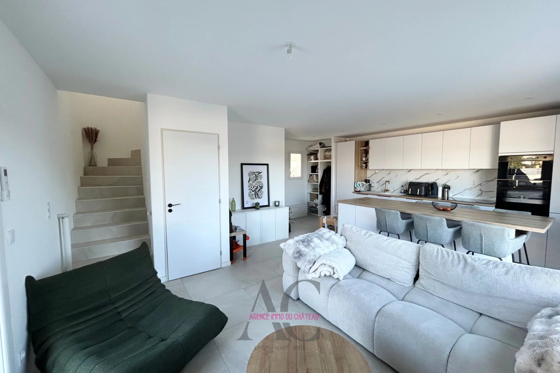 Au rez-de-chaussée, vous découvrirez une superbe cuisine entièrement aménagée et équipée, dotée d’un élégant îlot central pouvant accueillir plusieurs convives. Cet espace s’ouvre sur un salon lumineux et convivial. Une buanderie ainsi que des WC indépendants complètent ce niveau.