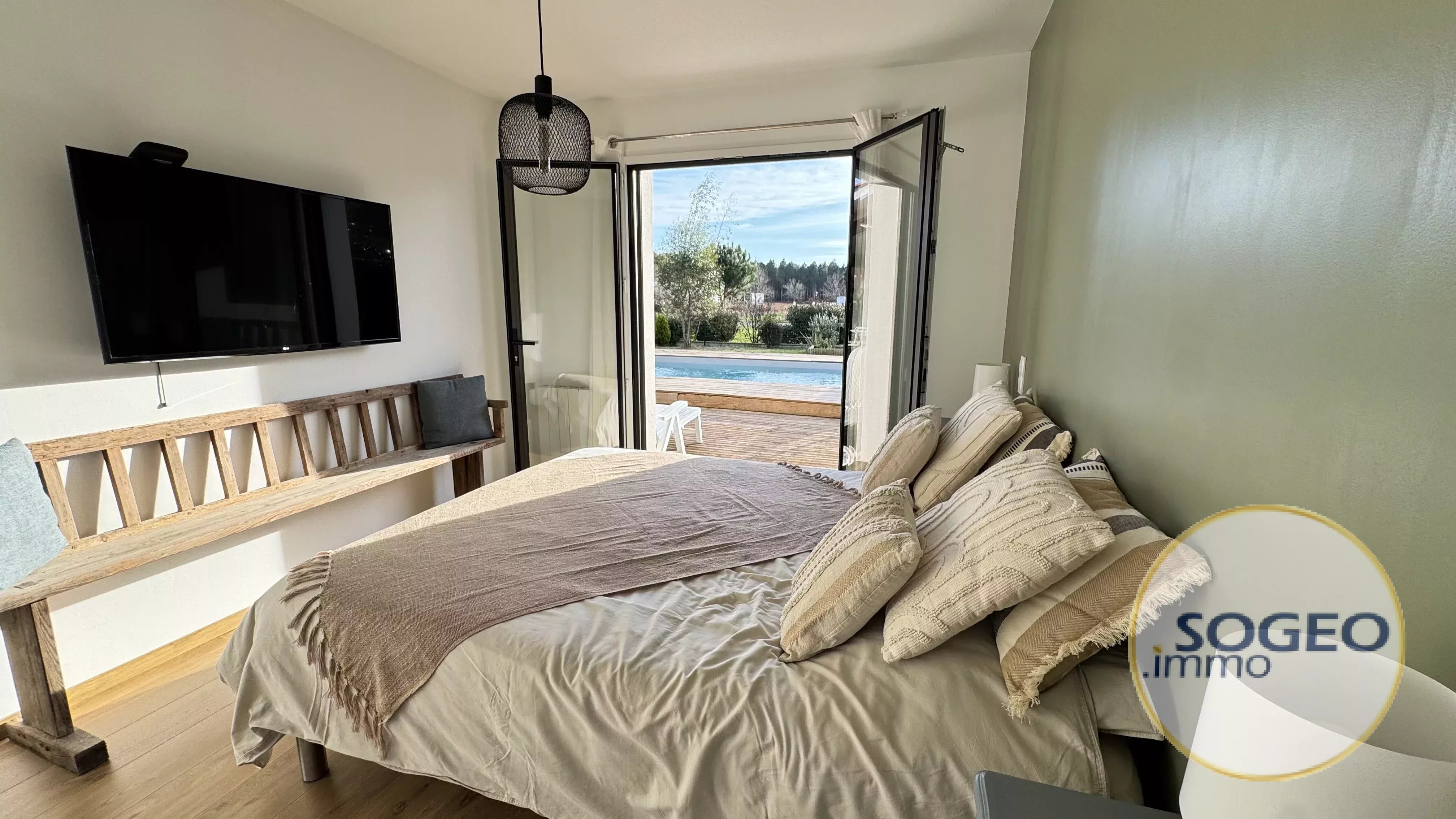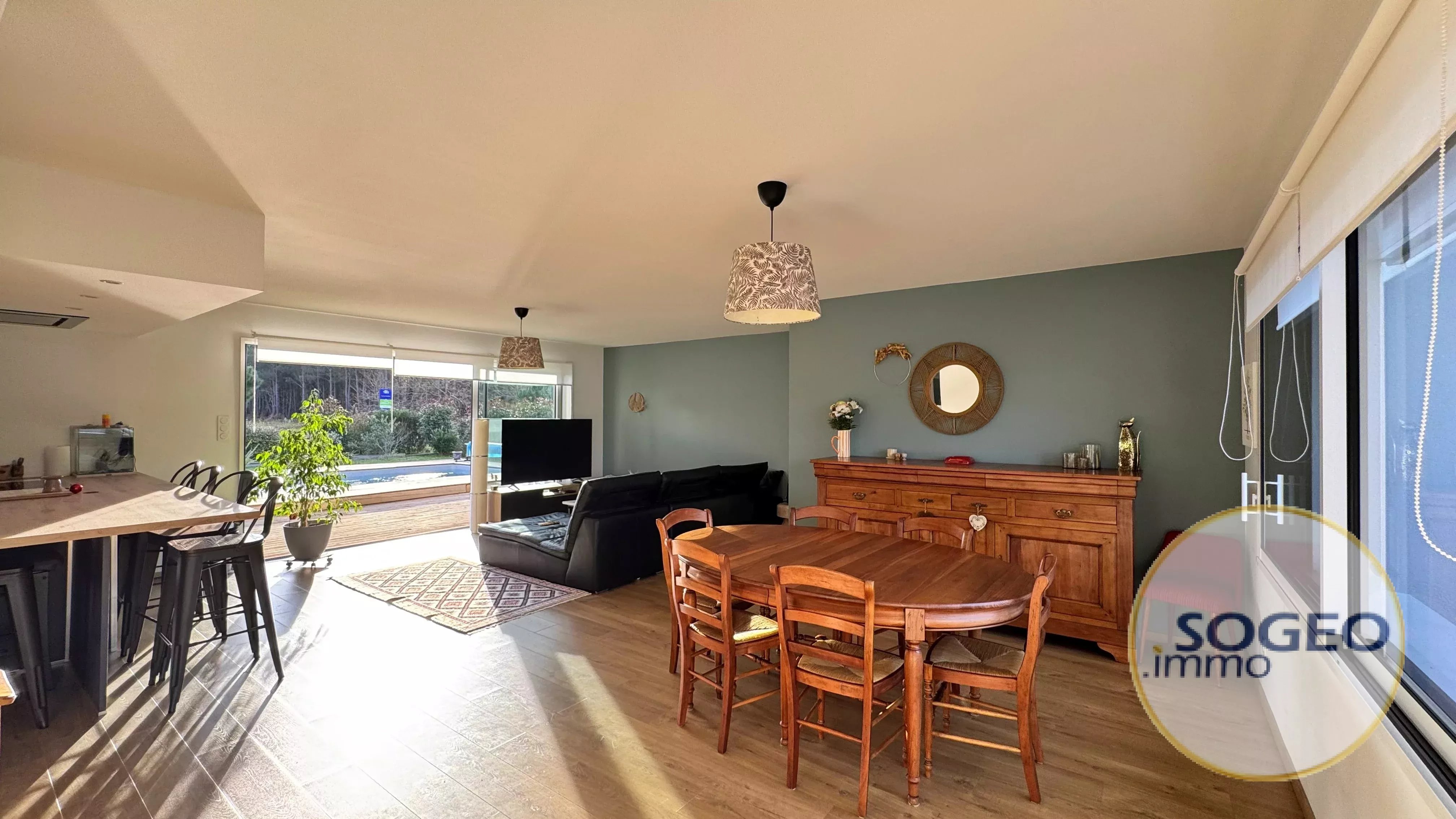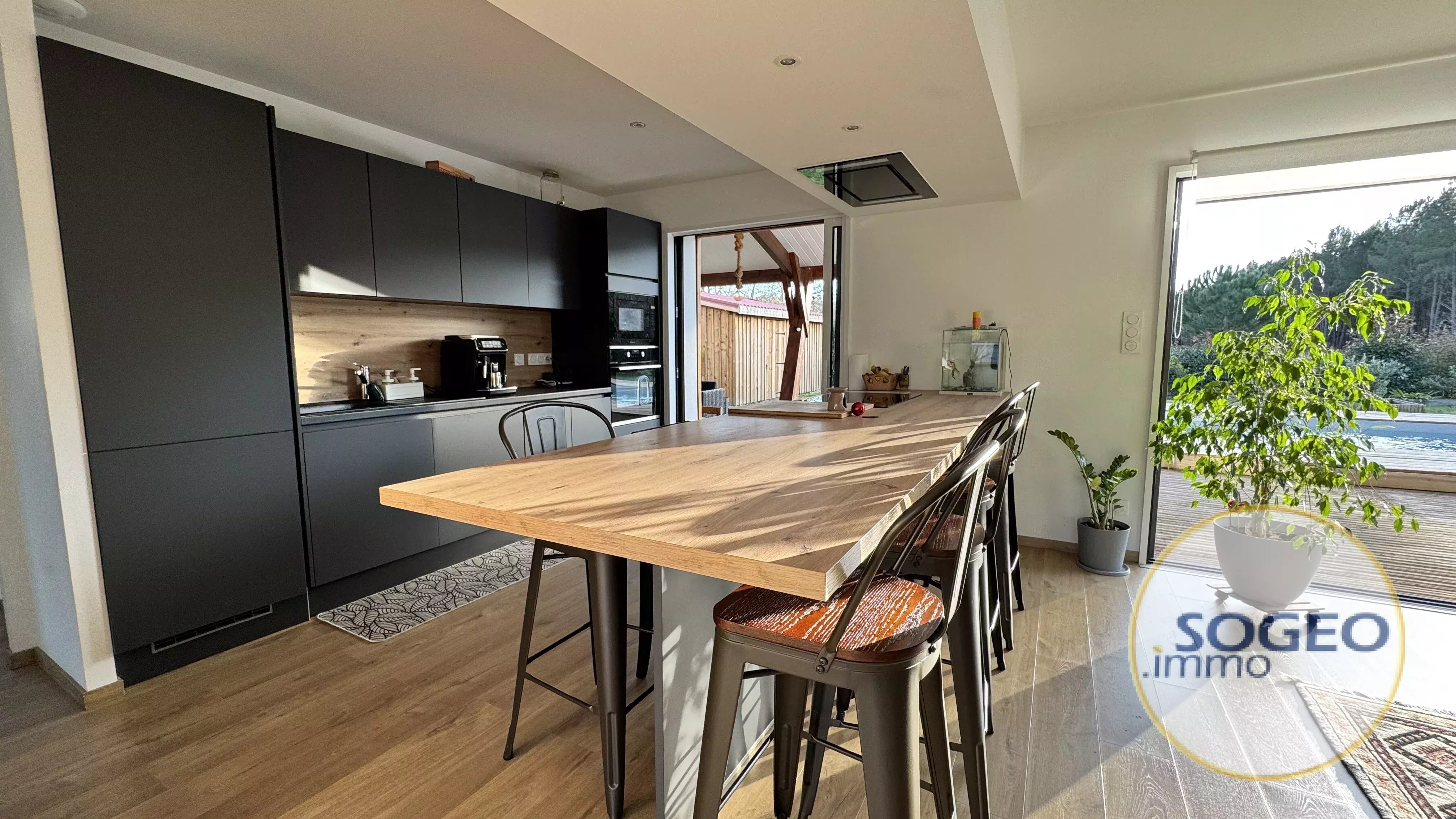 EXCLUSIVITE - Tout près de Contis plage découvrez cette magnifique villa très récente de 115m2 avec piscine et garage sur sa parcelle arborée clôturée. De plain-pied, elle vous accueille dans un grand espace de vie traversant de 55m² donnant sur la terrasse et la piscine. De part et d’autre de cet espace central se trouvent les 3 chambres (dont une suite), les salles d’eau et les toilettes. Pour un réveil tout en douceur, 2 de ses chambres ouvrent leur porte-fenêtre sur la terrasse et la piscine. Un cellier et un garage complètent l’ensemble. A l'extérieur, une grande terrasse bois partiellement couverte prolonge l'espace de vie en direction du jardin et de la piscine. Le terrain de 770m² comprend un abri de jardin de 18m². La conception récente de cette superbe maison va de pair avec des prestations haut de gamme : baies vitrées aluminium à galandage, climatisation réversible pilotable à distance, chauffe-eau thermodynamique, volets roulants électriques, portail télécommandé. Sa qualité de construction et de finition en fait un bien remarquable au cœur d'un environnement naturel privilégié. Classe énergie: A. Emissions: A. Estimation des coûts annuels d’énergie du logement 351€ par an (méthode Th-BCE 2012, abonnement compris, index 2015). Assainissement tout à l'égout. Forage. Prix du bien hors honoraires: 440 000 € - Honoraires TTC: 20 000 € soit 4.54 % - Honoraires à la charge de l'acquéreur. Gagnez du temps en faisant réaliser votre étude de financement avant la visite par notre courtier partenaire Audaris (nous contacter). Les informations sur les risques auxquels ce bien est exposé sont disponibles sur le site Géorisques : www.georisques.gouv.fr Visite virtuelle 360° complète (intérieur/extérieur) disponible sur demande. Reference annonce : SOGEO 778 RS