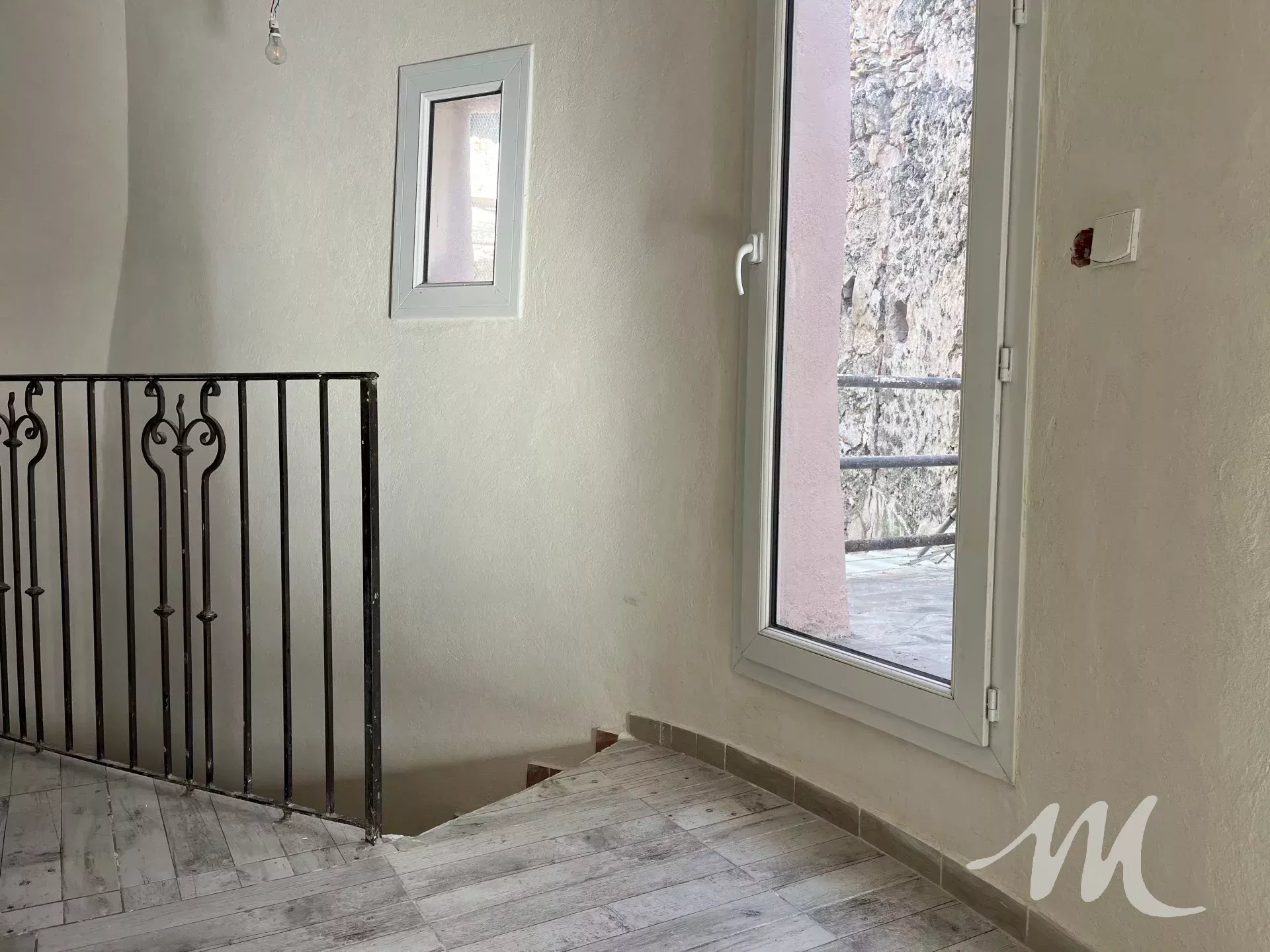 Au deuxième et dernier étage, la maison dispose de deux chambres et d’un petit balcon, apportant luminosité et charme à l’ensemble.