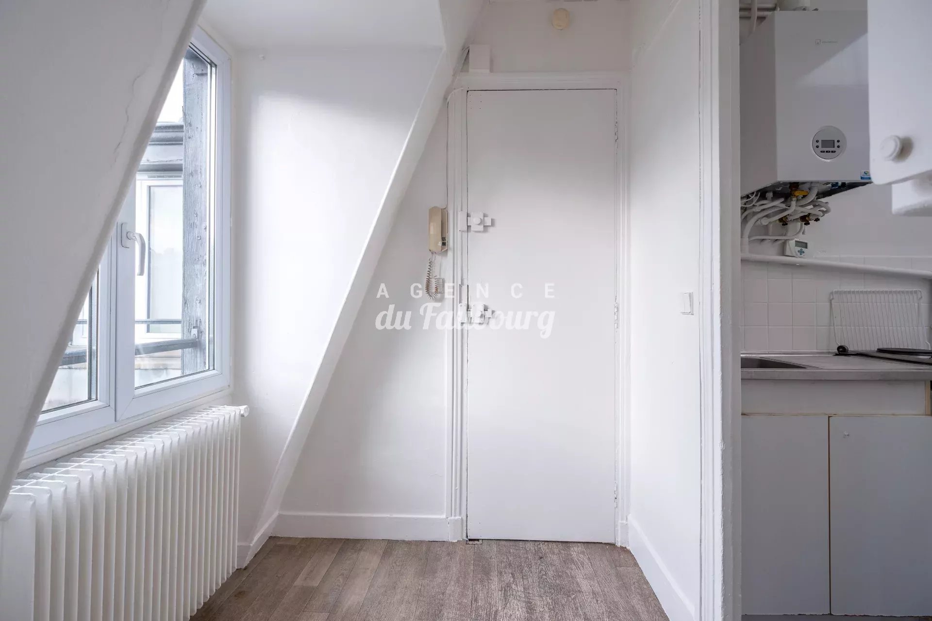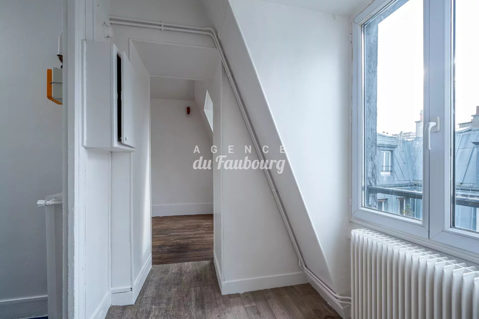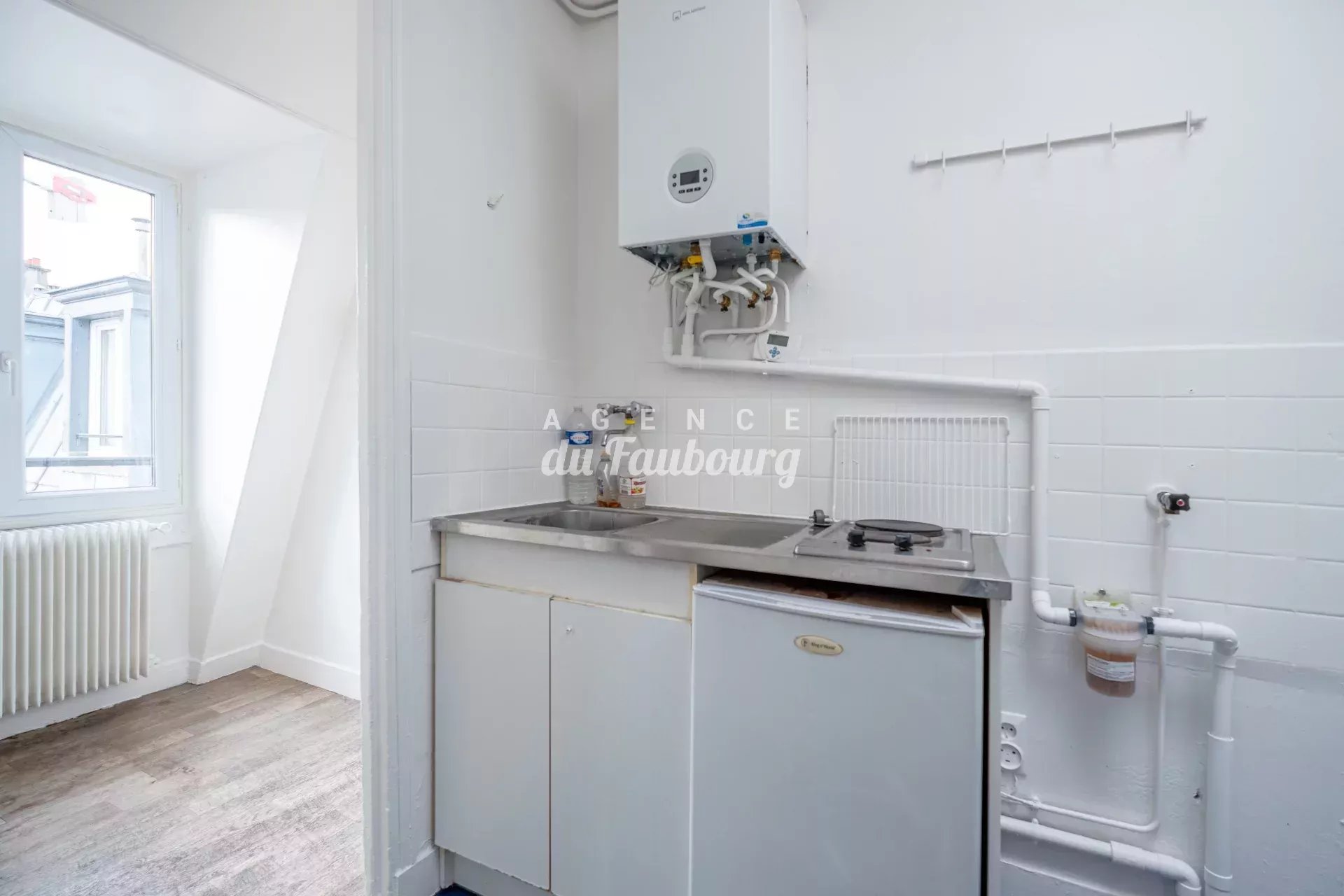 Paris 9ème - rue du Faubourg Poissonnière - Exclusivité - Dans un bel immeuble ancien de caractère, l'Agence du Faubourg vous propose deux lots d'une superficie totale de 20,72 m2, situés au 6ème et dernier étage par escalier, comprenant un studio de 16,39 m2 (14,50 m2 Loi Carrez) avec entrée, cuisine séparée, pièce de vie et une salle de bains avec WC de 4,33 m2.
