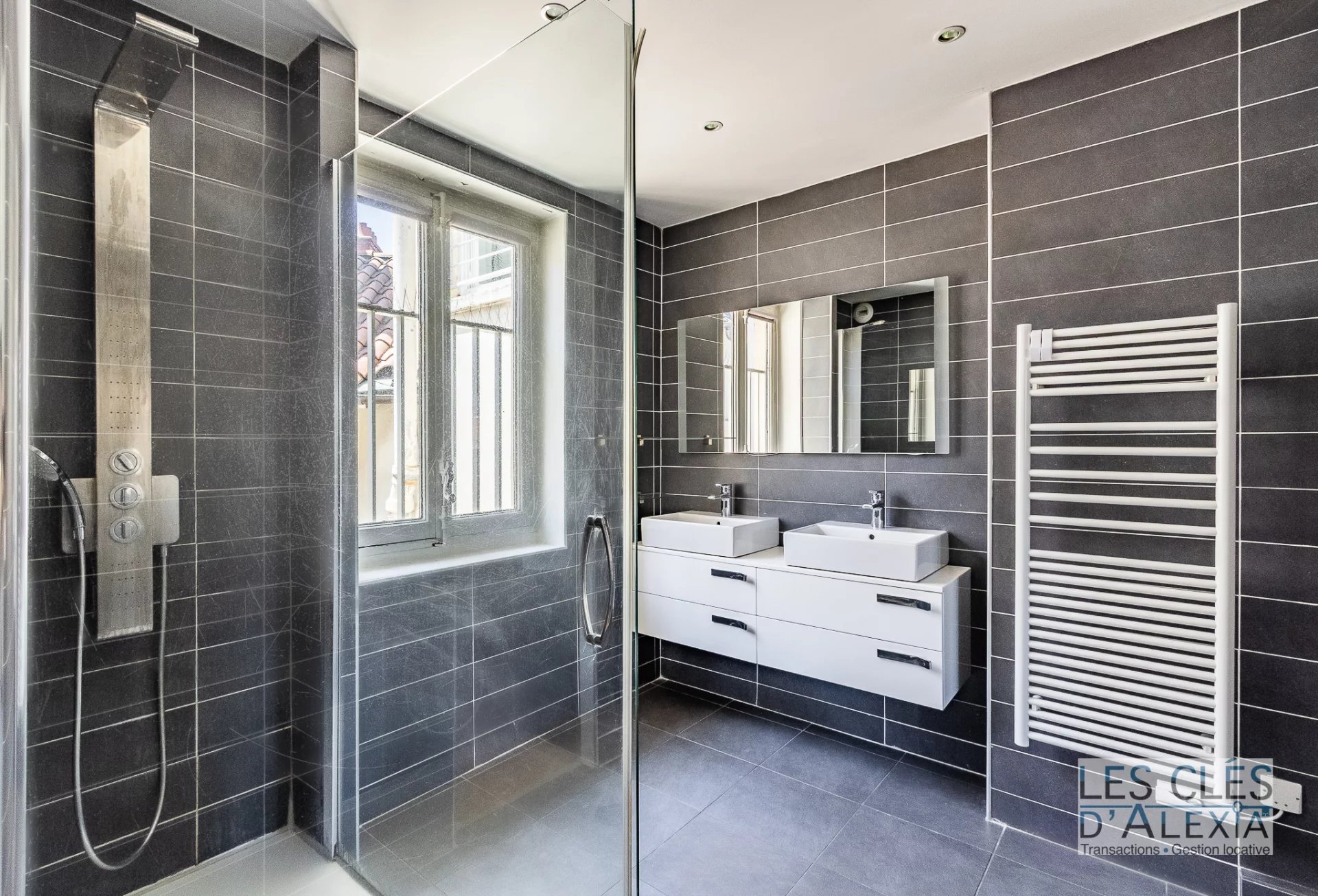 Sol en pierre naturelle dans la totalité du séjour et du couloir, double vitrage intégral, volumes généreux, lumière traversante… tout a été pensé pour conjuguer confort, élégance et fonctionnalité.