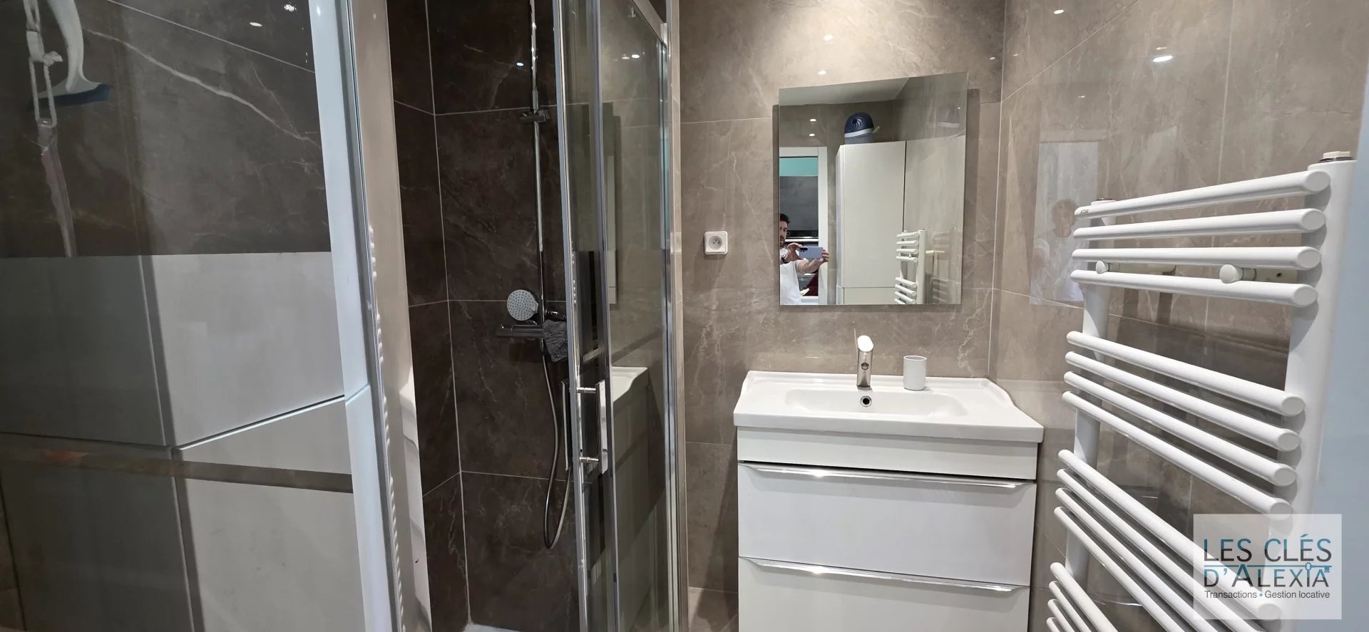 La salle d’eau, moderne et élégante, a été repensée avec des finitions de qualité. Les toilettes séparées apportent une touche supplémentaire de confort et de praticité.