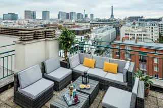 Exceptionnel : appartement avec terrasse de 45 m2 et vue sur la Tour Eiffel, au 10ème et dernier étage étage d'un bon immeuble ,ascenseur Appartement meublé avec goût, sans vis à vis, lumineux et ensoleillé. Entrée, pièce à vivre, chambre, cuisine aménagée et équipée. Salle de bains (douche et baignoire, meuble 2 vasques), 1 WC séparé, 2 placards, EXCLUSIVEMENT BAIL CODE CIVIL.