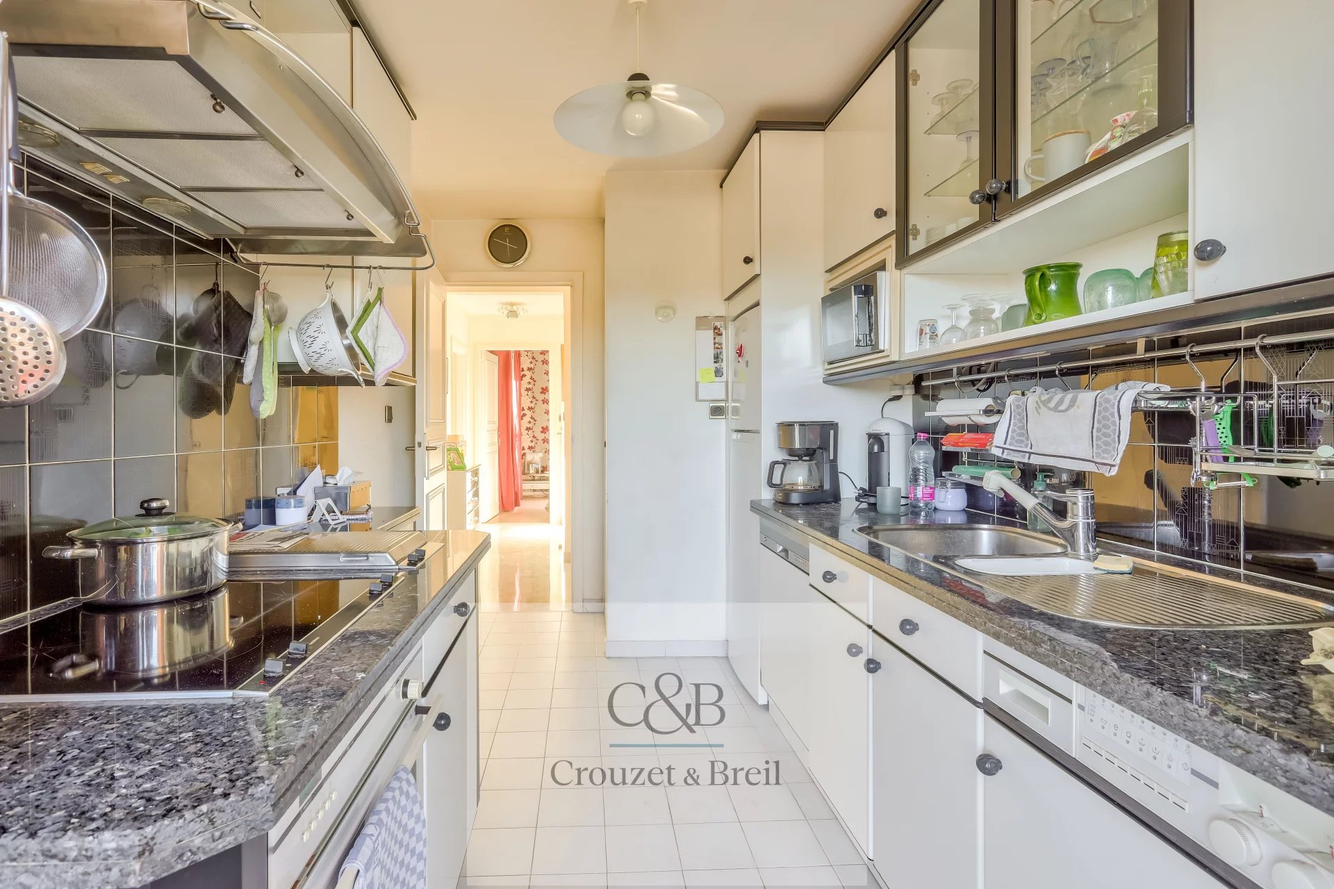 Dans un immeuble de très bon standing sécurisé et avec une piscine en parfait état d'entretien de 1990, grand 4 pièces de 91m² donnant sur une terrasse de 32m². Il se compose de la façon suivante : une entrée avec placard, un séjour, une cuisine indépendante aménagée et équipée, 3 chambres dont une avec salle de bain attenante et placard, une salle de douche et un WC indépendant avec lave main. Un garage complète cet appartement. Charges: 324€ avec l'eau froide. Taxe foncière: 2639€. Excellent DPE : B&A. Nombre de lots de copropriété : 23. Proche toutes commodités. Collèges, écoles et commerces. Exclusivité C&B.