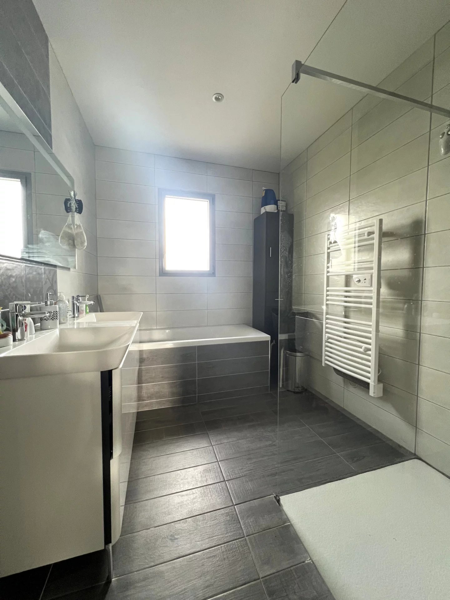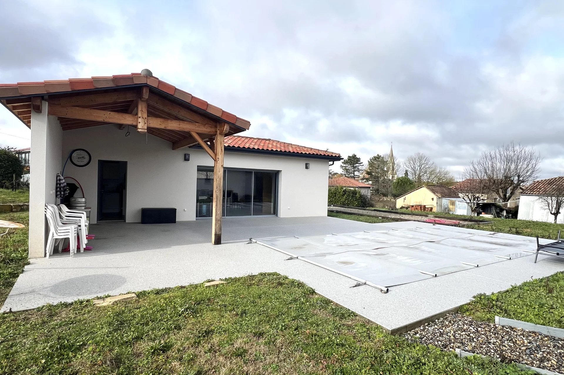 C'est un bien rare que nous vous proposons au centre de Saint Clar, village tous commerces, avec écoles et maison médicale. Cette villa contemporaine, construite en 2017 sur un terrain de 2415 m², se situe dans un environnement recherché. Elle dispose d'une surface habitable de 115 m². La pièce de vie de 50 m² avec sa cuisine toute équipée est très lumineuse grâce à ses baies vitrées qui permettent l'accès aux terrasses, dont une est couverte. Un cellier de 6 m² où se trouvent le chauffe-eau thermodynamique et le bloc de commande des panneaux solaires et des toilettes complètent cet espace de vie. La partie nuit comprend un couloir distribuant 2 chambres (10,50 m² et 11,50 m²), une suite parentale de 20 m² avec dressing et salle d'eau, une salle de bains et des toilettes indépendantes. Les extérieurs n'ont pas été oubliés avec un pool house de 40 m² qui se compose d'un séjour-cuisine de 33 m² avec une climatisation réversible, d'un cellier, d'une salle d'eau avec toilettes et d'une terrasse couverte. Enfin, la terrasse se prolonge pour accéder à la piscine 8x4 m. Pour finir, la voiture pourra être mise à l'abri dans le garage. Les prestations proposées sont de qualité et la maison est en parfait état. A VOIR.