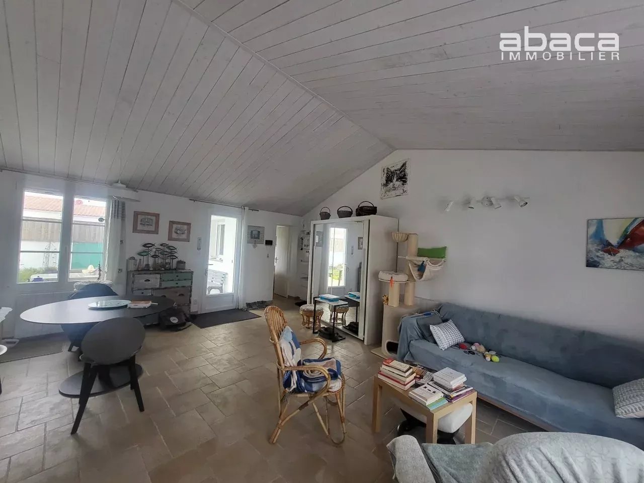 Située dans un environnement calme et recherché du Bois-Plage-en-Ré, jolie maison d'environ 85 m² composée d'une belle pièce de vie spacieuse et lumineuse, d'une cuisine fonctionnelle, de deux chambres, d'une salle de bain et d'un WC indépendant. Une annexe indépendante (une chambre avec salle d'eau+wc) Double jardin exposé sud-ouest, Un garage