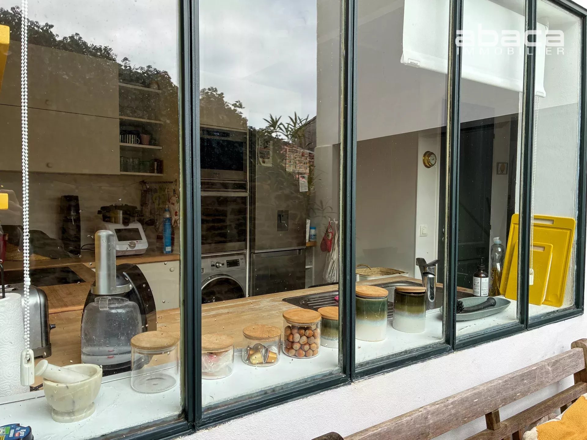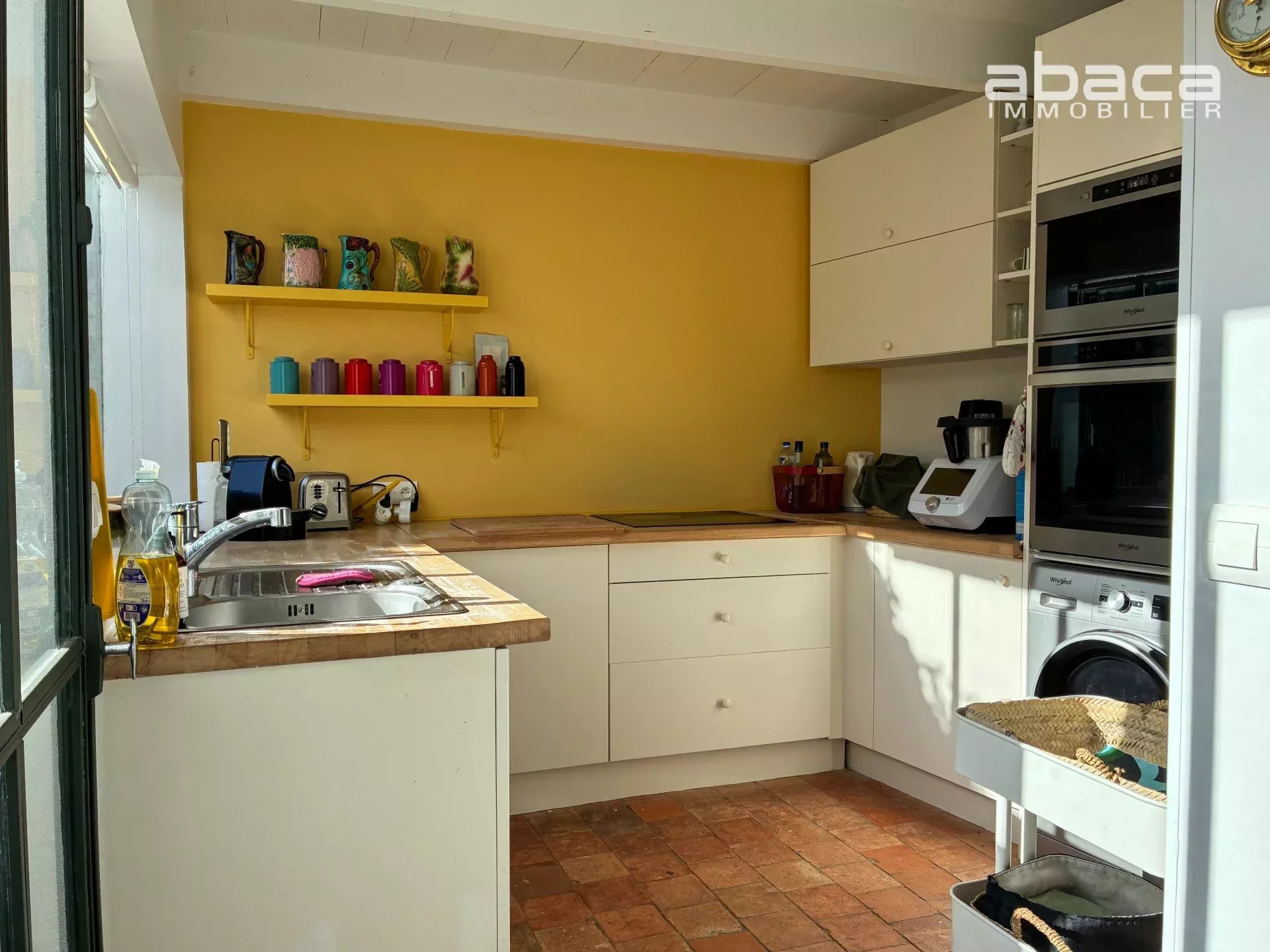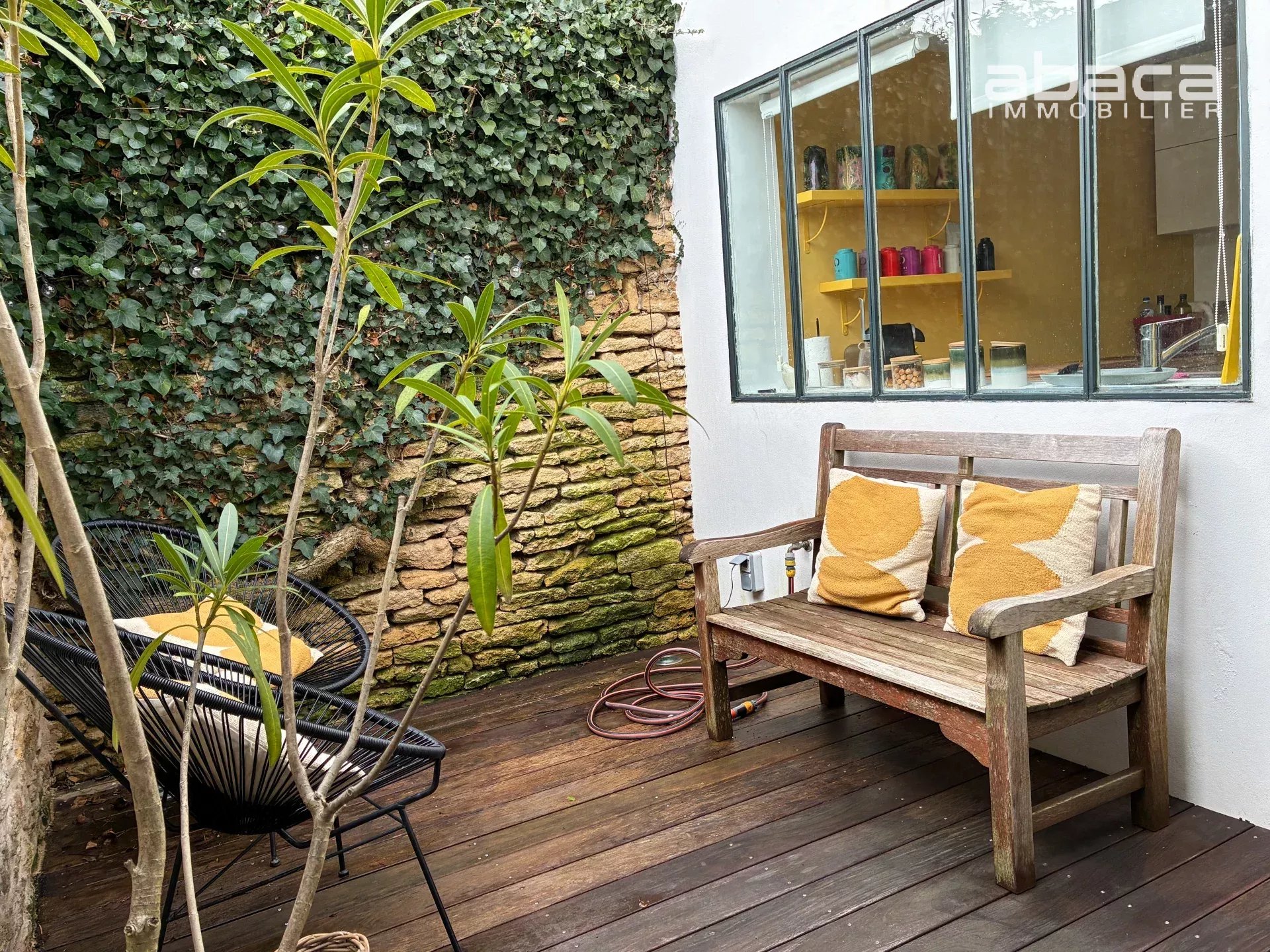 Plein cœur de Village, Superbe Maison de bourg avec sa cour privative comprenant au rez de chaussée, pièce de vie avec cuisine aménagée équipée, exposée plein sud, toilettes et local vélos débarras. A l'étage, 3 chambres, 2 salles de douches, toilettes. Le Charme Portingalais rénové, Tomette, Bois, Poutre, Pierre, au bout d'une charmante ruelle.