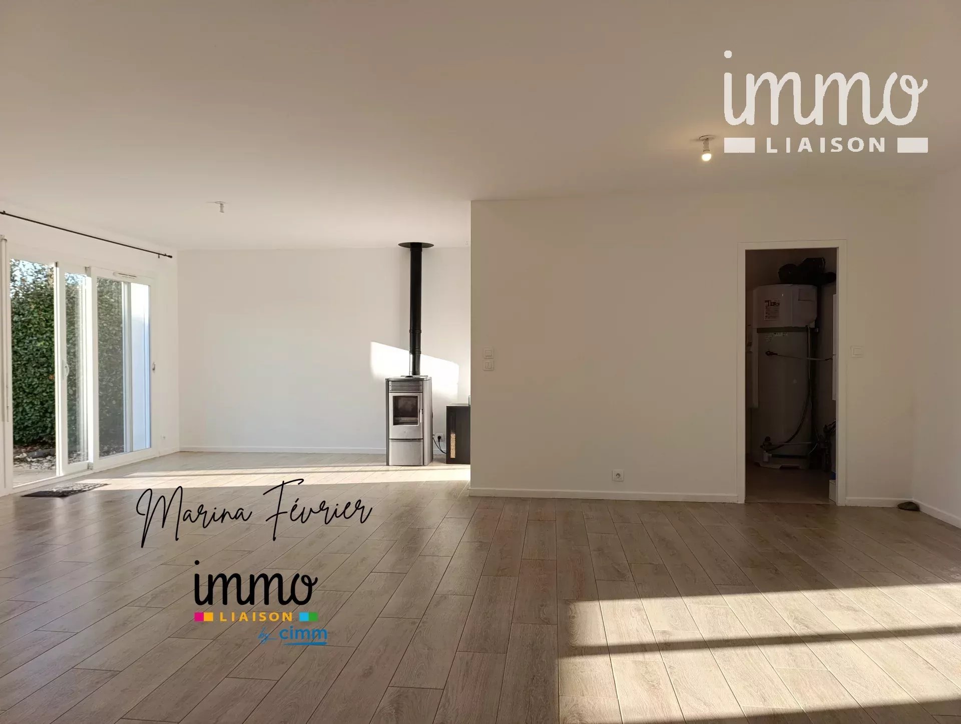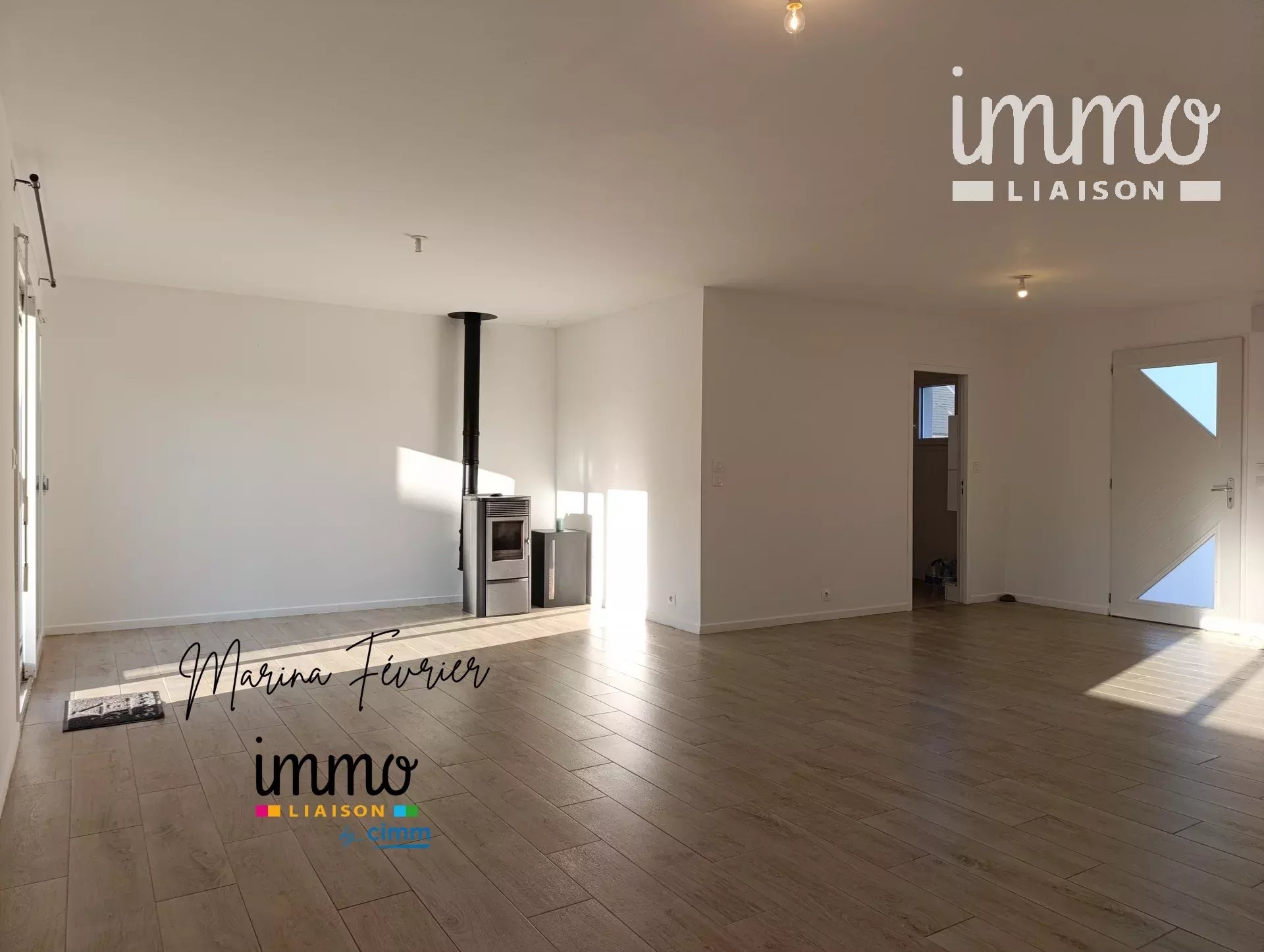 - un salon-séjour convivial, chauffé par un poêle à granulés assurant le chauffage de l’ensemble de la maison.