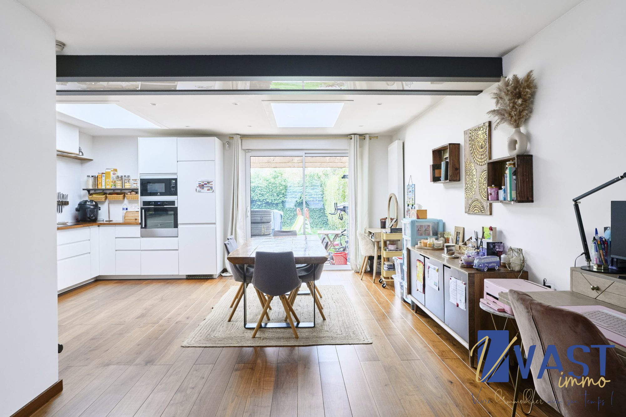 Au rez-de-chaussée, vous serez séduit par le spacieux séjour de 33 m² baigné de lumière, idéal pour des moments conviviaux en famille ou entre amis. La cuisine américaine équipée, moderne et fonctionnelle, vous permettra de préparer vos repas dans un espace ouvert et lumineux.