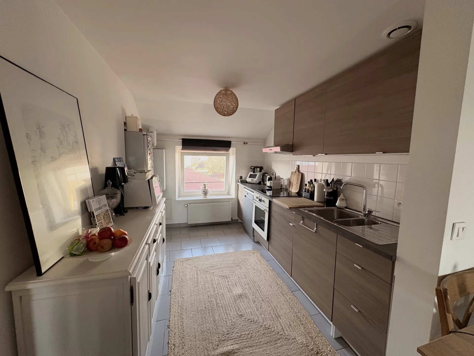 Un vaste espace de vie lumineux, composé d’un salon-séjour ouvert sur une cuisine équipée avec coin repas, parfait pour recevoir et partager des moments conviviaux
