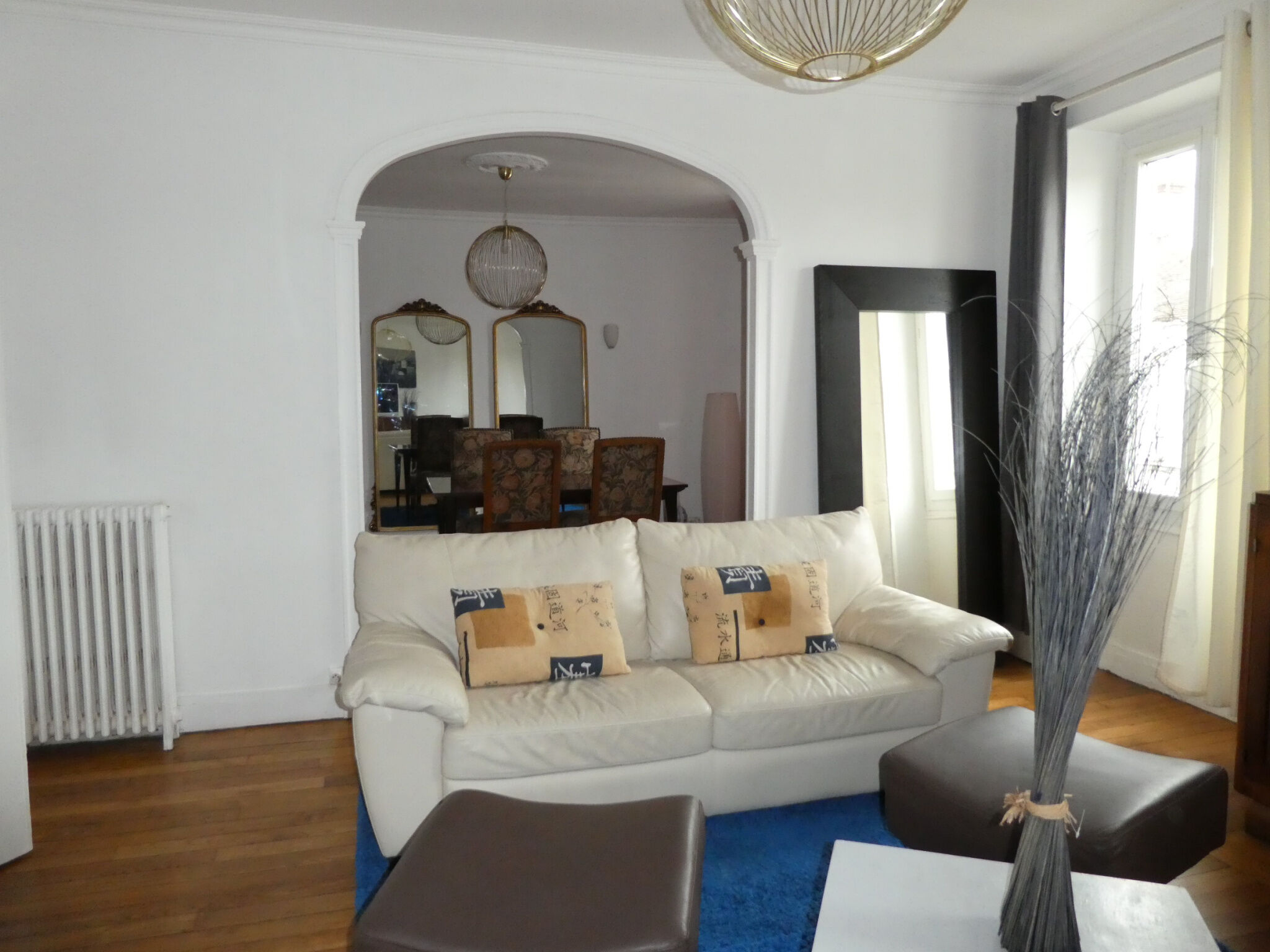En centre ville de Fontainebleau, à proximité immédiate des commerces et du secteur piétonnier. Au 3ème étage de ce bel immeuble ancien, appartement spacieux et traversant, entièrement meublé et équipé, comprenant : Entrée, cuisine séparée équipée, double réception de 38 m² avec de jolis détails décoratifs, chambre principale de 18 m², autre chambre de 11 m², salle d'eau avec douche, toilettes séparées. Appartement alliant ameublement de style ancien et aménagement modernes et fonctionnels.