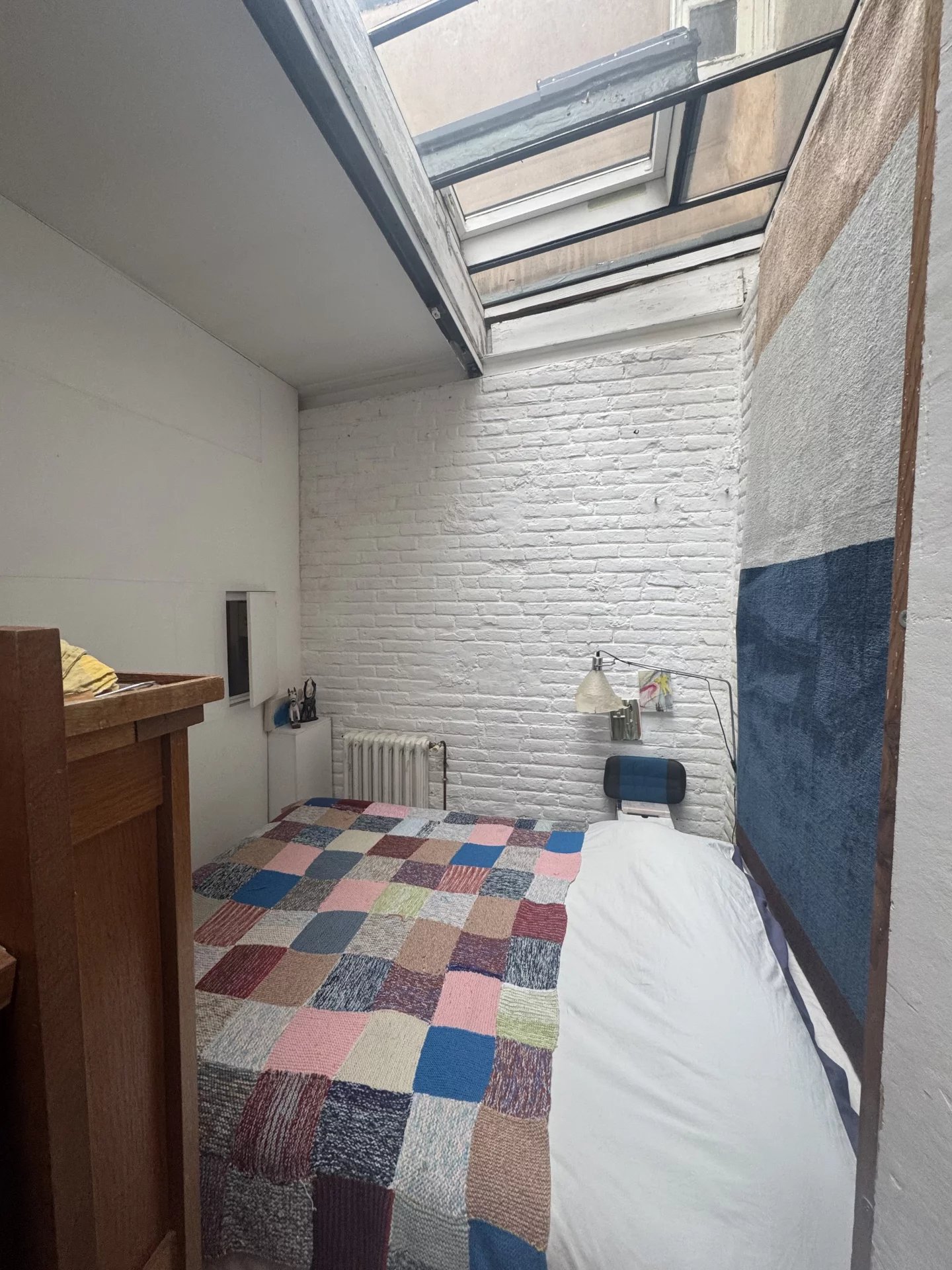 Au cœur de Jourdain, un appartement de deux pièces de 37m² à rénover, de type atelier indépendant, composé d'un salon avec cuisine ouverte et une chambre à redéfinir. Une salle de bain avec WC. Calme, clair. Gardiennage. Belle hauteur sous plafond. Bon DPE. Lumiere frontale et zénithale.