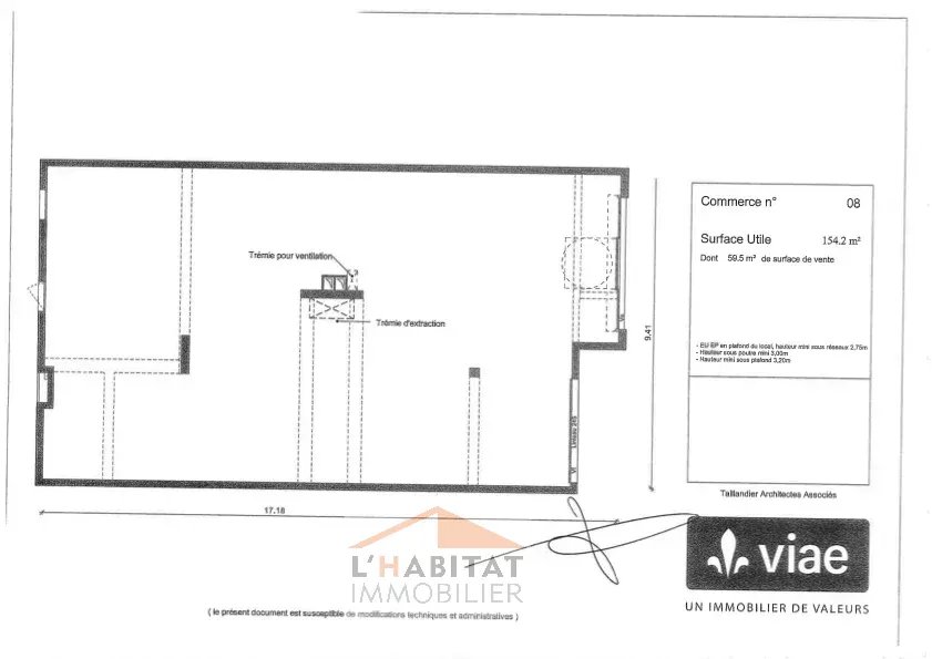 Local commercial de 154 m² au rez-de-chaussée d’un bâtiment récent, idéalement situé en HYPER CENTRE de Plaisance-du-Touch. Tout commerce, 2 grandes vitrines, parkings publics, cour à l’arrière pour charger/décharger. Emplacement stratégique, secteur dynamique, fort potentiel de développement, à proximité immédiate de tous les commerces et des flux piétons. Possibilité d’aménagement d’un restaurant (chambre froide, espace plonge, cumulus eau chaude, gaine d’extraction, cellier) avec terrasse en extérieur. Bien présenté par L’Habitat Immobilier à Plaisance du Touch. Contact: ANNE MAJOU 06.82.17.66.20, Négociatrice en immobilier, immatriculée au RSAC de Toulouse 942856139