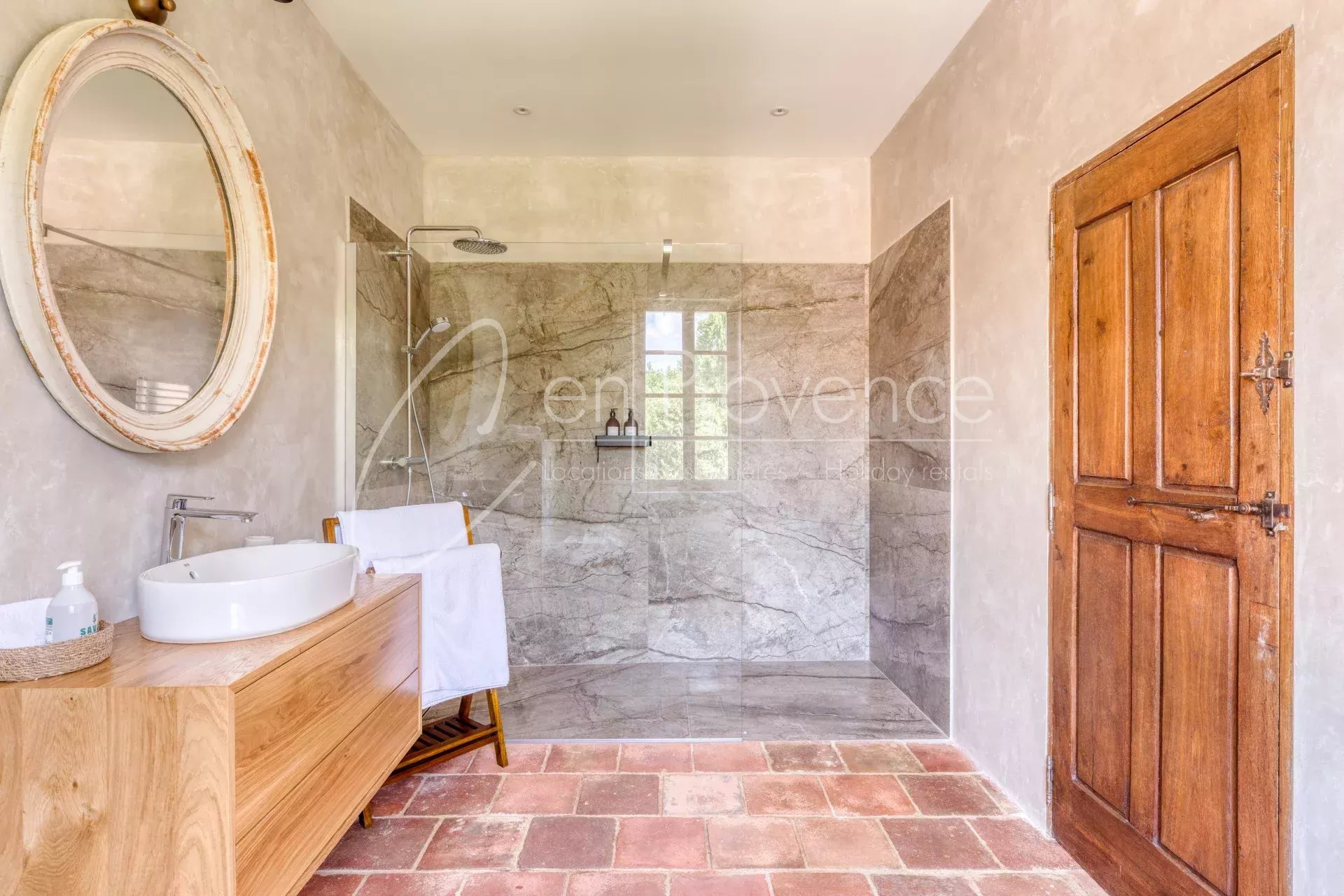La propriété peut accueillir jusqu’à 15 personnes et dispose de sept chambres en suite, pensées pour garantir confort, intimité et sérénité. Les extérieurs, remarquables par leur diversité, proposent de nombreux espaces de détente, une grande piscine chauffée, ainsi que des équipements rares permettant de profiter pleinement du domaine sans jamais le quitter.