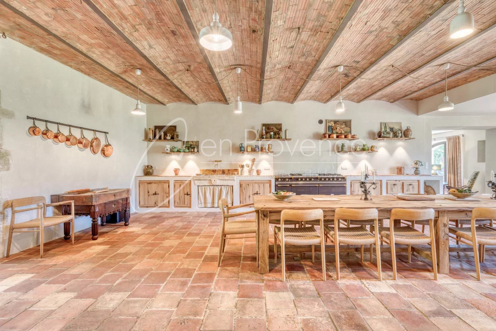 Accessible par une élégante allée bordée de platanes centenaires, ce superbe mas incarne l’art de vivre provençal dans sa forme la plus authentique et raffinée. Les vastes espaces de vie baignés de lumière, ouverts sur la nature, offrent un cadre idéal pour des séjours privés en famille ou entre amis.