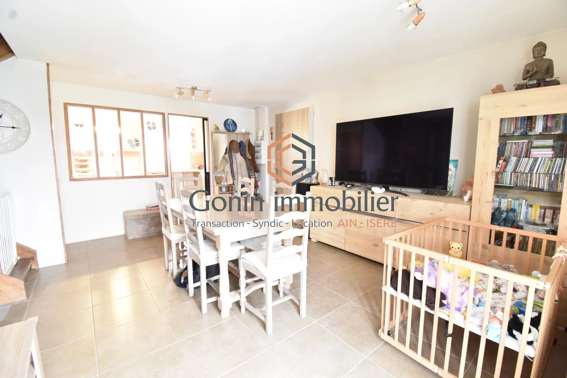 Votre agence vous propose cette maison de 4 pièces située dans un lotissement, en retrait de la route, au calme, en parfait état, comprenant : - un grand salon / salle à manger, - une cuisine équipée, - 3 chambres, dont 2 avec placards encastrés, - une salle de bains, - 1 WC à chaque étage, - un grand garage, -Jardin entièrement clos et arboré. Les +: bonne isolation (D), état impeccable.