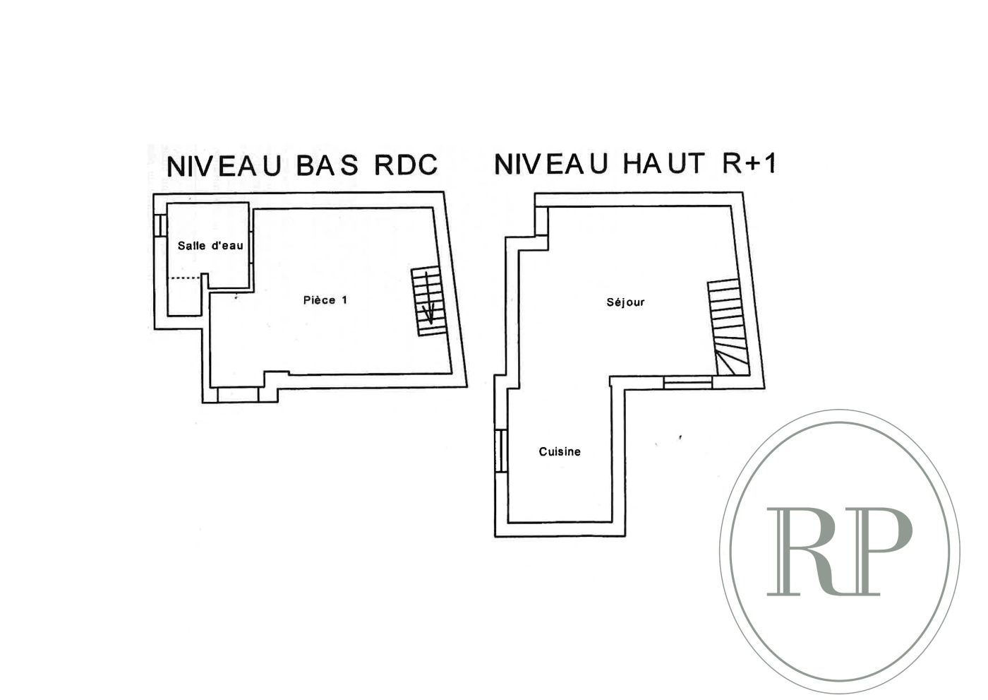 Un escalier intérieur mène au rez-de-chaussée, où se trouvent une chambre, une salle d'eau ainsi que des WC.