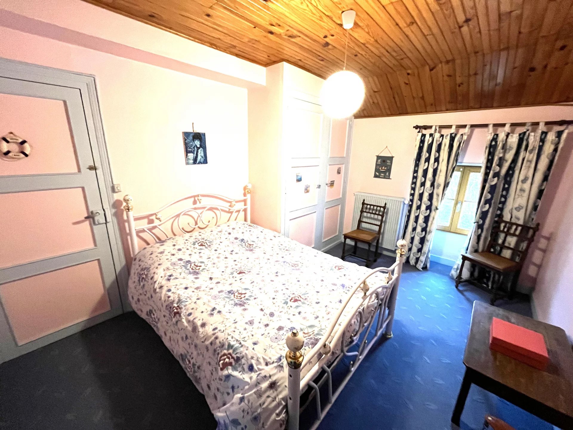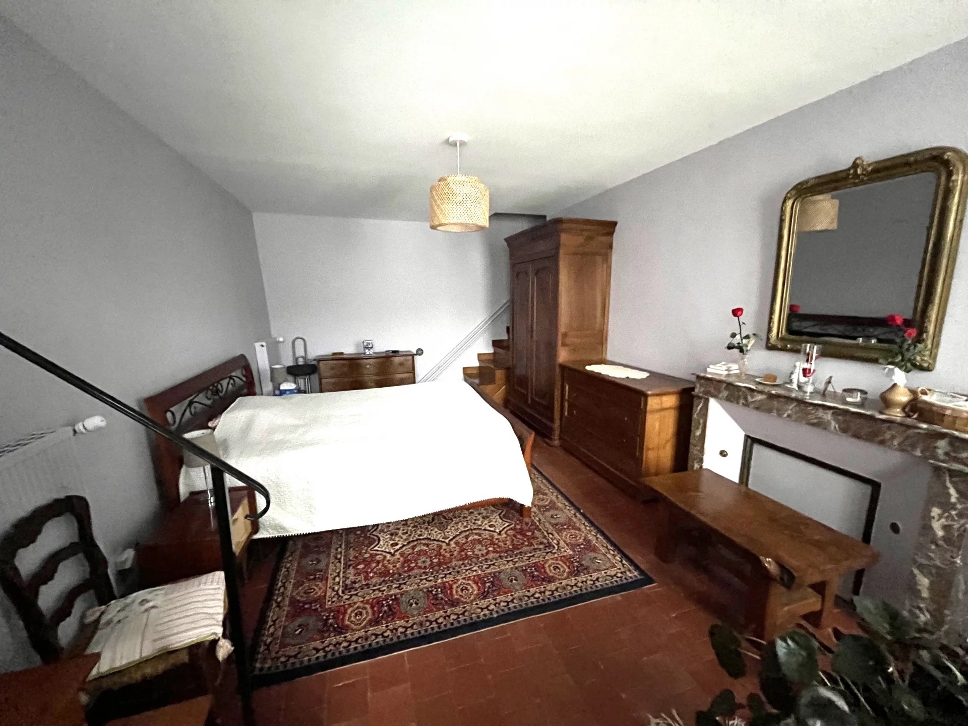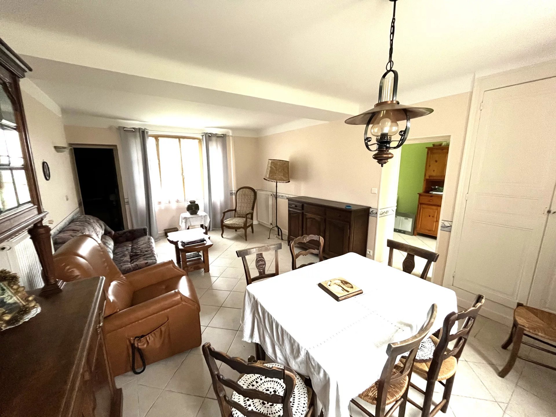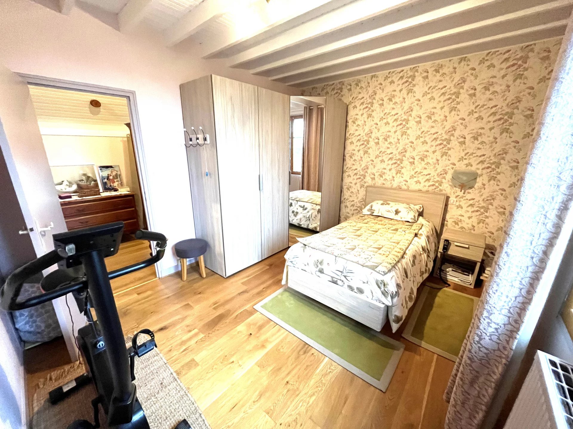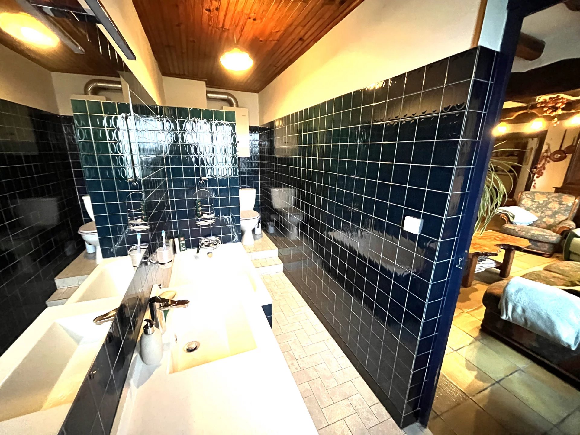 Une maison principale de 124 m² (4 pièces) comprenant : entrée, salon-séjour, cuisine équipée, 2 chambres, bureau, salle de bains, salle d’eau.