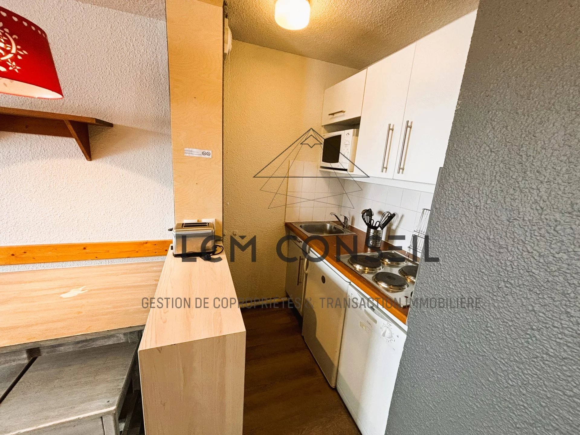 Situé dans la résidence recherchée Le Borsat IV, cet appartement de 21,53 m², au 2ᵉ étage, bénéficie d’un emplacement ski aux pieds au cœur de la station.