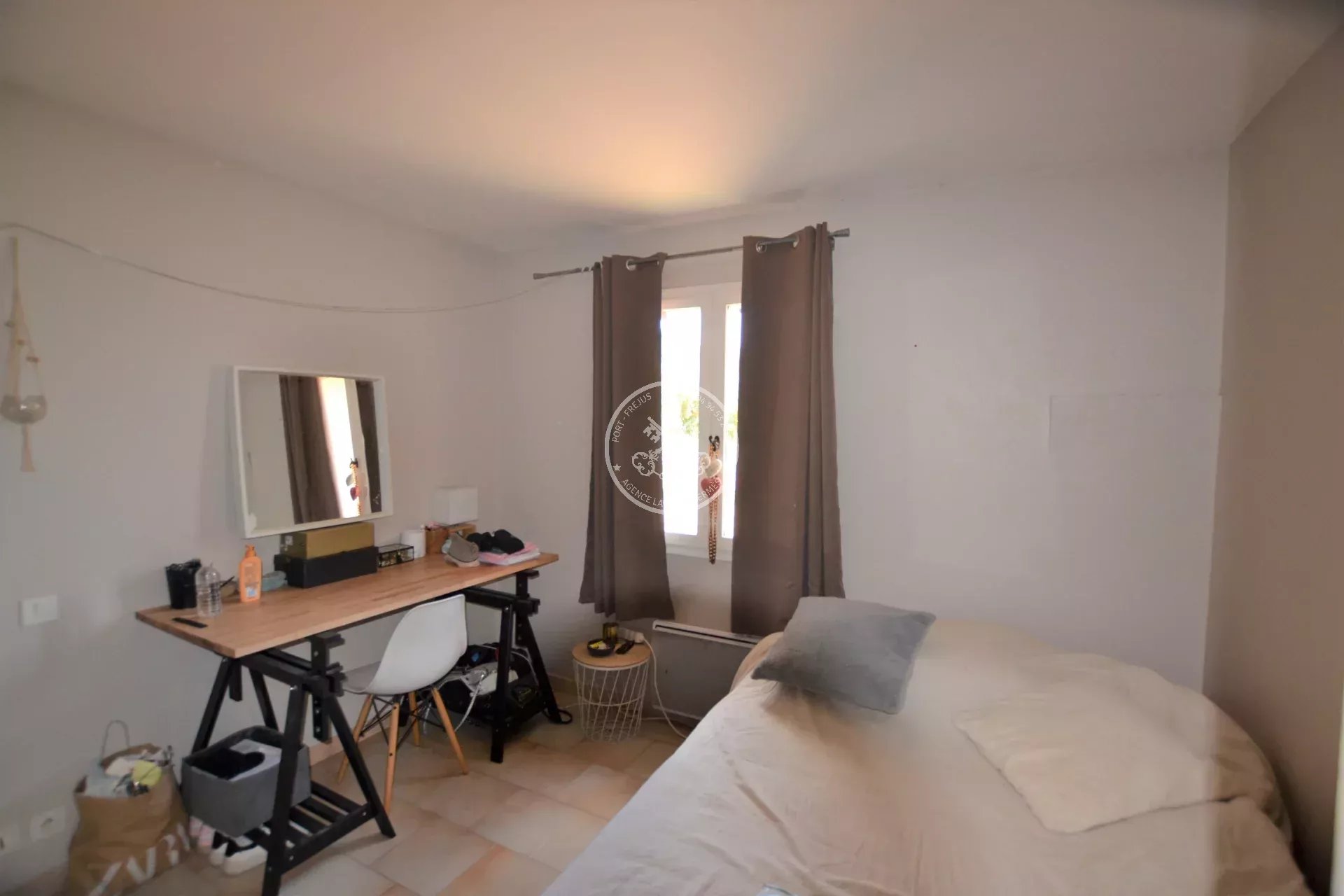 La villa se compose d'une entrée, d'un salon/séjour, une salle de douches, wc séparé, une cuisine équipée et de deux chambres.