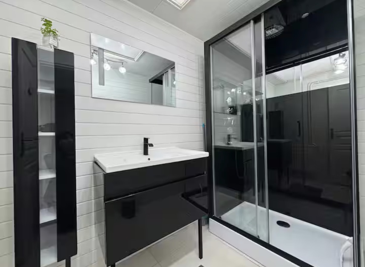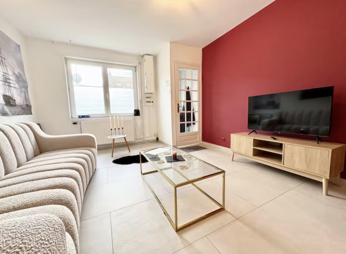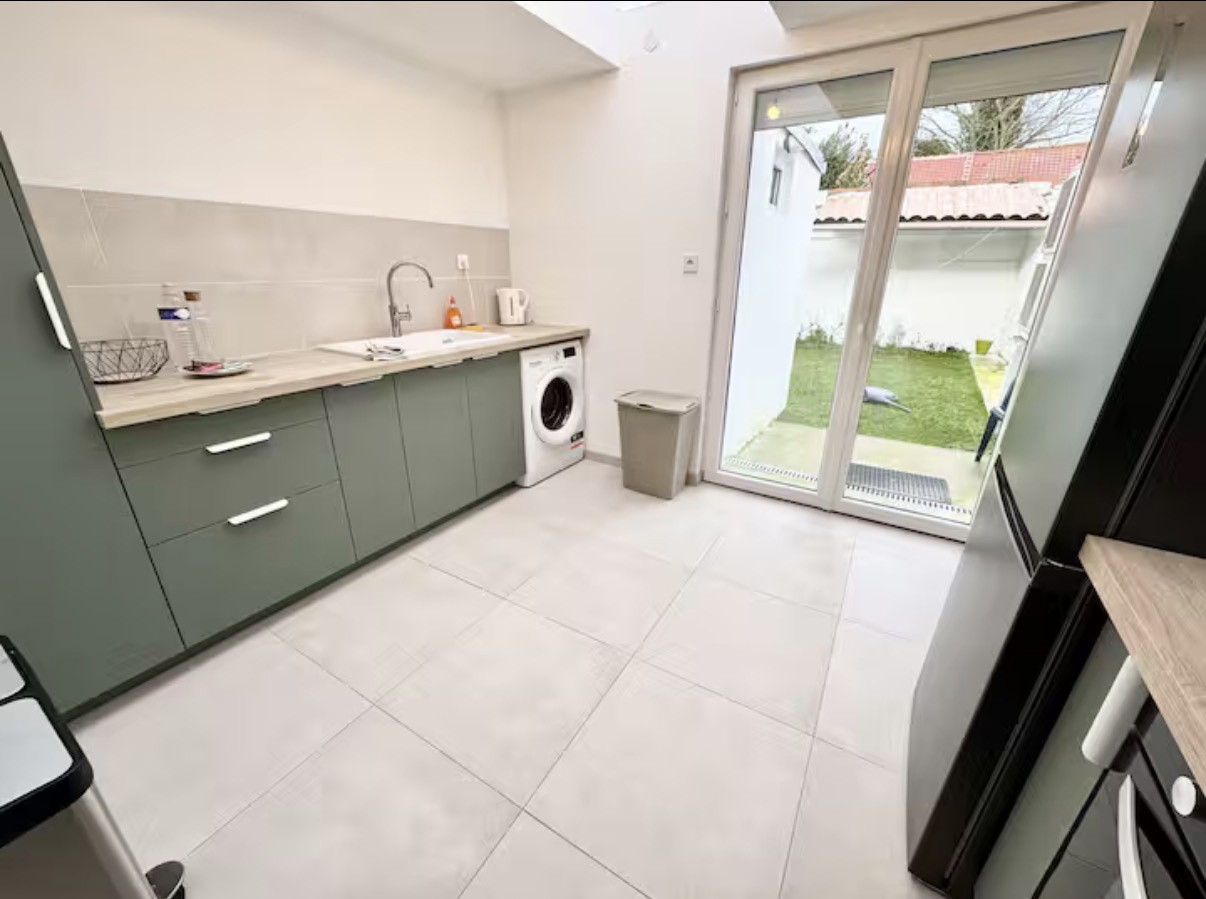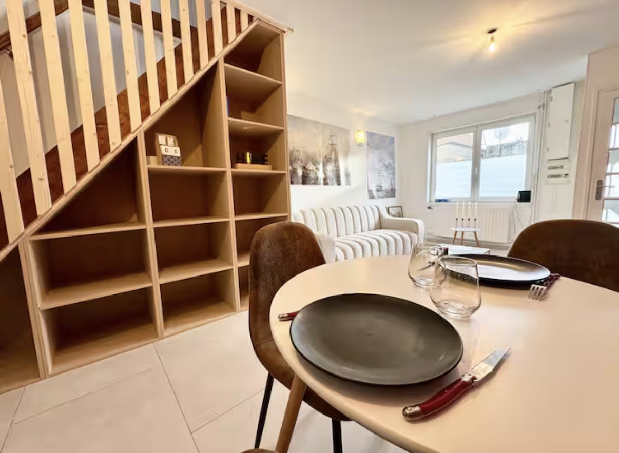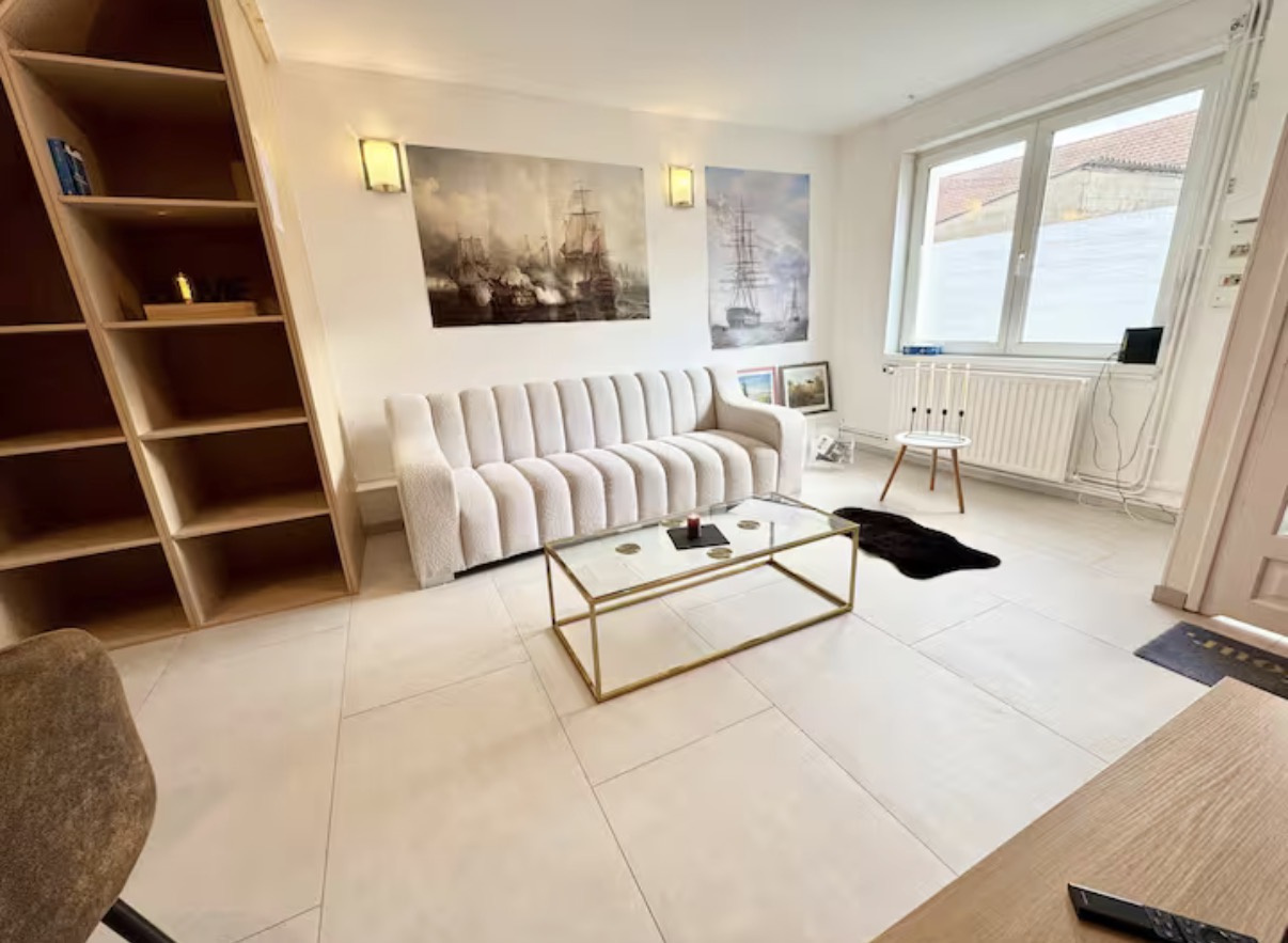 Maison de ville rénovée comprenant sas d'entrée, vaste salon/séjour donnant sur une cuisine entièrement aménagée et équipée, belle salle de bains avec douche,WC.