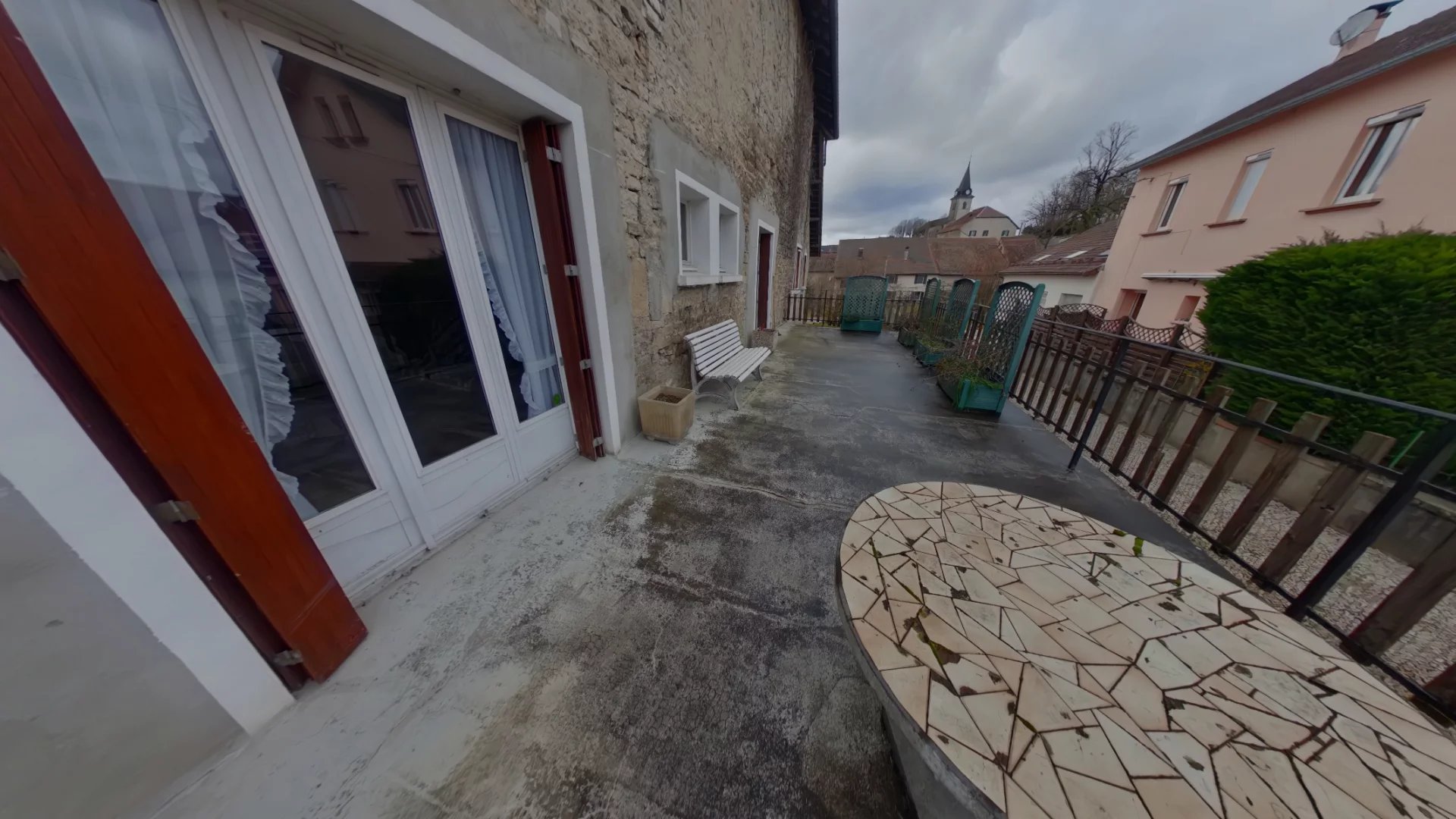 A l’étage: Une cuisine, un salon /séjour avec un accès sur une grande terrasse, trois chambres, une salle d’eau et un sanitaire.