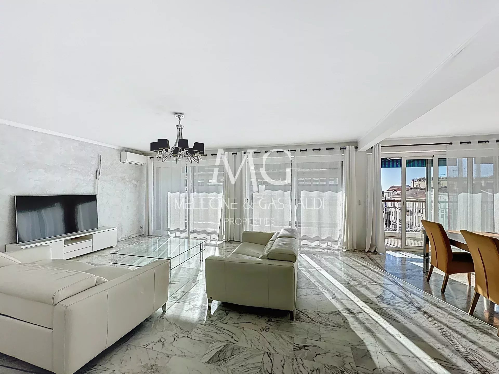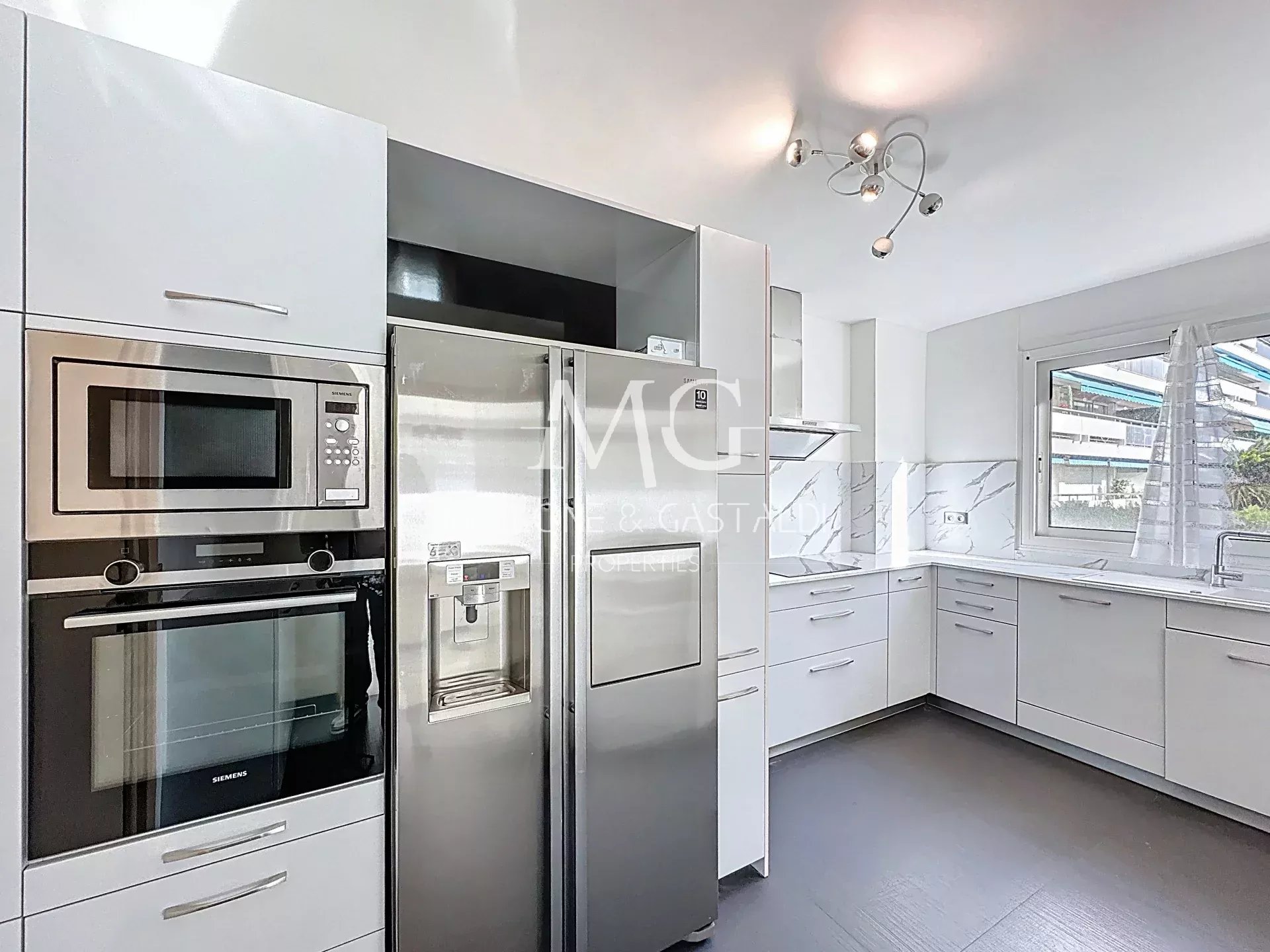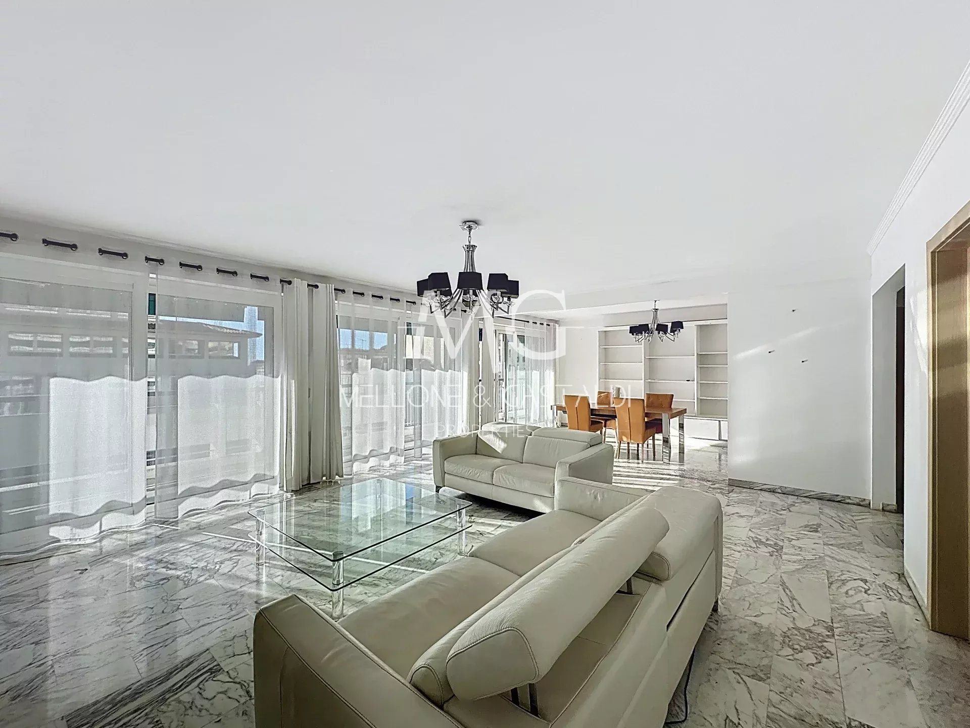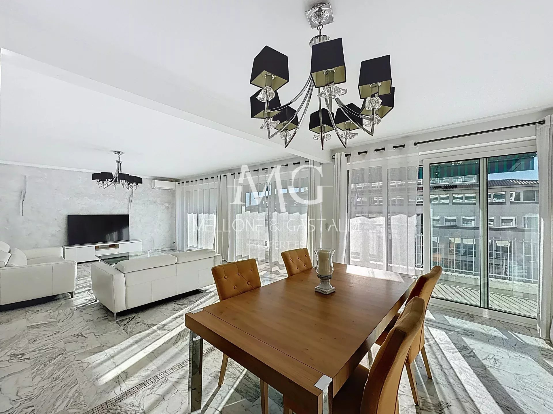 Idéalement situé au cœur du très recherché quartier du Marché Forville, à seulement 5 minutes à pied du Palais des Festivals et des plages, ce grand 4 pièces d'angle climatisé de 150 m², exposé plein sud, à rafraichir, offre des volumes généreux et emplacement ultra-privilégié. Baigné de lumière naturelle grâce à de larges ouvertures avec quadruple vitrage, l’appartement s’articule autour d’un magnifique séjour d’environ 50 m², véritable pièce maîtresse avec sa longue terrasse filante de 25 m², une cuisine séparée équipée et aménagée donnant sur les jardins L’espace nuit, parfaitement agencé, propose : - trois belles chambres - une salle de bains complète avec baignoire, douche et WC - une salle de douche - un WC indépendant Situé au sein d’une résidence sécurisée de très grand standing avec gardien et plusieurs ascenseurs, ce bien répond parfaitement aux attentes d’une clientèle exigeante recherchant prestige à proximité immédiate des lieux emblématiques de Cannes. Idéal en investissement locatif saisonnier ou pour un cabinet/bureau professionnel ou en résidence principale. Possibilité de parking en sous-sol en supplément.