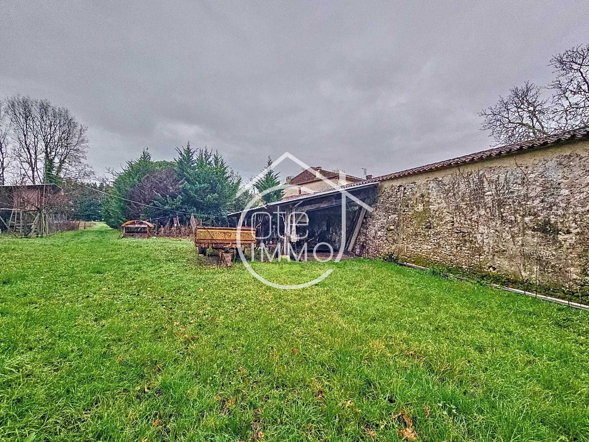 Côté Immo Pays Foyen, vous propose de découvrir cet ensemble de caractère, à 5 mns en voiture de l'agglomération foyenne, campé sur son parc et prairies d'une dizaine d'hectares avec un petit îlot créé par un ruisseau traversant, endroit idéal pour nos amis les équidés. La maison de style girondine, 178 m² environ, mitoyenne d'un côté, a conservé son charme d'origine (hauteur des plafonds à solivage apparent, carrelage de gironde, belles ouvertures). s. Elle offre une vaste pièce de vie (séjour-salle à manger) traversante de 44 m², agrémentée d'une cheminée avec poêle à bois, qui donne plein sud à l'arrière du parc. Une spacieuse cuisine avec coin repas, en direct sur le jardin, côté façade principale, complète la partie jour. Une chambre parentale avec sa salle de bains complète-toilettes en suite (25 m²) assure une habitabilité en plain-pied dans le corps principal. Depuis les 2 pièces de jour, un généreux dégagement, avec placards et cage d'ascenseur, relie une aile aménagée en son temps qui comprend une 2ème chambre (18 m²), avec une salle d'eau-toilettes et son entrée indépendante. L'étage accueille un beau palier (cage d'ascenseur) avec 2 dégagements qui distribuent les 2 grandes chambres, (respectivement 16 et 20 m²), et une salle d'eau avec toilettes ; un grenier (50 m² environ) sur le même niveau, permet d'envisager la création de chambres ou suites en supplément. Les dépendances séparées s'articulent sur l'arrière du parc, aux allures de cour intérieure en forme de U : - la première aile consiste en un ancien chai en pierre (87 m²), flanqué d'un auvent à matériels (40 m²), idéal pour abriter plusieurs véhicules ; - la deuxième se compose d'une chaufferie-buanderie, d'une ancienne sellerie transformée en serre, et d' une ancienne maison d'habitation en plain-pied (62.51 m²), à restaurer entièrement, permettant la création d'un 2ème logement à vocation de gîte, ou maison d'amis selon les projets. Enfin, une vaste grange (132 m²) avec des accès traversants, et ancien atelier à réhabiliter dans sa totalité finissent de compléter ce bel ensemble. Côté technique : central fuel, simple vitrage, assainissement individuel non conforme.