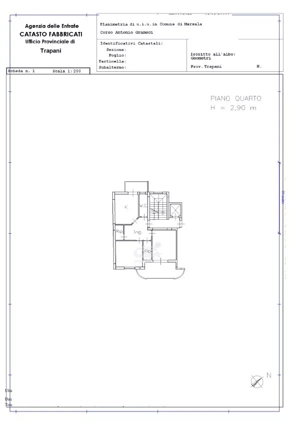 Appartamento in Vendita a Marsala - Zona Centro** Se stai cercando un appartamento moderno e confortevole nel cuore di Marsala, questa è l'opportunità che fa per te! Situato in una palazzina di recente costruzione, questo splendido appartamento di circa 85 mq si trova al quarto piano e offre un ampio terrazzo dove potrai goderti momenti di relax all'aria aperta. L'appartamento è composto da tre vani, doppi servizi, balconi veranda e possibilità di un posto auto coperto e una cantinola. Le condizioni generali sono ottime, con pavimentazione in parquet e infissi esterni dotati di persiane in alluminio e vetri camera. La sicurezza è garantita da un portoncino d'ingresso blindato e da un impianto di allarme. Inoltre, l'appartamento è predisposto per un impianto di riscaldamento autonomo e dispone di climatizzatori per garantire il massimo comfort in ogni stagione. Le porte interne in legno aggiungono un tocco di eleganza agli interni. L'immobile è adatto anche per persone con mobilità ridotta, grazie all'accesso adattato e alla presenza di un ascensore. L'orientamento sud-ovest assicura una luminosità naturale durante tutto il giorno. La classe energetica è E con un consumo di energia di 175,00 kWh/m² anno. Il prezzo richiesto è di euro 125.000,00. Non perdere questa occasione unica di vivere in una zona centrale e ben servita, con tutti i comfort moderni a portata di mano. Contattaci subito per maggiori informazioni o per prenotare una visita!