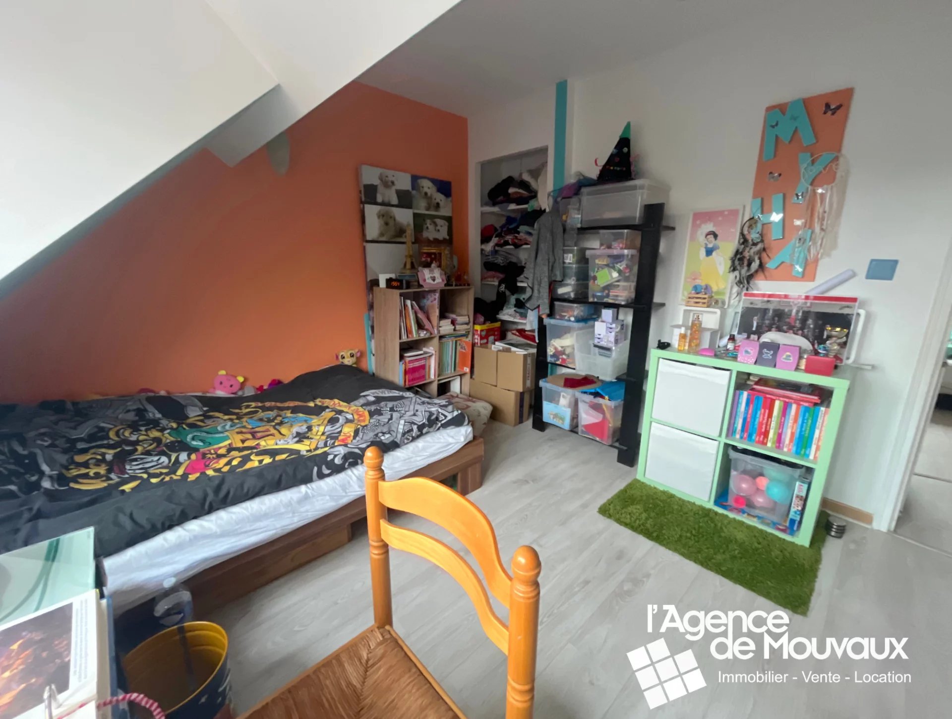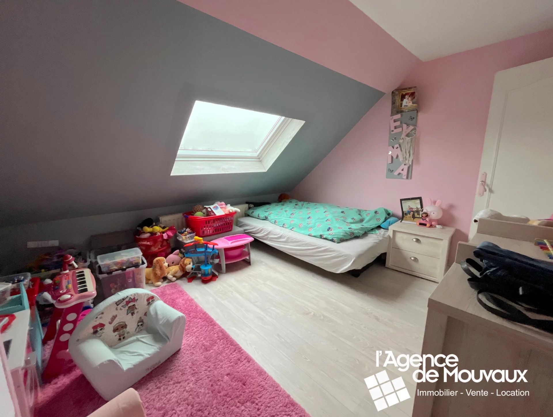 Le palier du premier étage dessert une chambre spacieuse avec rangements sur-mesure, une grande salle de bains avec WC et branchements machines.
