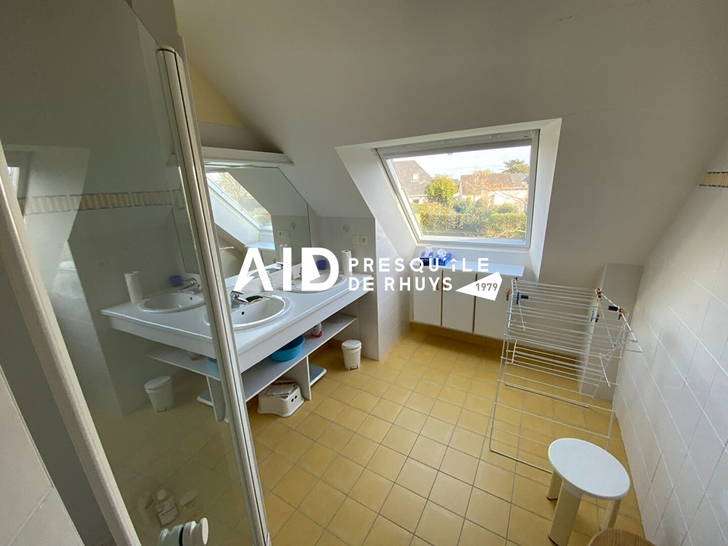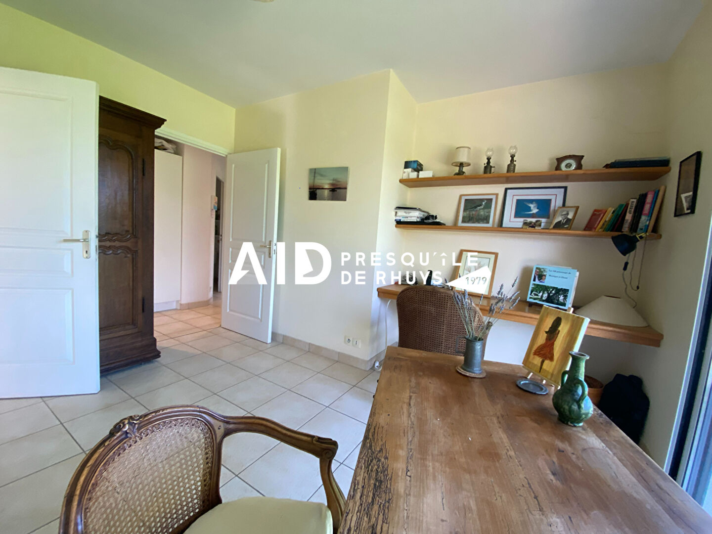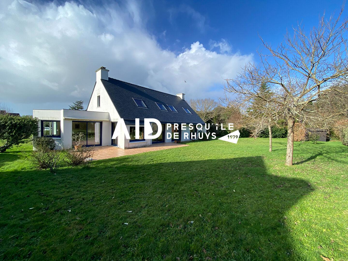 Située au calme absolu, au fond d'une impasse dans un hameau recherché du Golfe du Morbihan, cette spacieuse maison familiale développe plus de 180 m² de surface habitable. Dès l'entrée, un hall accueillant avec placard et cabinet de toilette dessert une vaste pièce de vie lumineuse, ouverte sur une terrasse carrelée exposée Sud / Sud-Ouest, équipée d'un store banne, idéale pour recevoir famille et amis. La cuisine semi-ouverte, fonctionnelle, dispose d'une buanderie donnant accès à un grand garage avec grenier. Le rez-de-chaussée offre également une partie nuit composée de deux chambres, d'une salle de bains avec douche et d'un second cabinet de toilette. A l'étage, un couloir distribue quatre chambres supplémentaires, une salle d'eau ainsi qu'un cabinet de toilette indépendant. Implantée sur un terrain de 2 460 m² entièrement constructible, la propriété bénéficie d'un environnement préservé, à l'abri des regards, permettant de profiter pleinement des soirées ensoleillées dans un cadre paisible et verdoyant. (5.00 % honoraires TTC à la charge de l'acquéreur.)